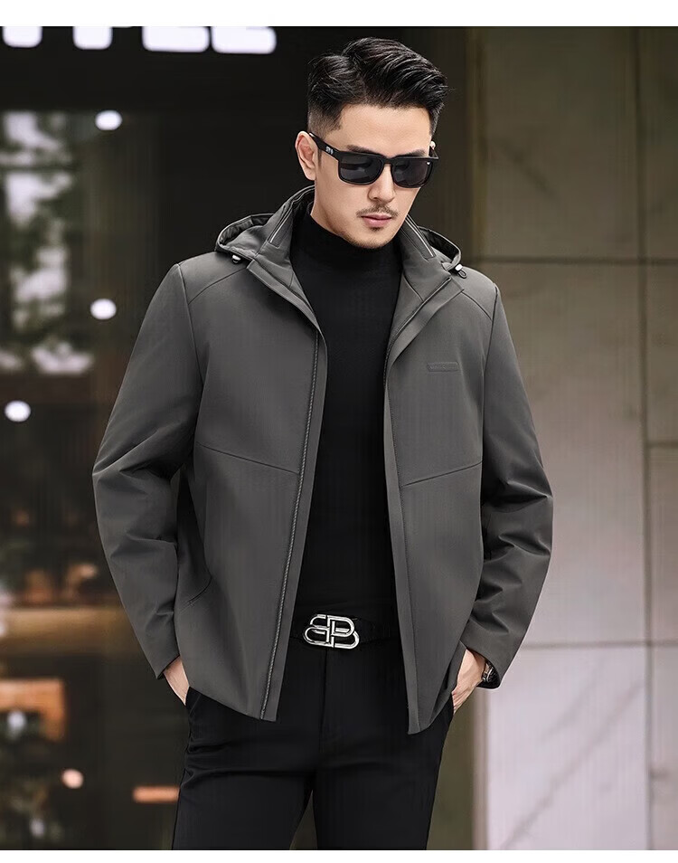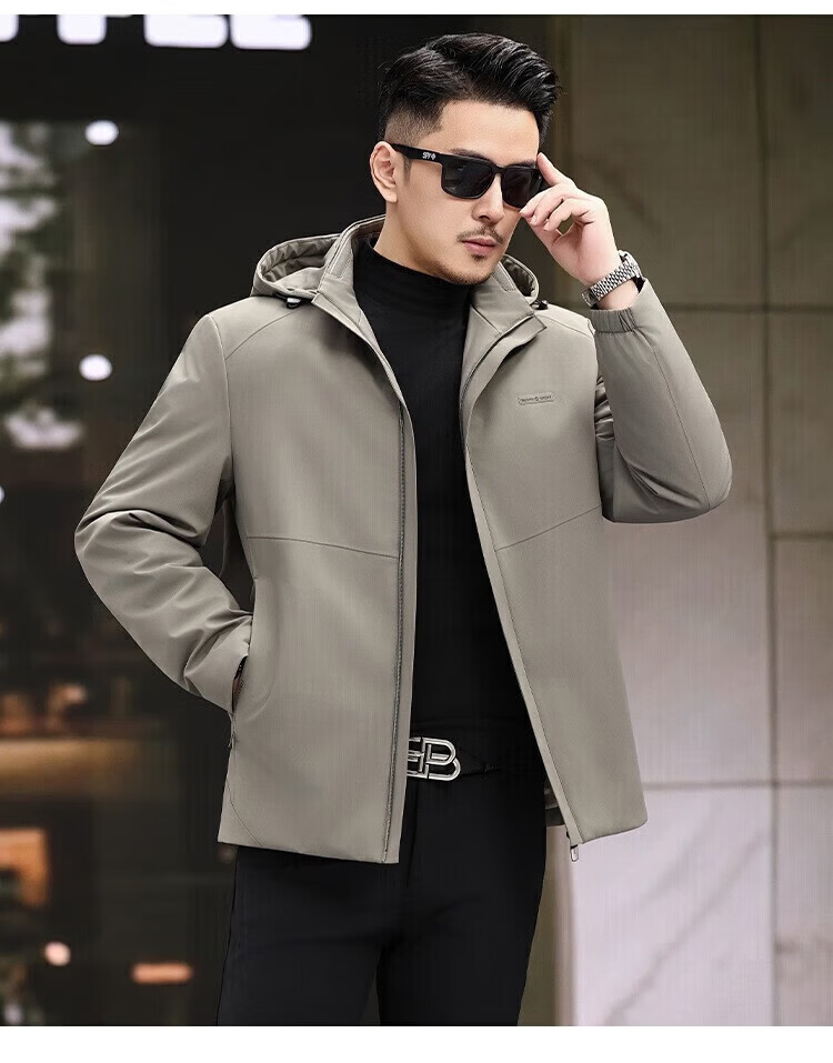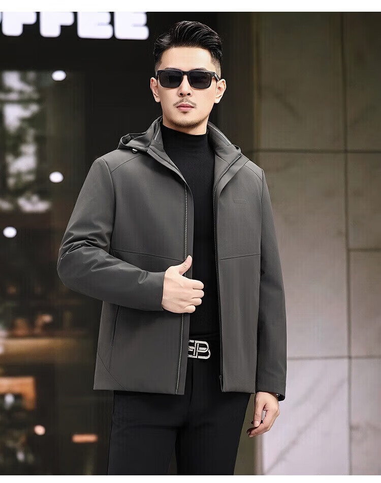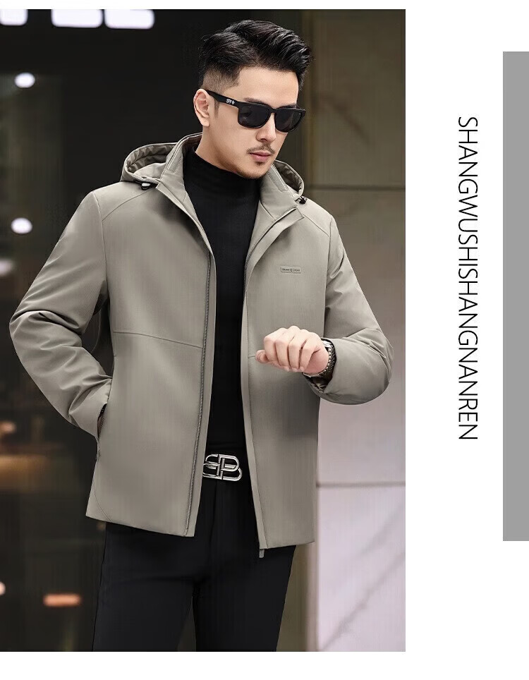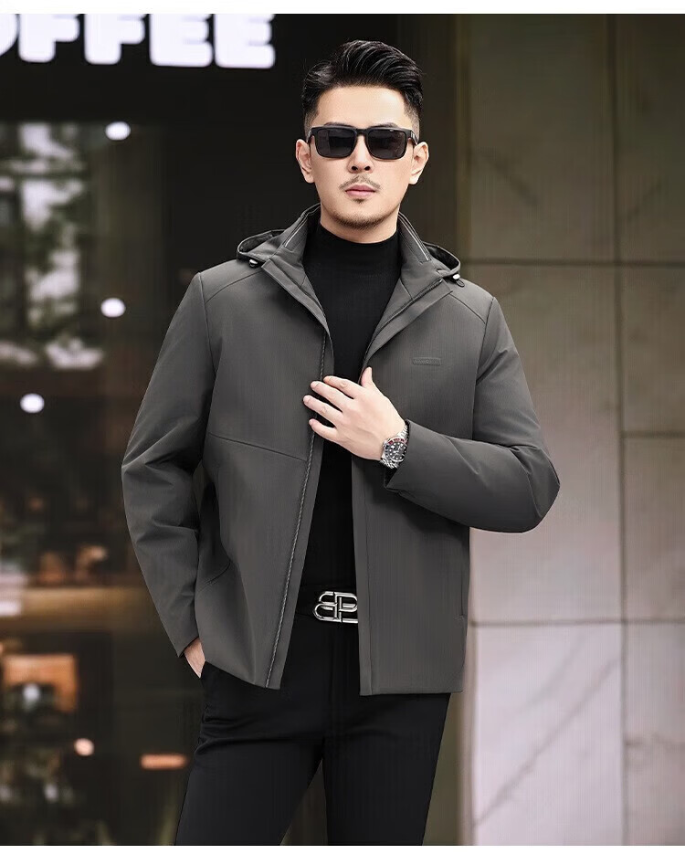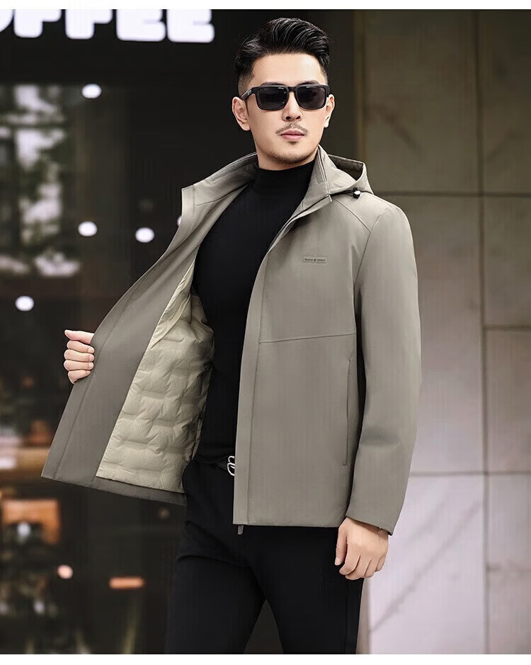 LILANZ зимний пуховик мужской короткий съемный пуховик с капюшоном утолщенный белый утиный пух повседневная теплая зимняя куртка серо-зеленый 8707-85% гусиный пух 14XL (185)