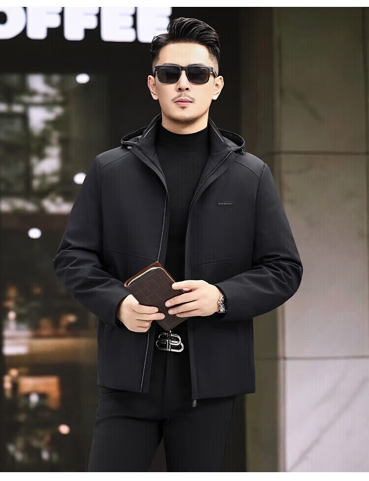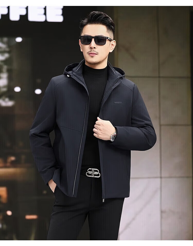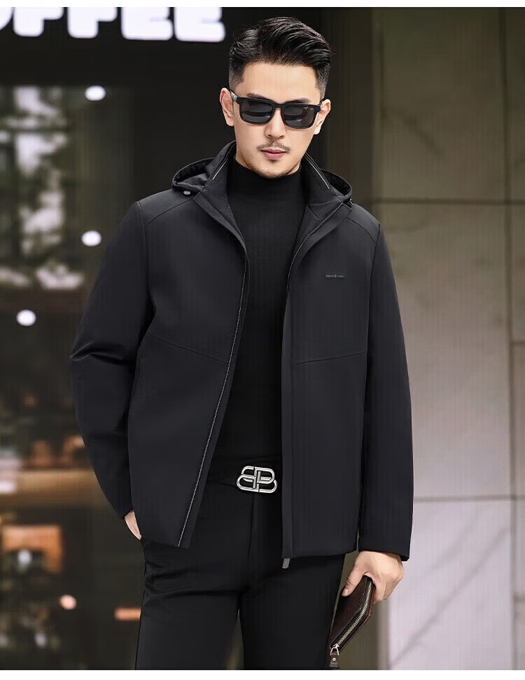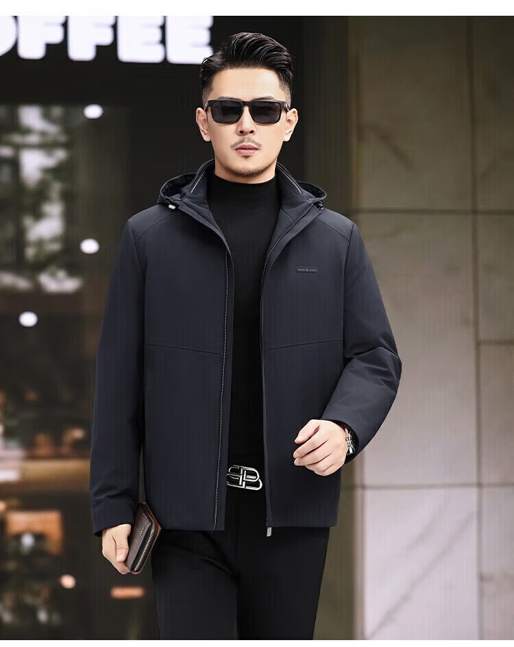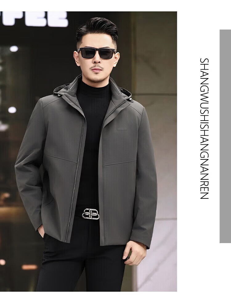LILANZ зимний пуховик мужской короткий съемный пуховик с капюшоном утолщенный белый утиный пух повседневная теплая зимняя куртка серо-зеленый 8707-85% гусиный пух 14XL (185)