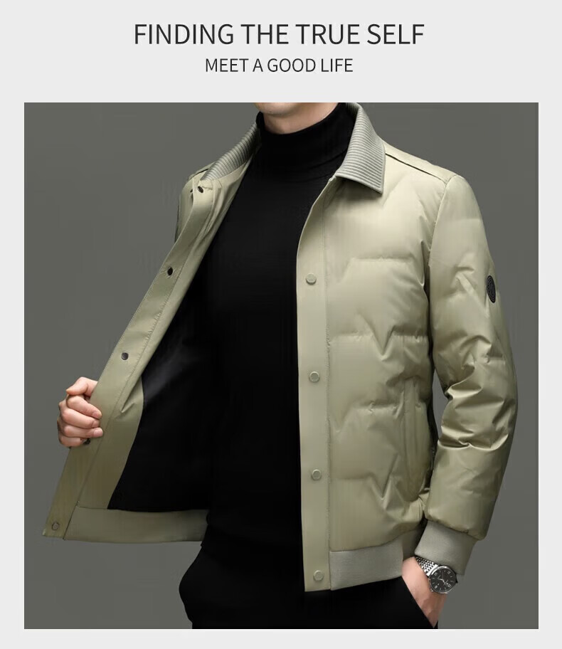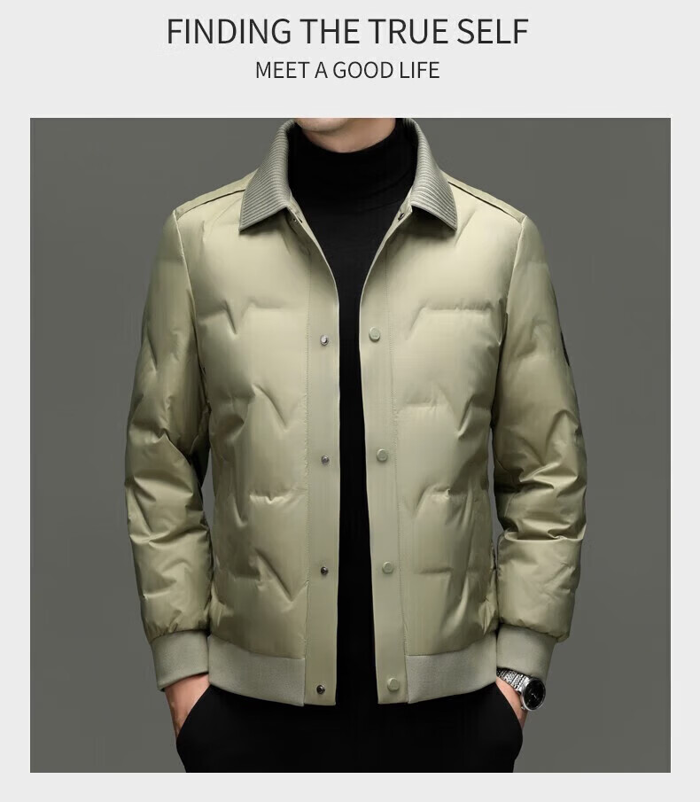 LILANZ мужской легкий пуховик зимний мужской среднего возраста с лацканами повседневный деловой утепленный теплый пуховик цвета хаки yr9870 L (175) размер (рекомендуемый 130-145 Jin Jin соответствует 0,5 кг)