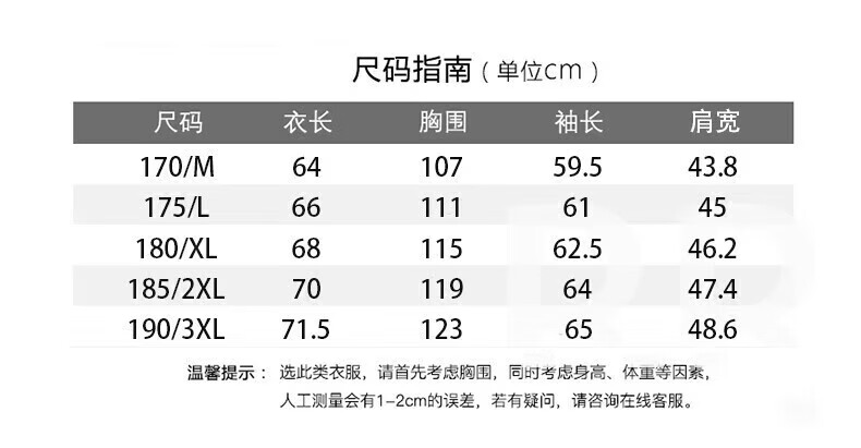 China (cm) 165 / 88-90 170 / 96-98 175 / 108-110 180 / 118-122 185 / 126-130