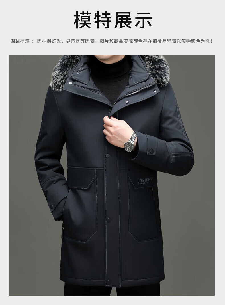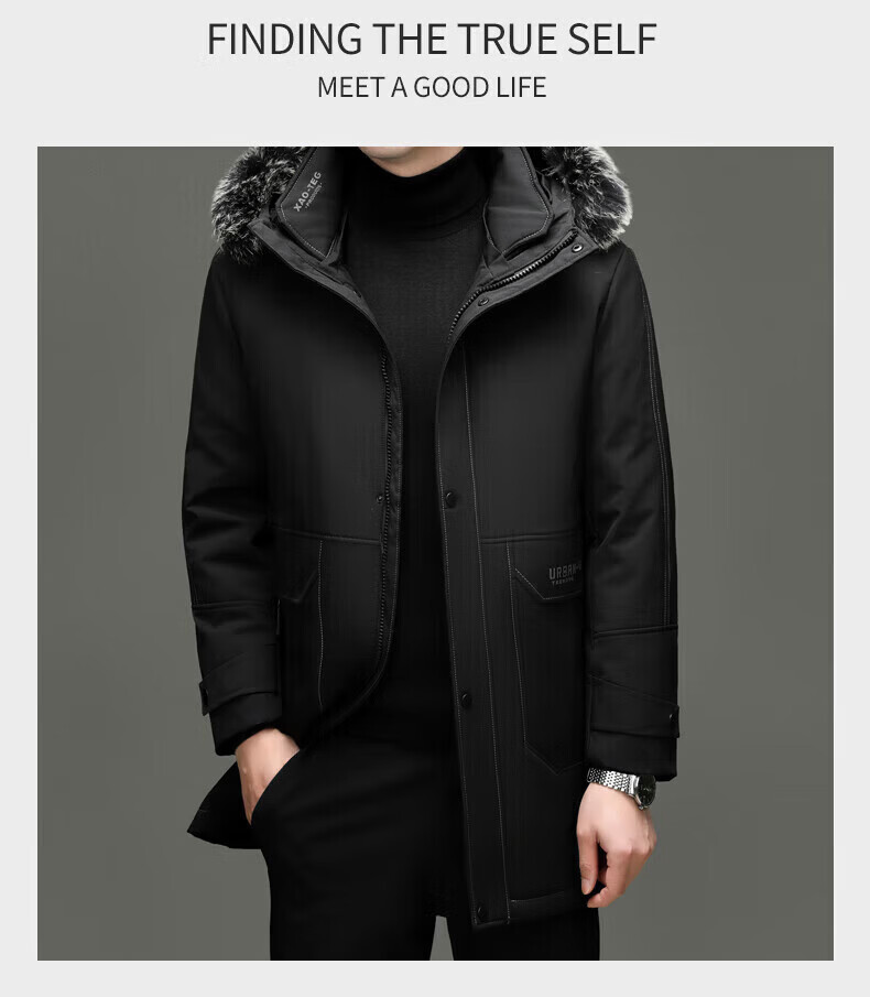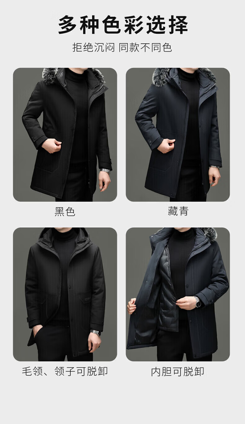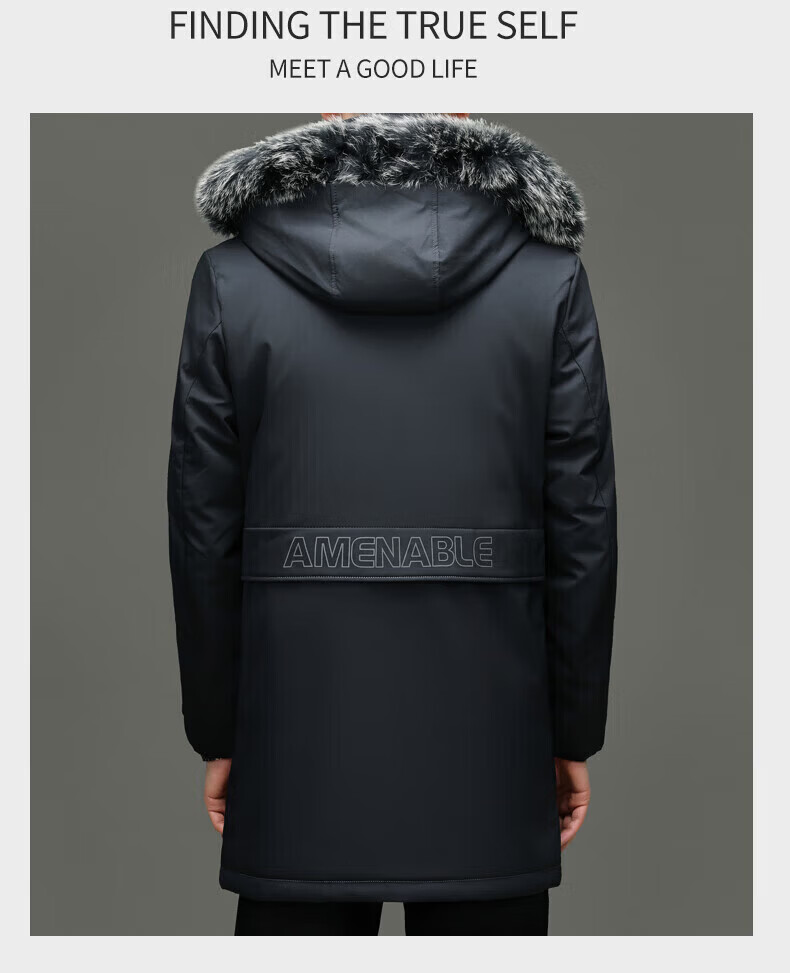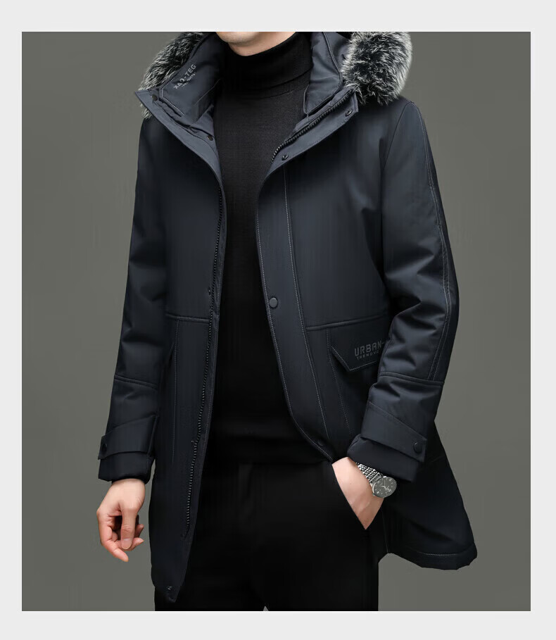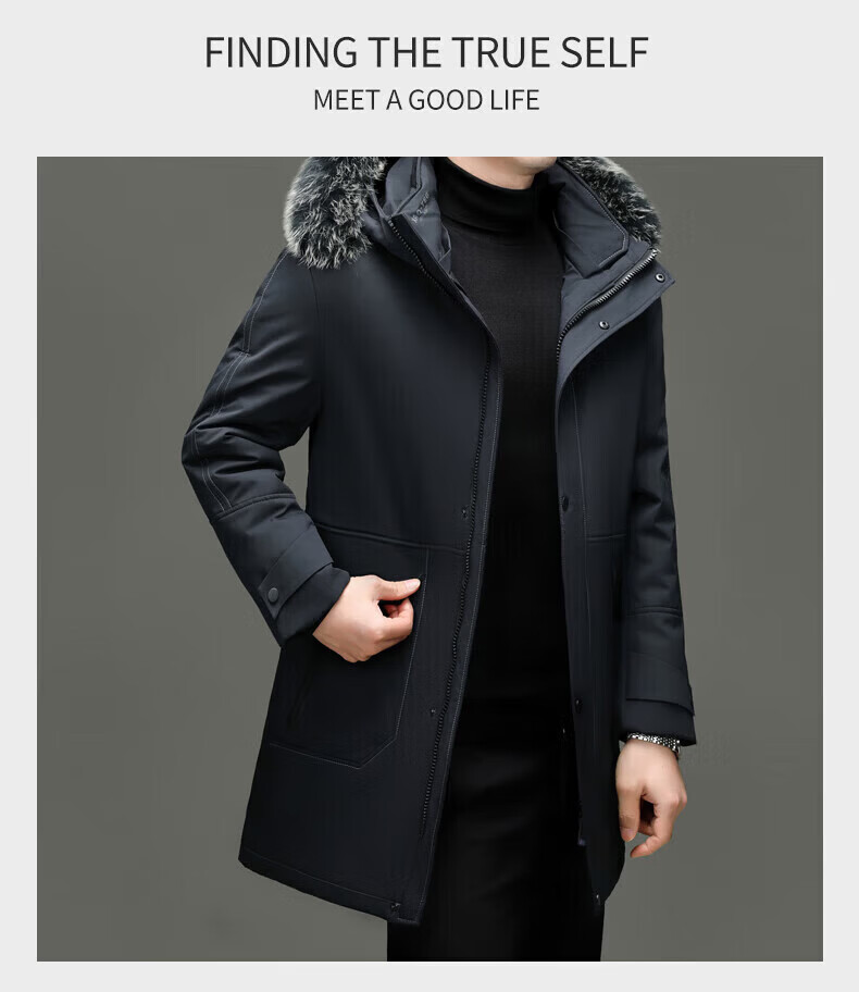 LILANZ элитный пуховик мужской средней длины с меховым воротником со съемной осенне-зимней новой теплой курткой темно-синий XL 180 вес 135-150 Jin Jin равен 0,5 кг