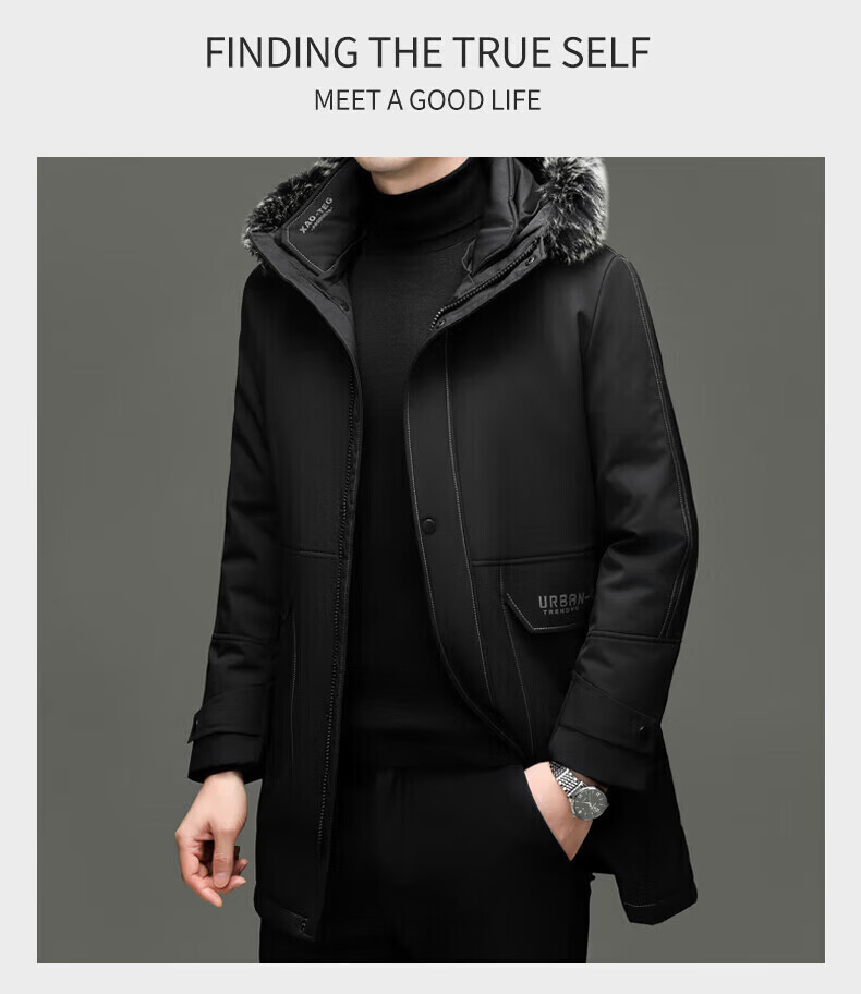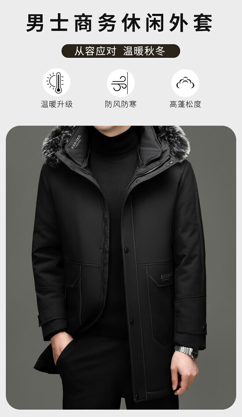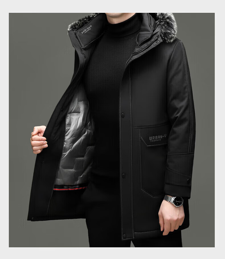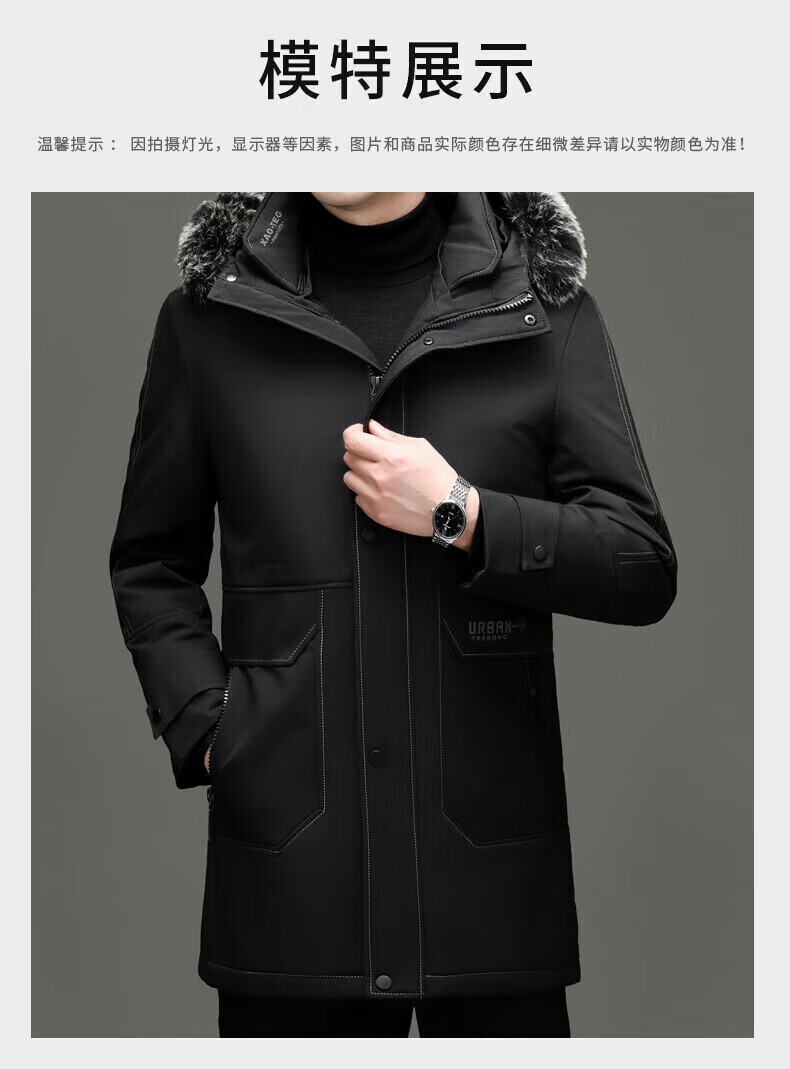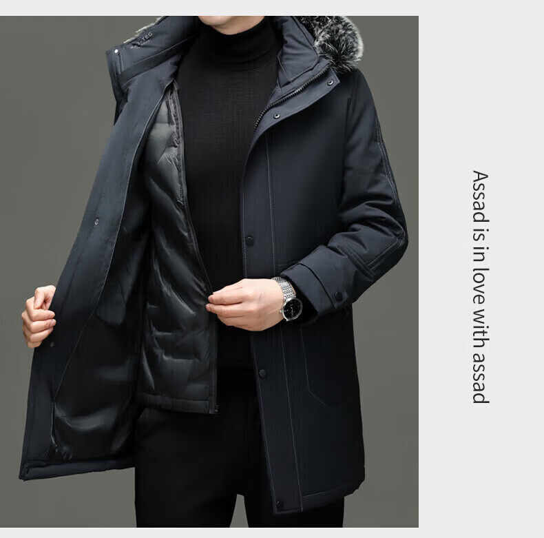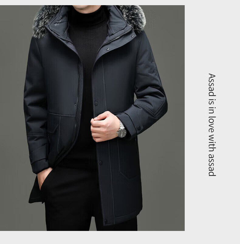 LILANZ элитный пуховик мужской средней длины с меховым воротником со съемной осенне-зимней новой теплой курткой темно-синий XL 180 вес 135-150 Jin Jin равен 0,5 кг