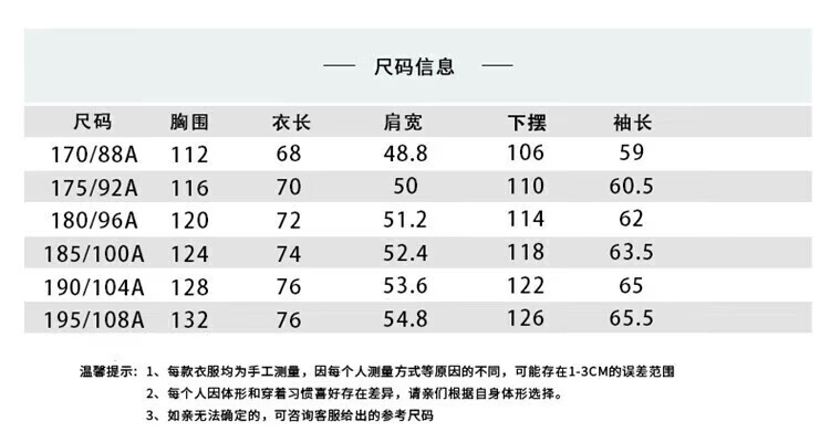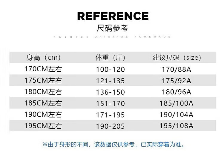China (cm) 160-165/84-86 165-170 / 88-90 167-172 / 92-96 168-173 / 98-102 170-176 / 106-110