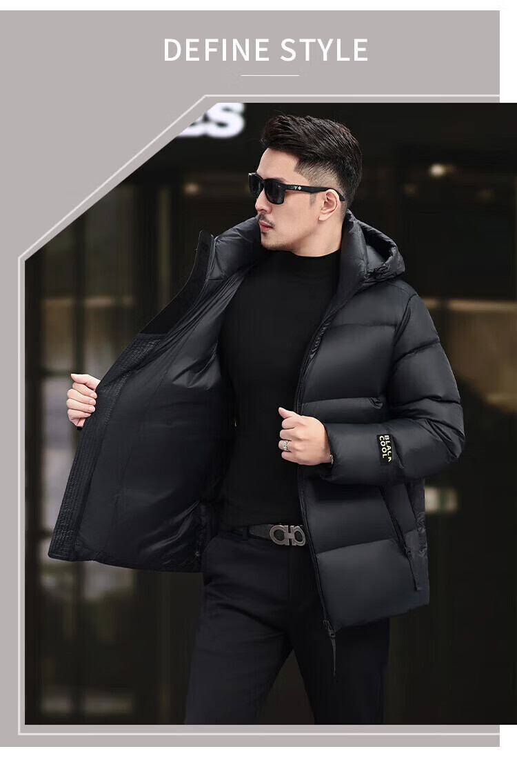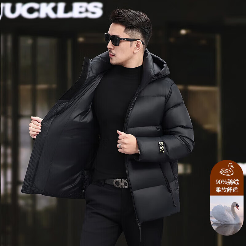 Мужской пуховик LILANZ, зима 2025, новинка, утолщенный, высокий вес, 90% белый гусиный пуховик, теплая и защита от холода, черный S