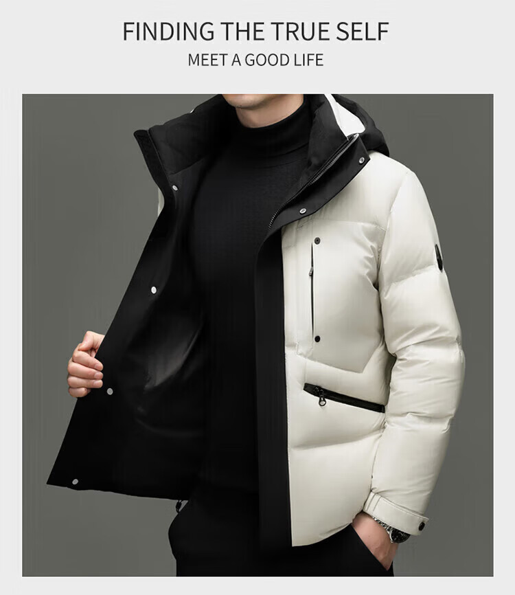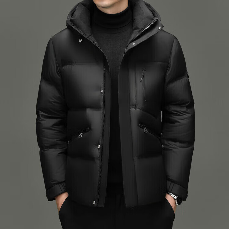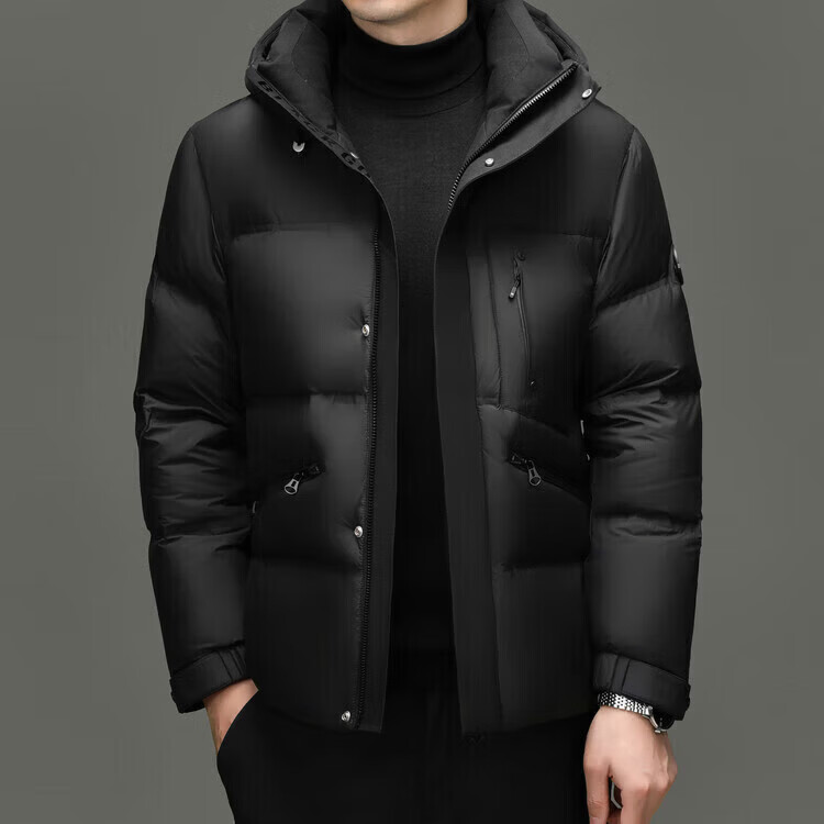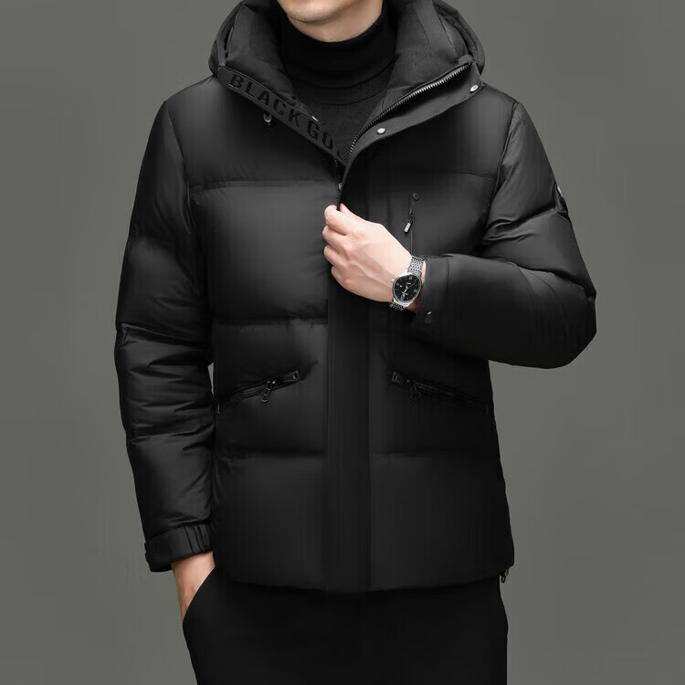 LILANZ холодостойкий и теплый мужской короткий пуховик свободный утолщенный хлебный пуховик рабочая куртка с капюшоном из белого утиного пуха модный черный M
