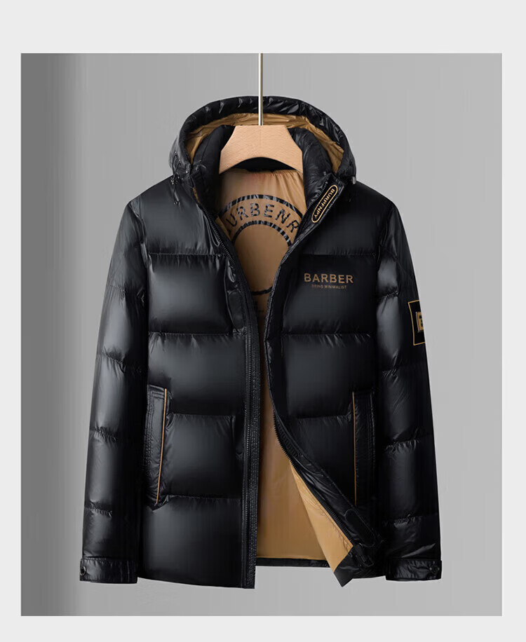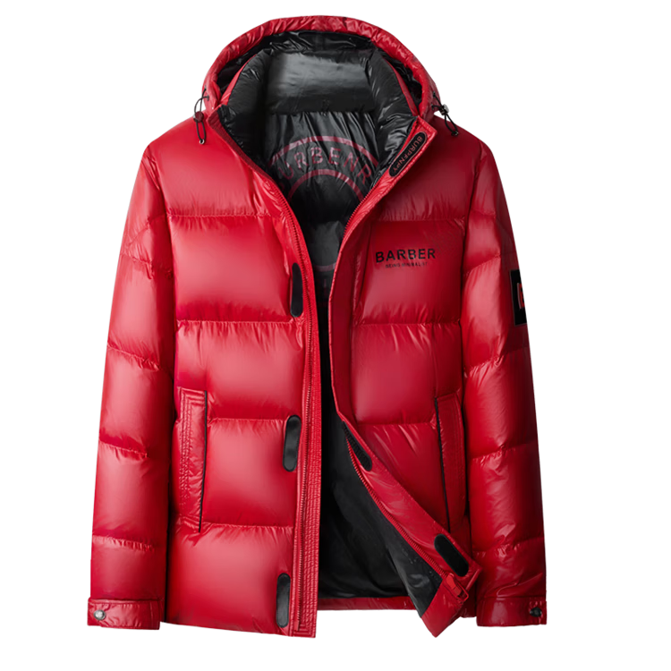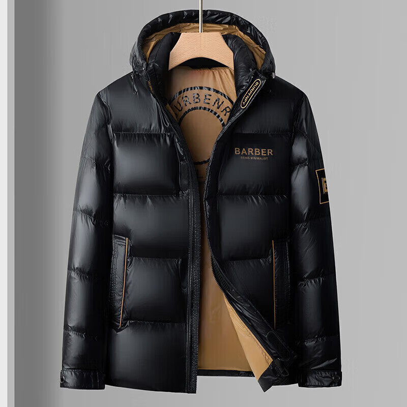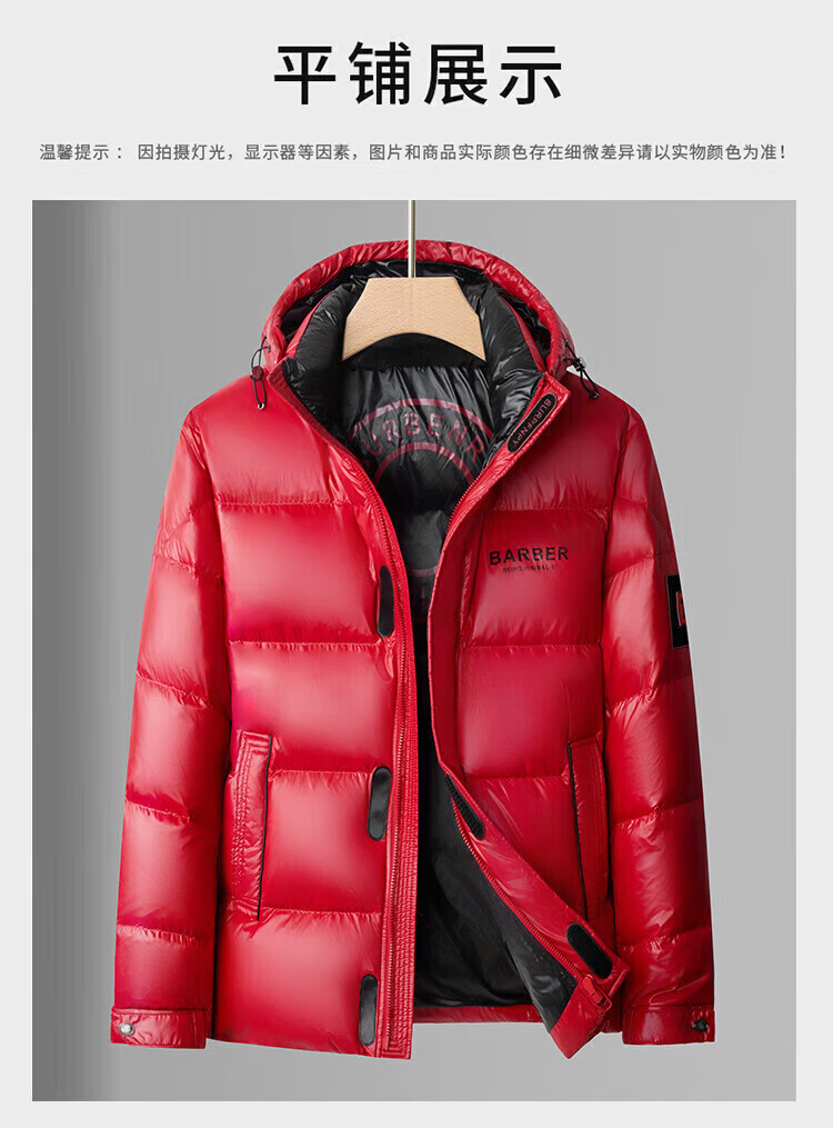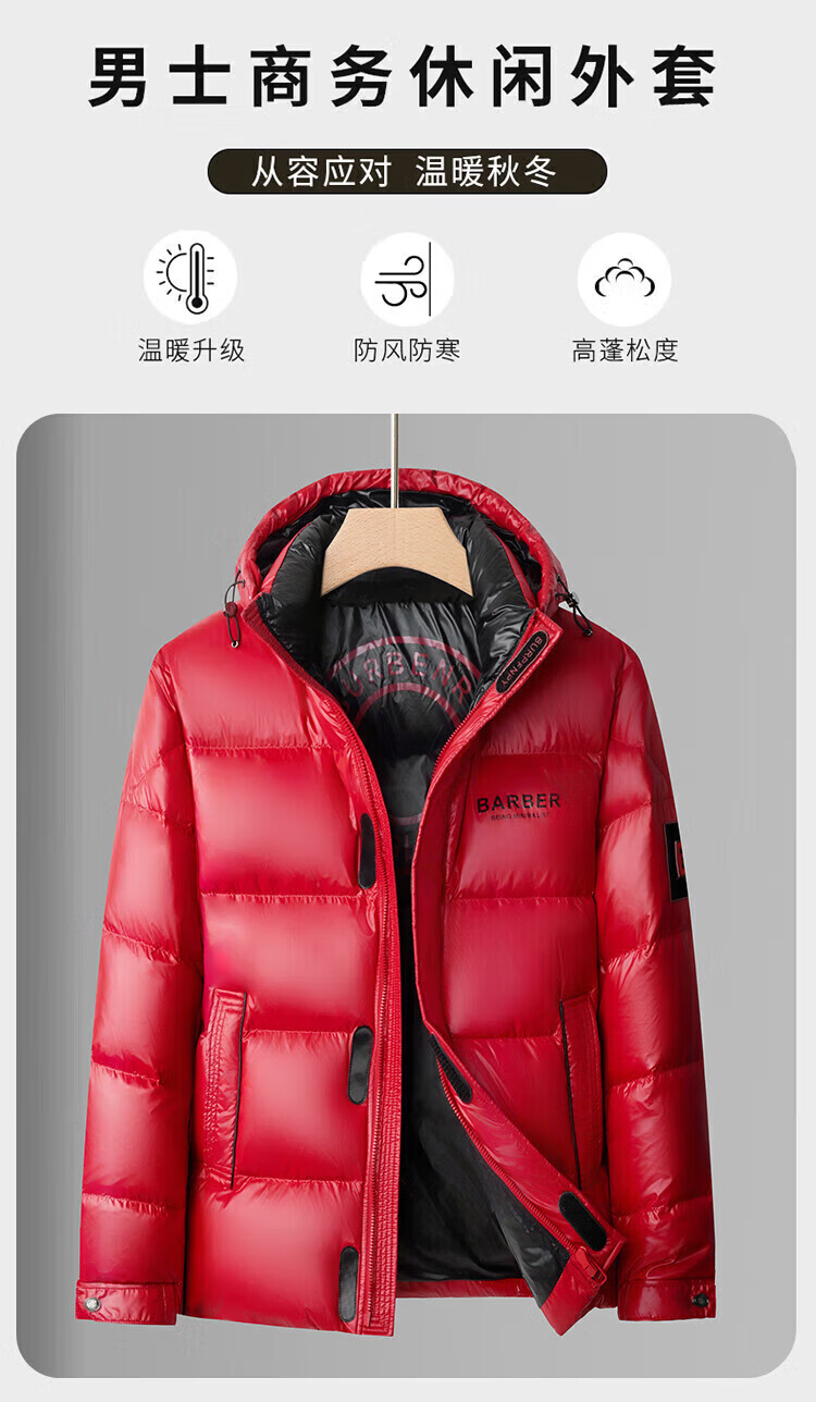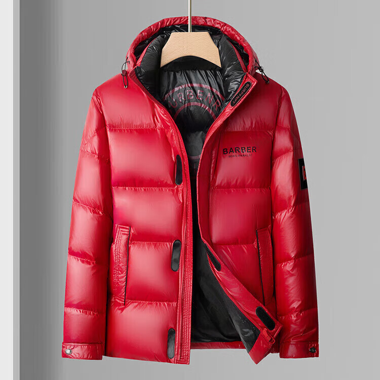 LILANZ Men's 25 Winter New Red Hooded Down Jacket Thickened Warm New Year's Clothing Festive Jacket Men's Fashion Black M 170