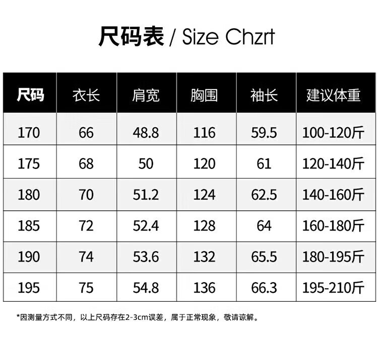 China (cm) 165 / 88-90 170 / 96-98 175 / 108-110 180 / 118-122 185 / 126-130