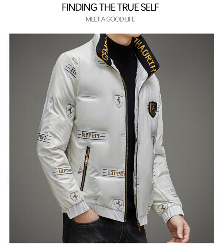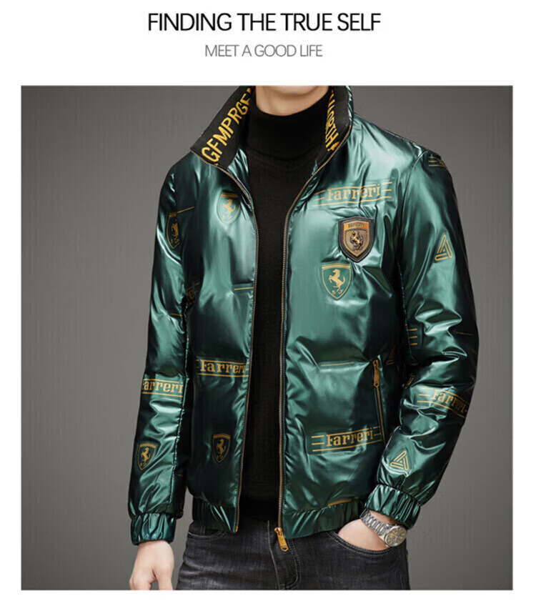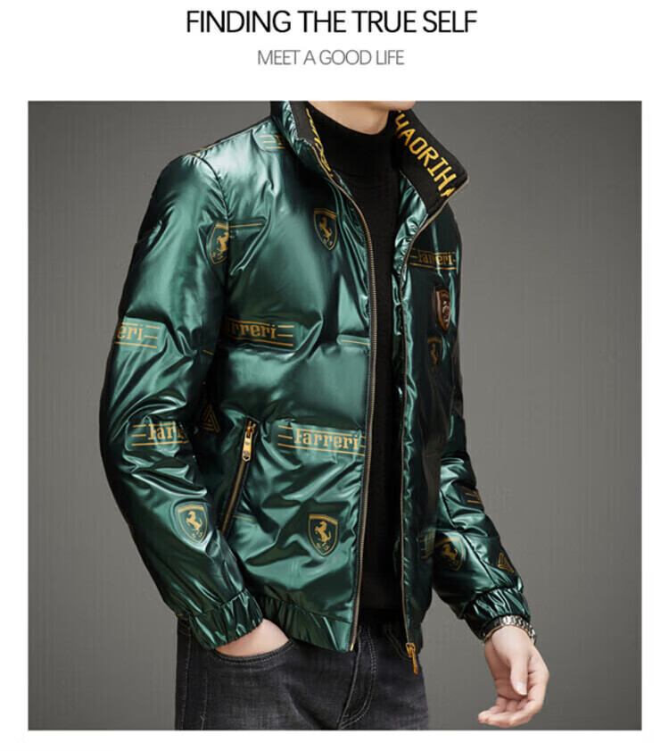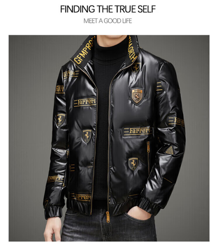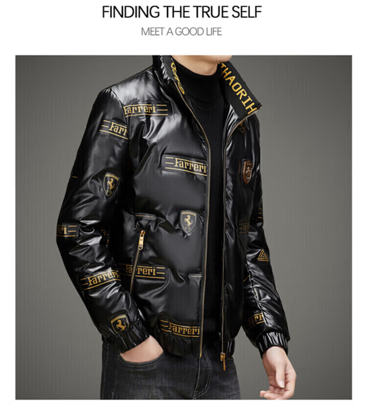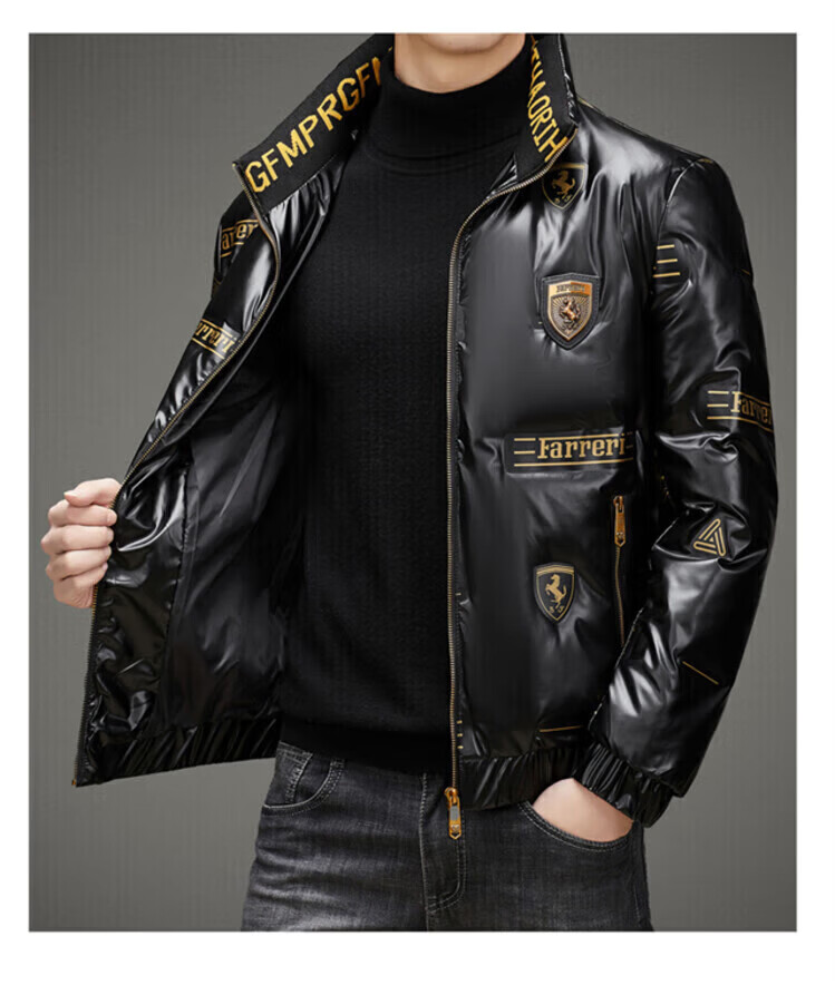 LILANZ Мужской глянцевый несмываемый пуховик Короткий зимний стиль Утепленный модный красивый повседневный утиный черный цвет L _Рекомендуется 100-120 Джин Джин равен 0,5 кг для ношения