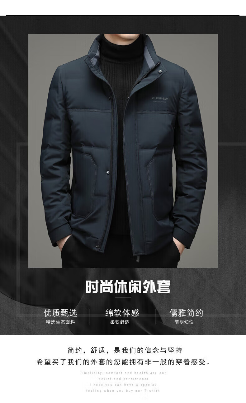 LILANZ Light Fashion Men's Down Jacket 2025 Winter New Style Young and Middle-aged Men White Duck Down Thickened Warm Stand-up Collar 329 Ha Cyan M 170