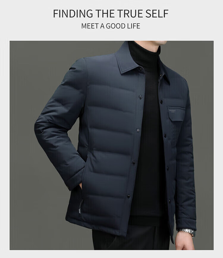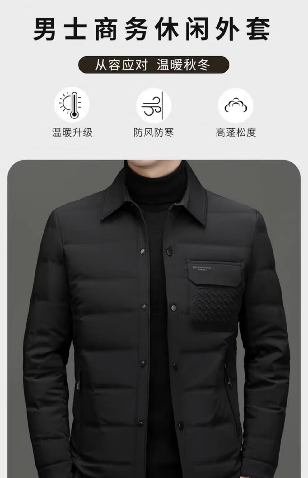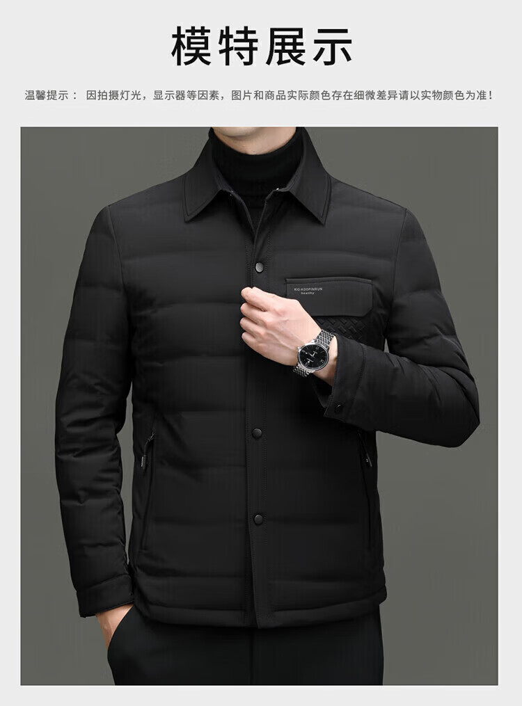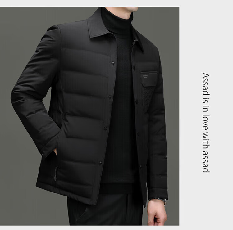 LILANZ Мужской пуховик Зимний легкий короткий мужской повседневный пиджак с лацканами для среднего возраста Утепленная теплая куртка Модный черный размер M 170 (рекомендуемый вес 100-120 Jin Jin равен 0,5 кг)