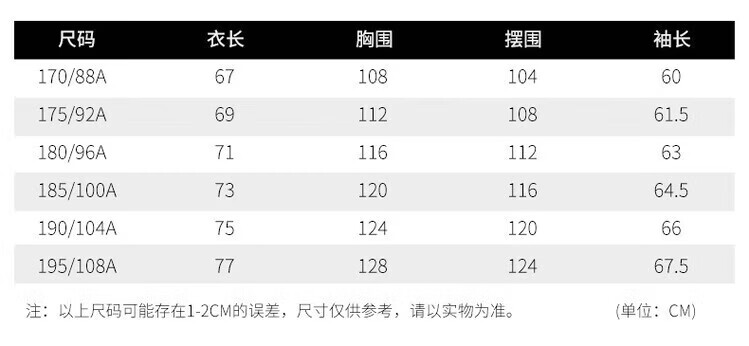 China (cm) 160-165/84-86 165-170 / 88-90 167-172 / 92-96 168-173 / 98-102 170-176 / 106-110