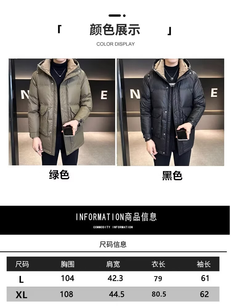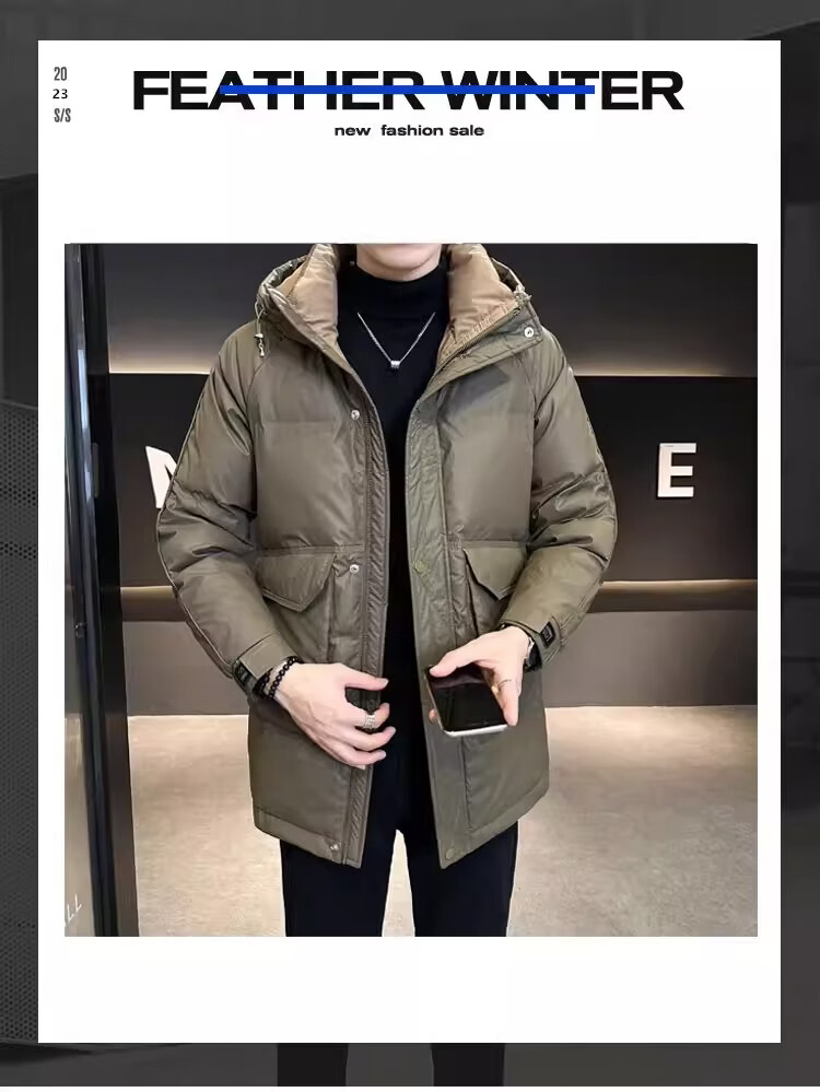 DVHNMK Высококачественный пуховик мужского зимнего бренда DVHNMK, новый высококачественный универсальный утепленный пуховик средней длины с капюшоном в стиле милитари, зеленый спот, скорость L рекомендуется 95-115Jin Jin равен 0,5 кг