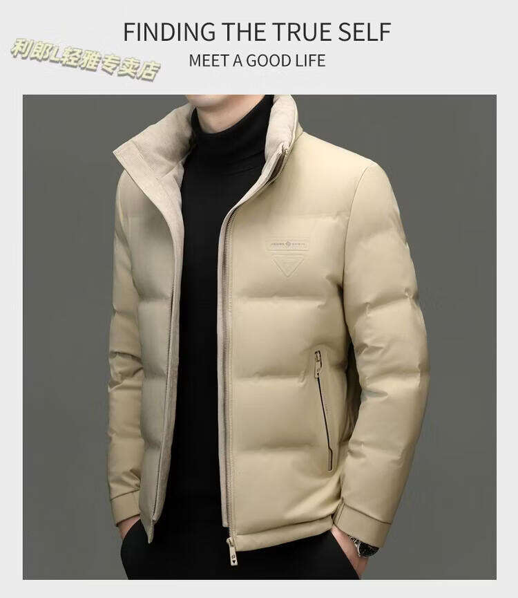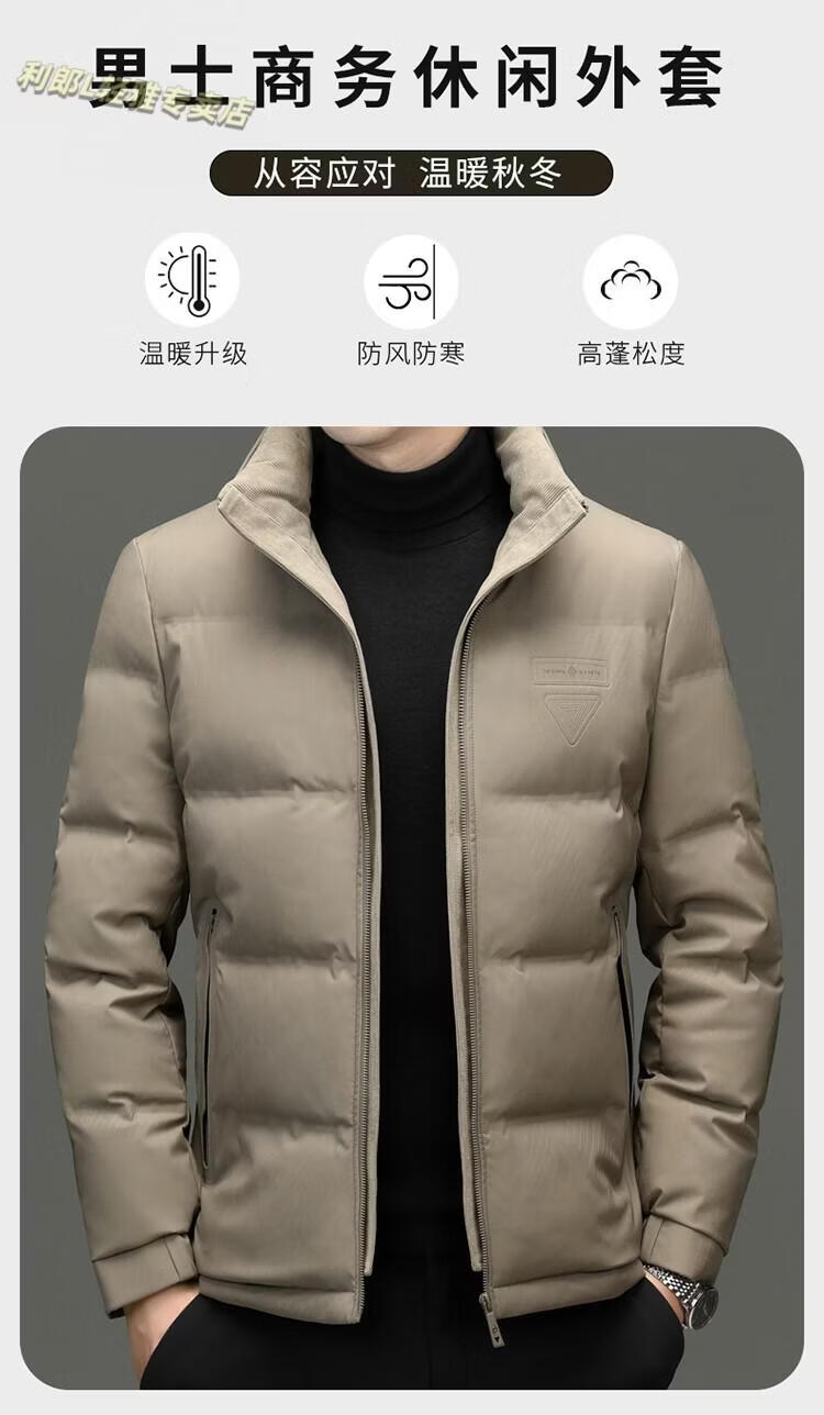 LILANZ зимний короткий пуховик с воротником-стойкой для мужчин молодого и среднего возраста, деловой модный утолщенный морозостойкий теплый хлебный пуховик темного цвета хаки L 175
