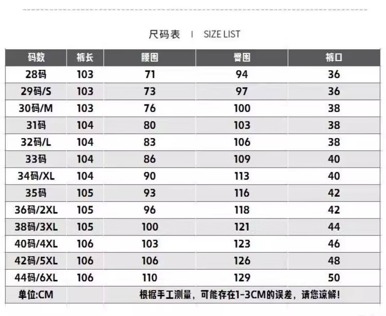 USA(inch) 28-30 30-32 32-34 34-38 38-42
