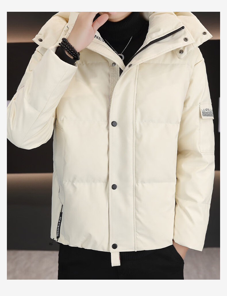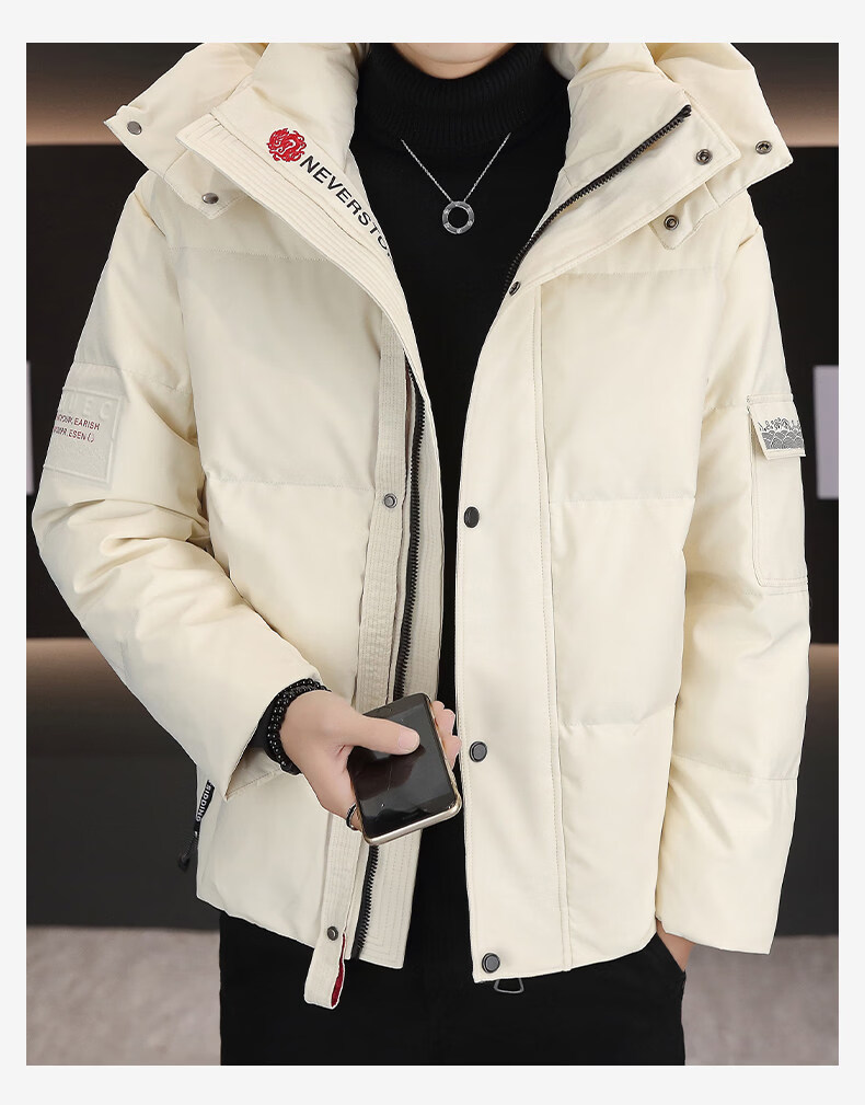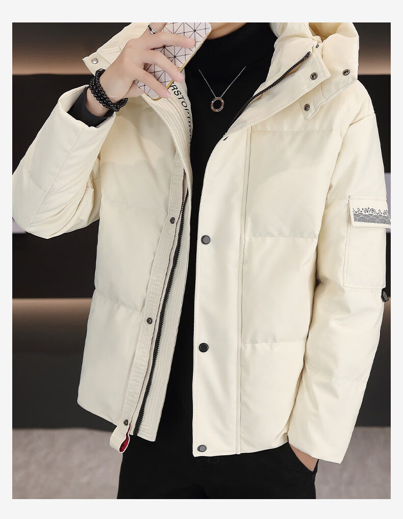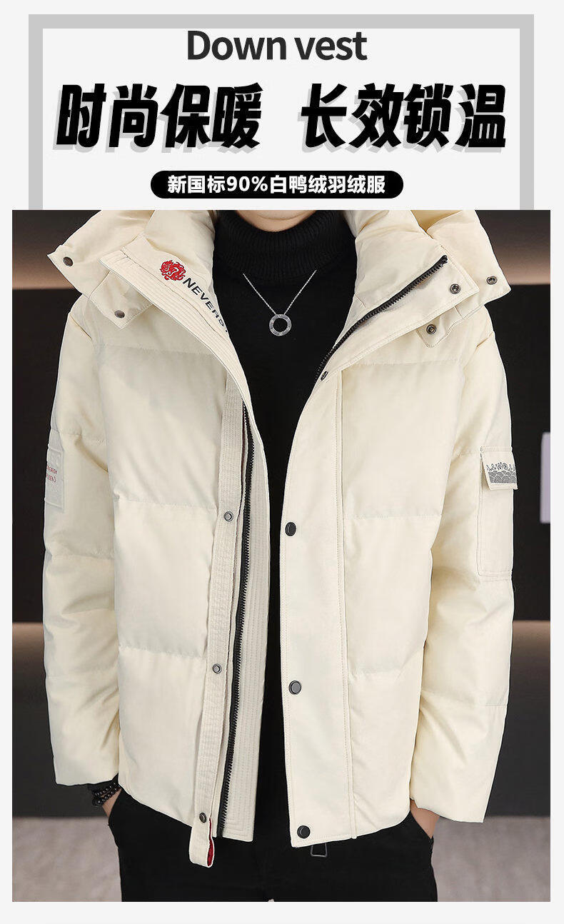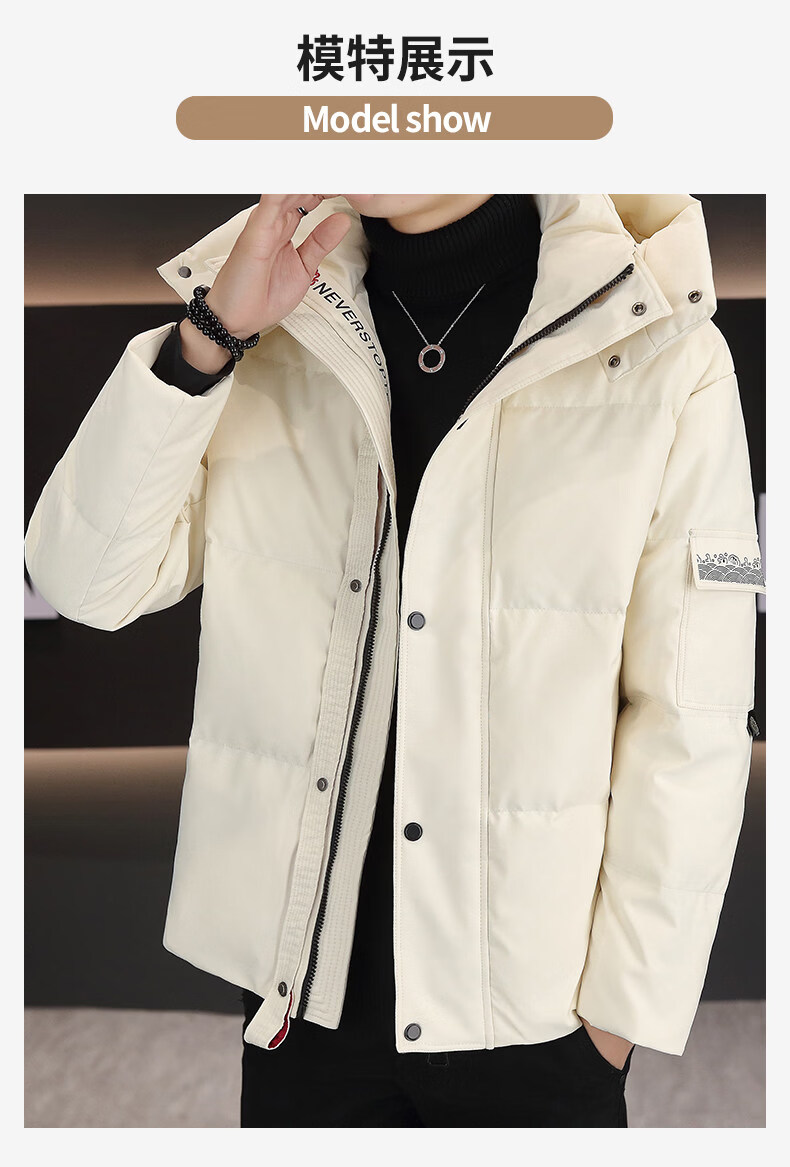 JEEP SPIRIT2025 зимний мужской пуховик с капюшоном, модный красивый повседневный топ, утепленная теплая и морозостойкая куртка кремового цвета 2XL от 160 до 175Jin Jin, вес 0,5 кг.