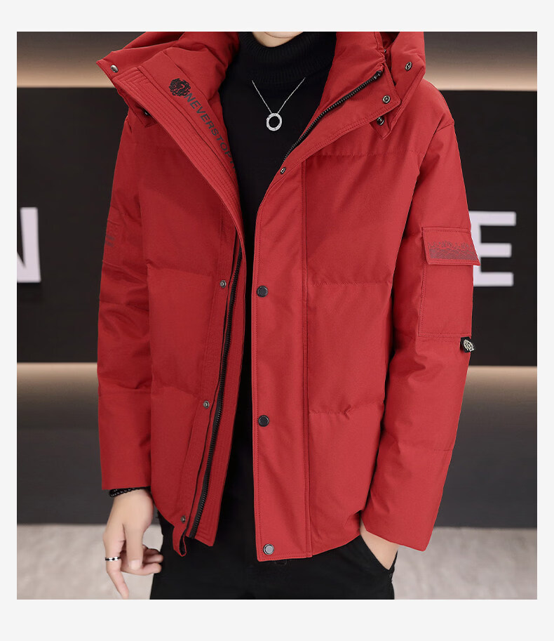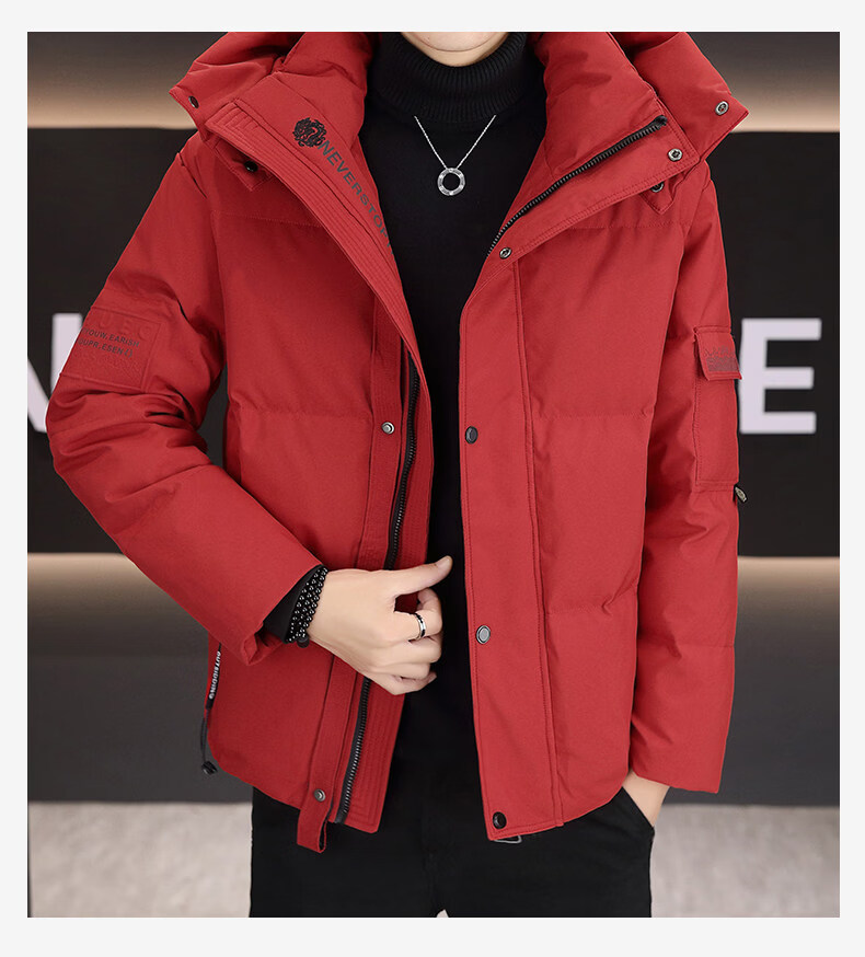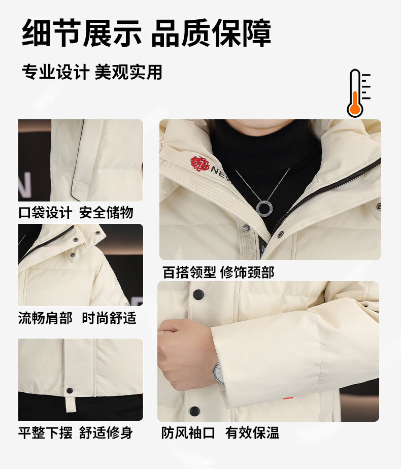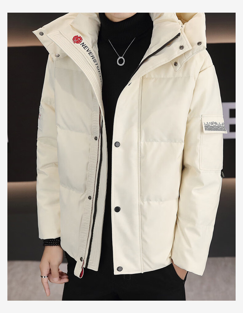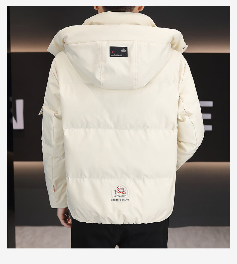 JEEP SPIRIT2025 зимний мужской пуховик с капюшоном, модный красивый повседневный топ, утепленная теплая и морозостойкая куртка кремового цвета 2XL от 160 до 175Jin Jin, вес 0,5 кг.