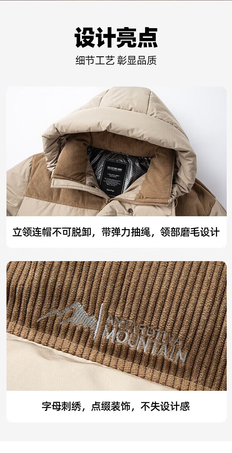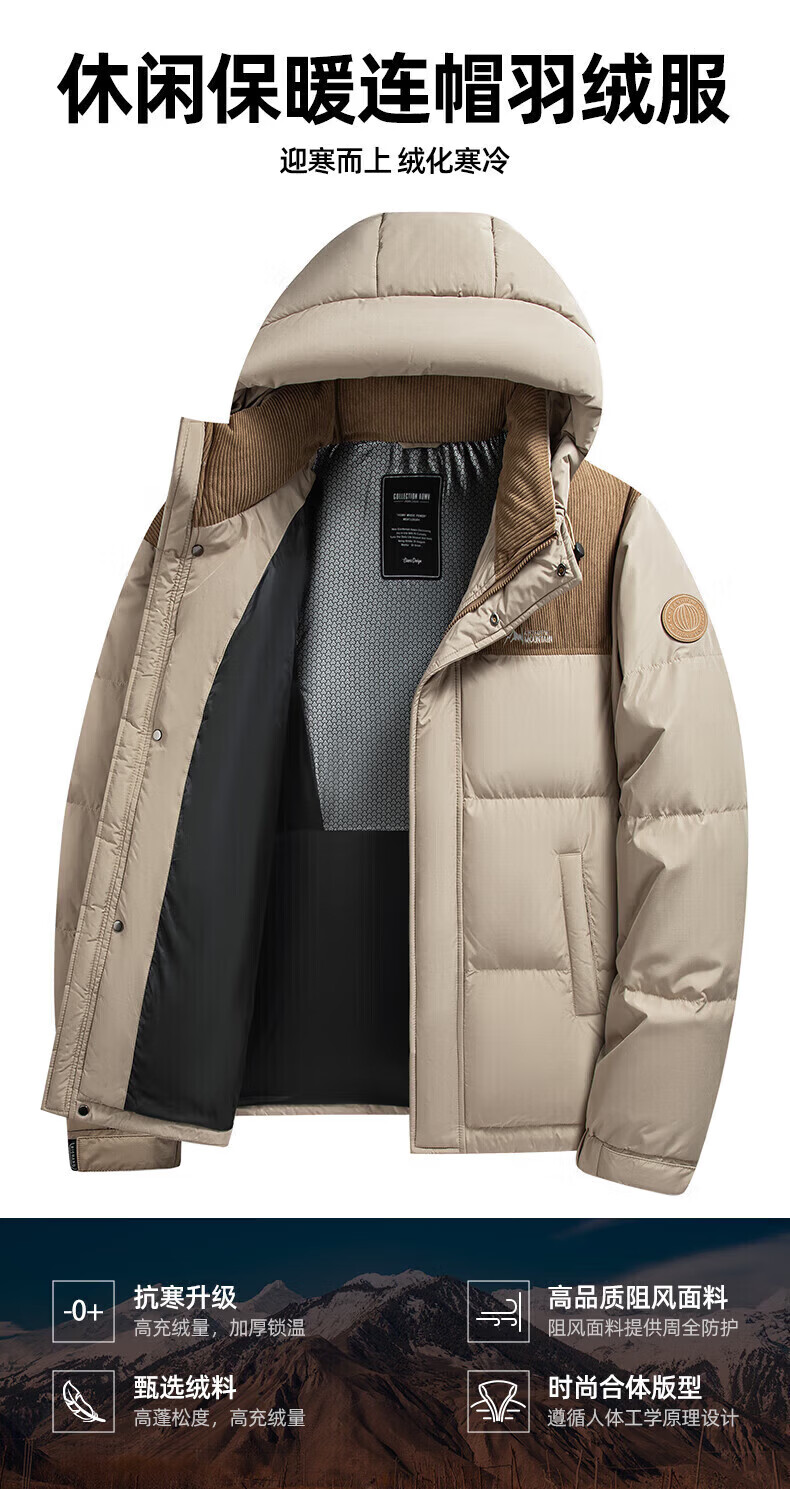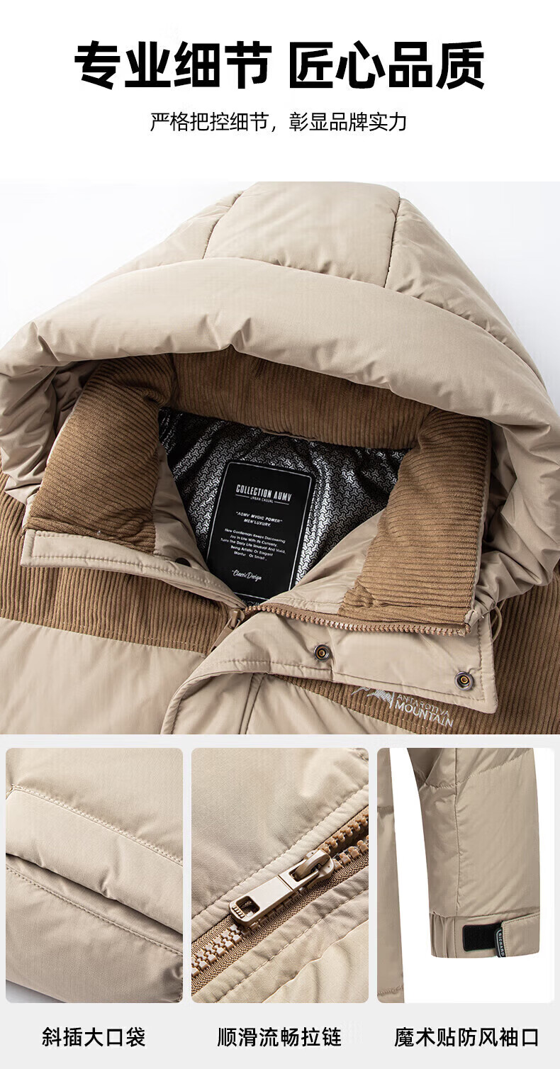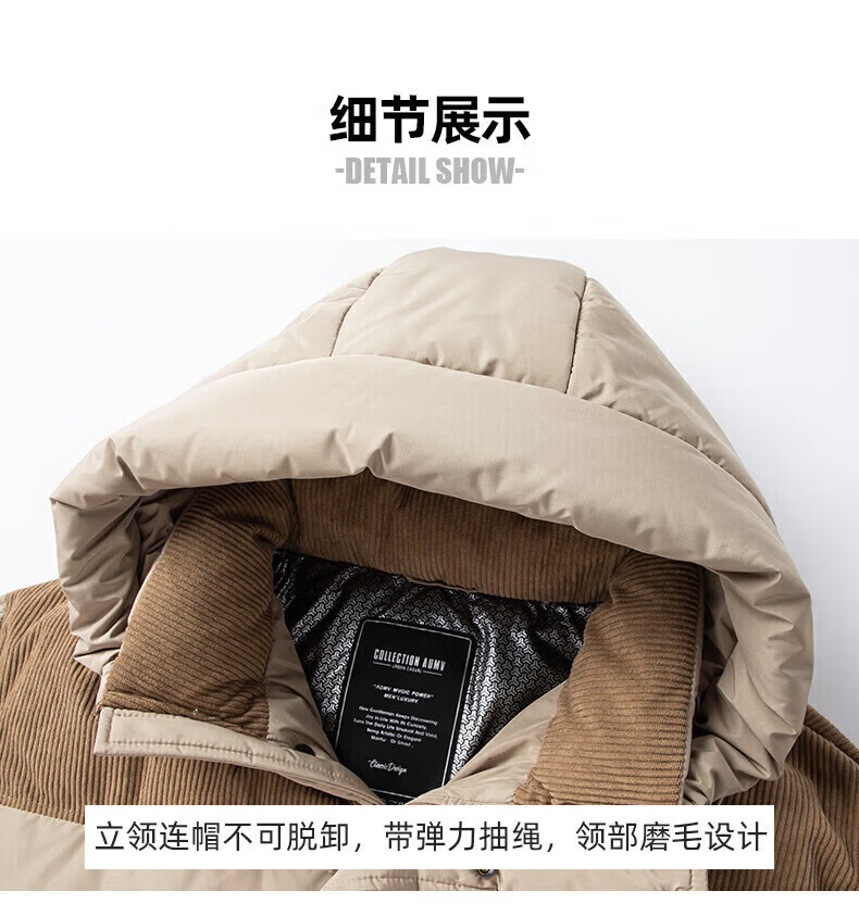 ROMON cold-proof and warm hooded bread jacket for young and middle-aged men in winter new fashion casual versatile down jacket for men 7Y146985 Khaki stand-up collar 3XL (190) Recommended 165-180 Jin Jin equals 0.5 kg