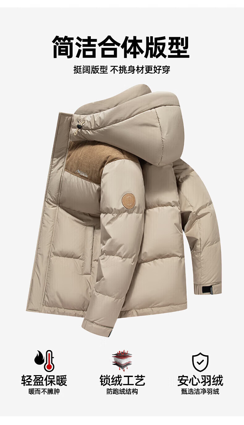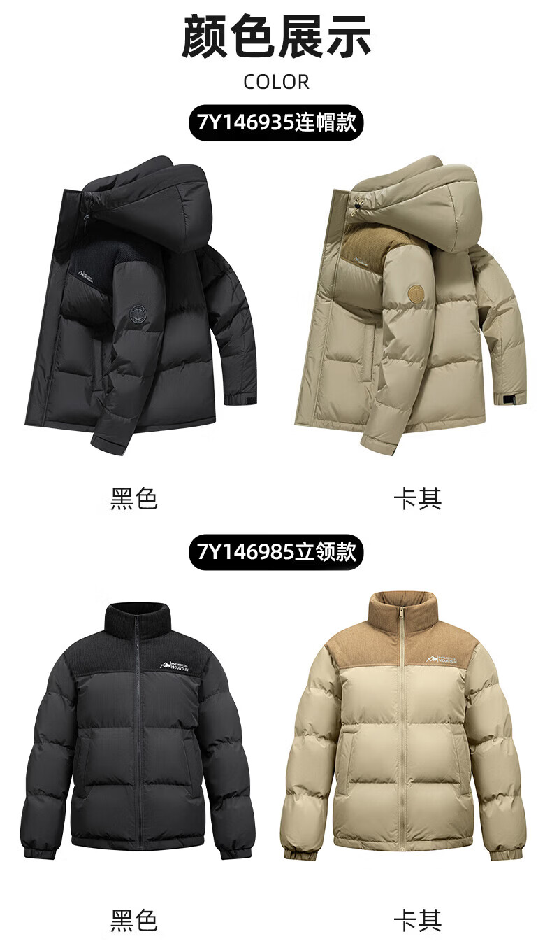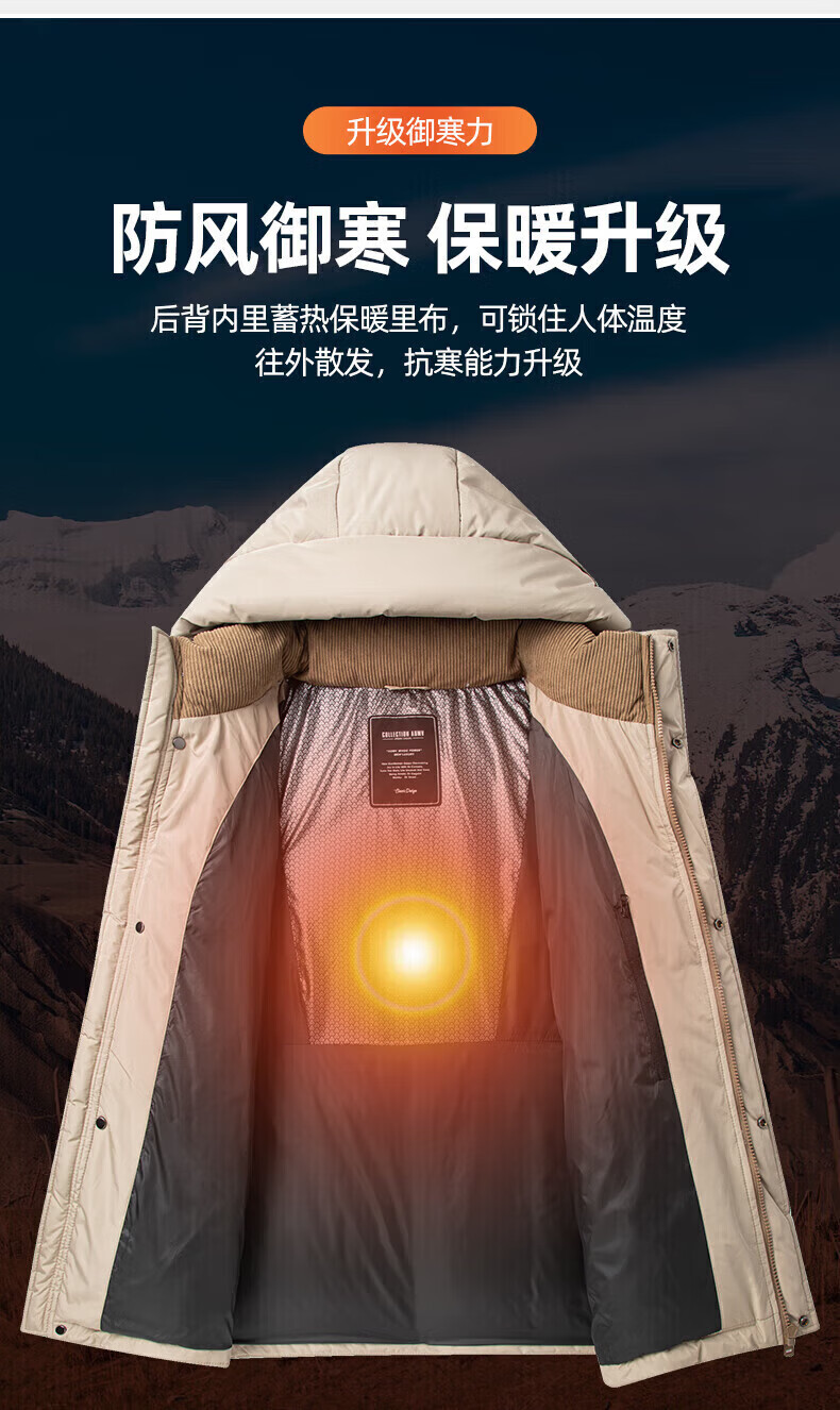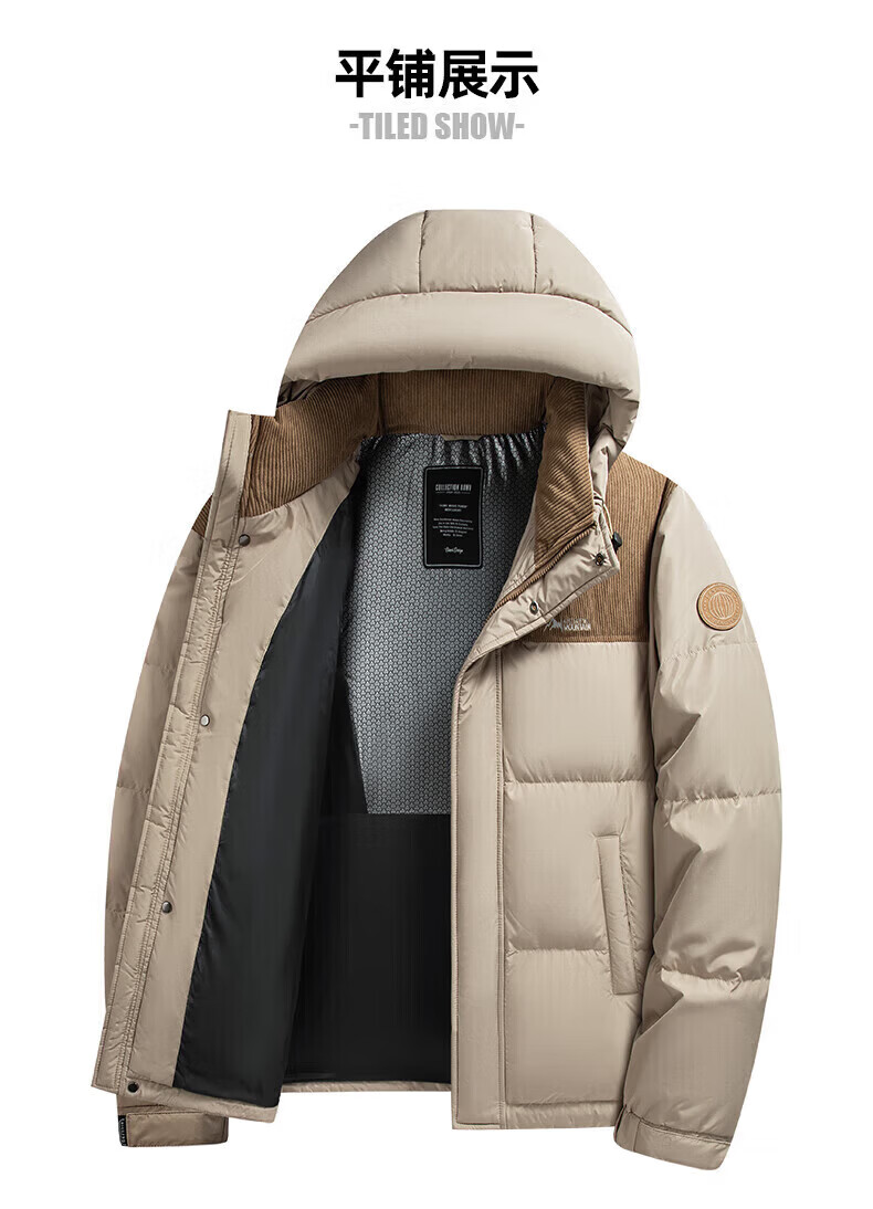 ROMON cold-proof and warm hooded bread jacket for young and middle-aged men in winter new fashion casual versatile down jacket for men 7Y146985 Khaki stand-up collar 3XL (190) Recommended 165-180 Jin Jin equals 0.5 kg