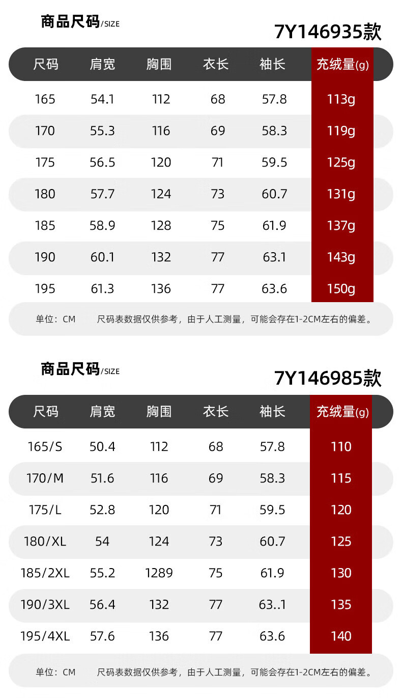 China (cm) 165 / 88-90 170 / 96-98 175 / 108-110 180 / 118-122 185 / 126-130
