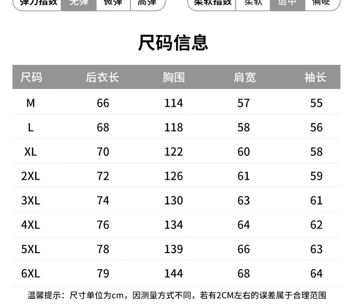 Size (cm) 42 44 46 48 50