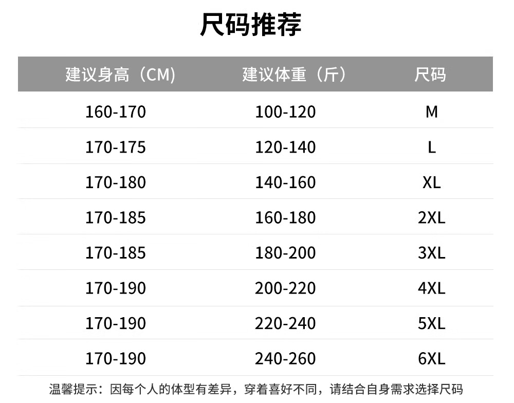 China (cm) 165 / 88-90 170 / 96-98 175 / 108-110 180 / 118-122 185 / 126-130