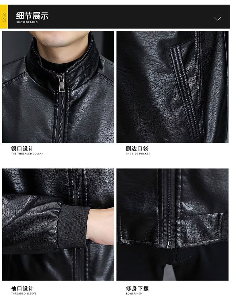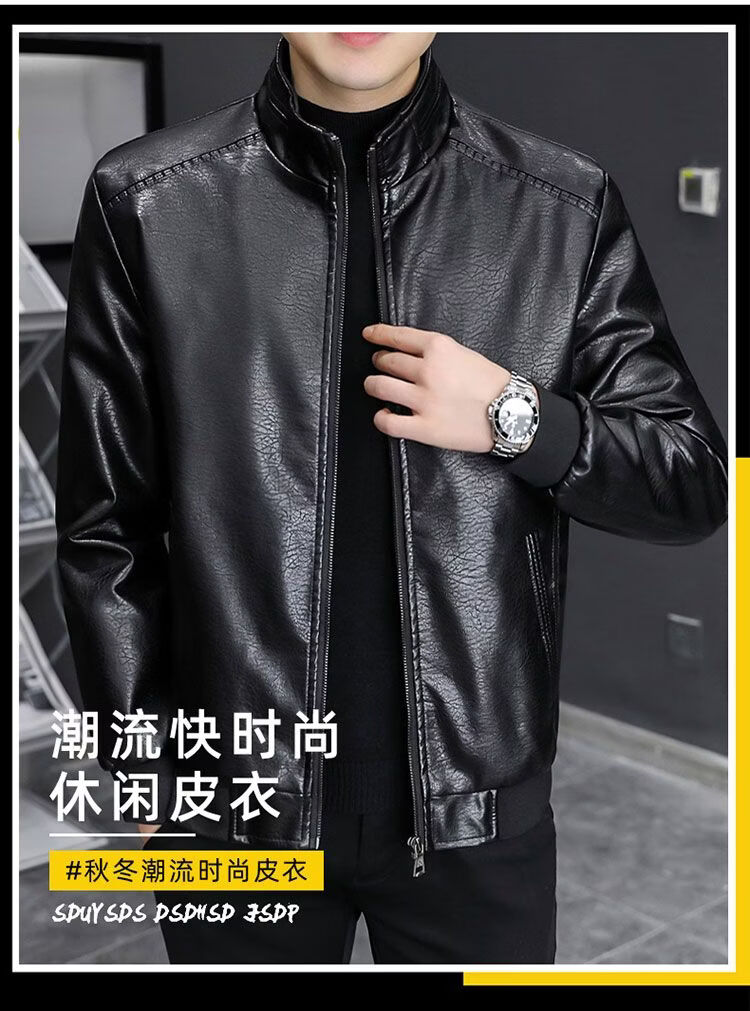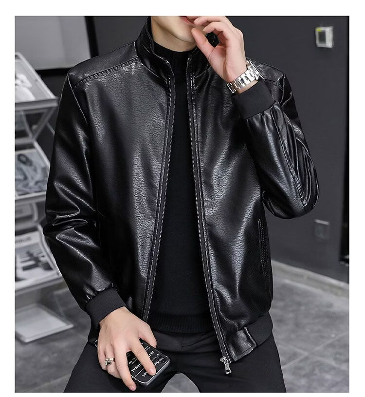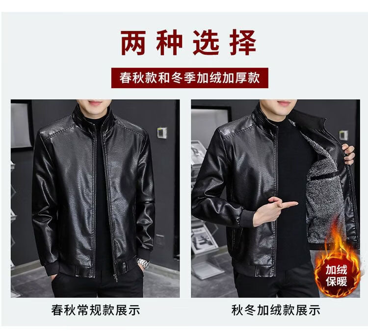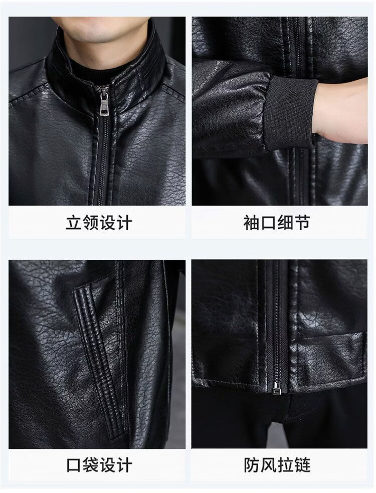 利郎(LILANZ)秋冬加绒加厚男士立领皮衣外套韩版宽松皮夹克简约潮流休闲机车服 黑色 单 L