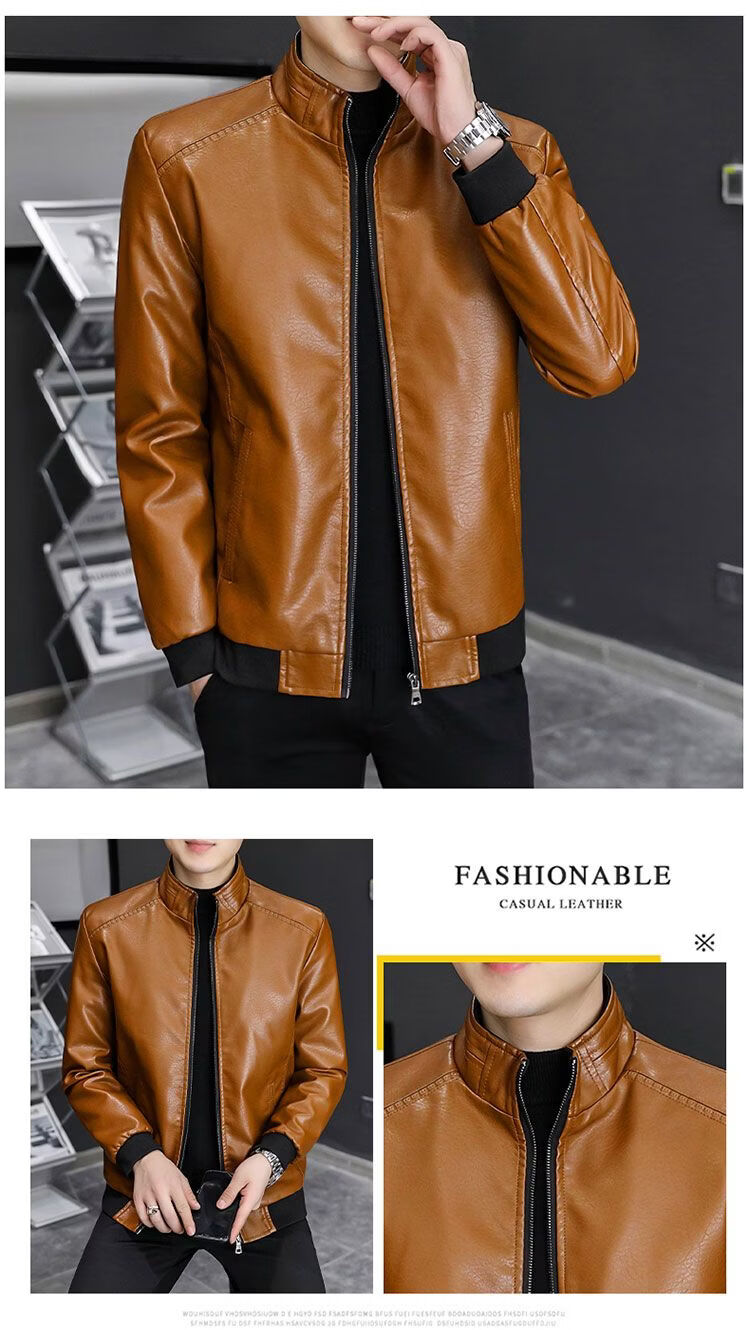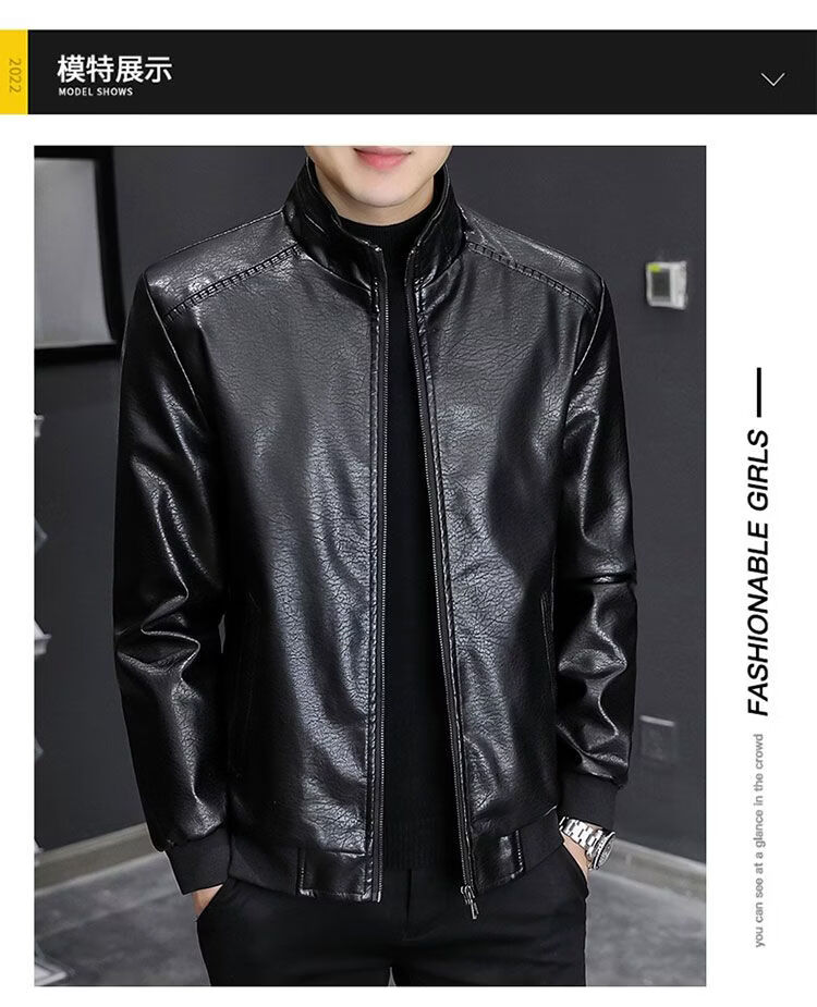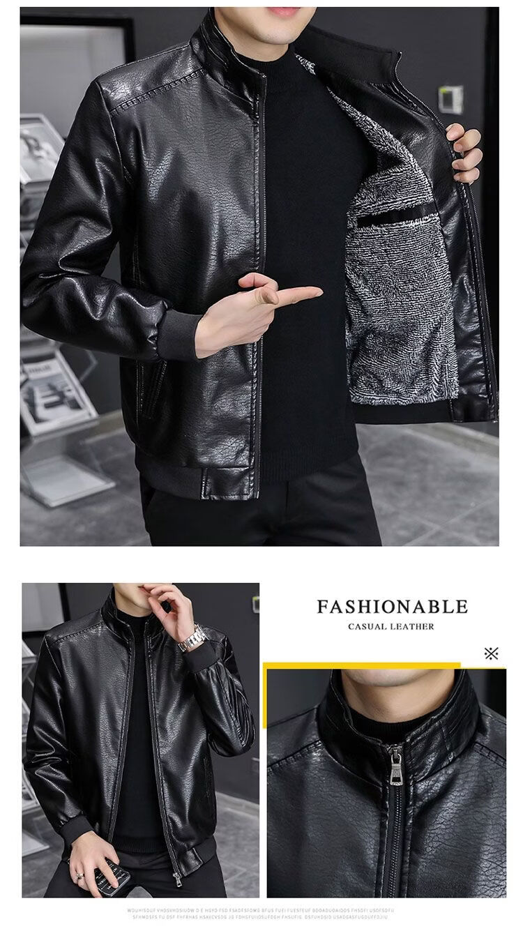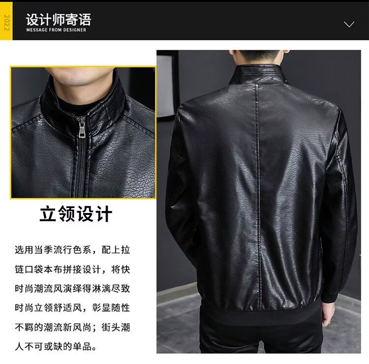 利郎(LILANZ)秋冬加绒加厚男士立领皮衣外套韩版宽松皮夹克简约潮流休闲机车服 黑色 单 L