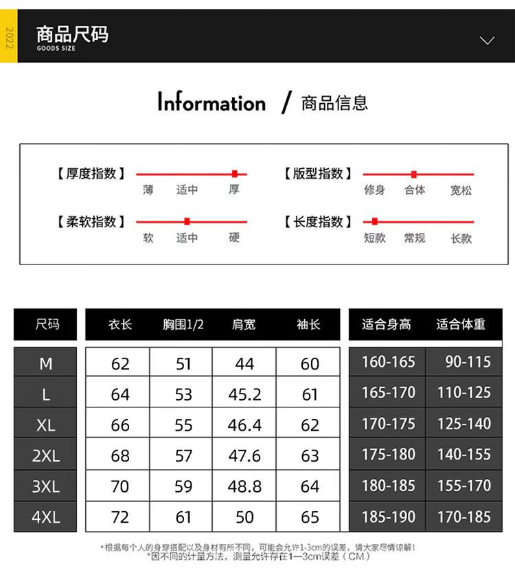 China (cm) 165 / 88-90 170 / 96-98 175 / 108-110 180 / 118-122 185 / 126-130