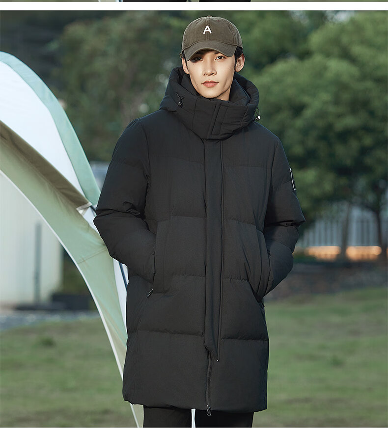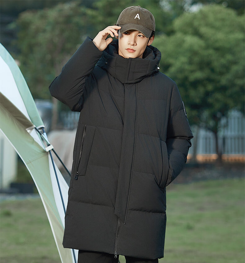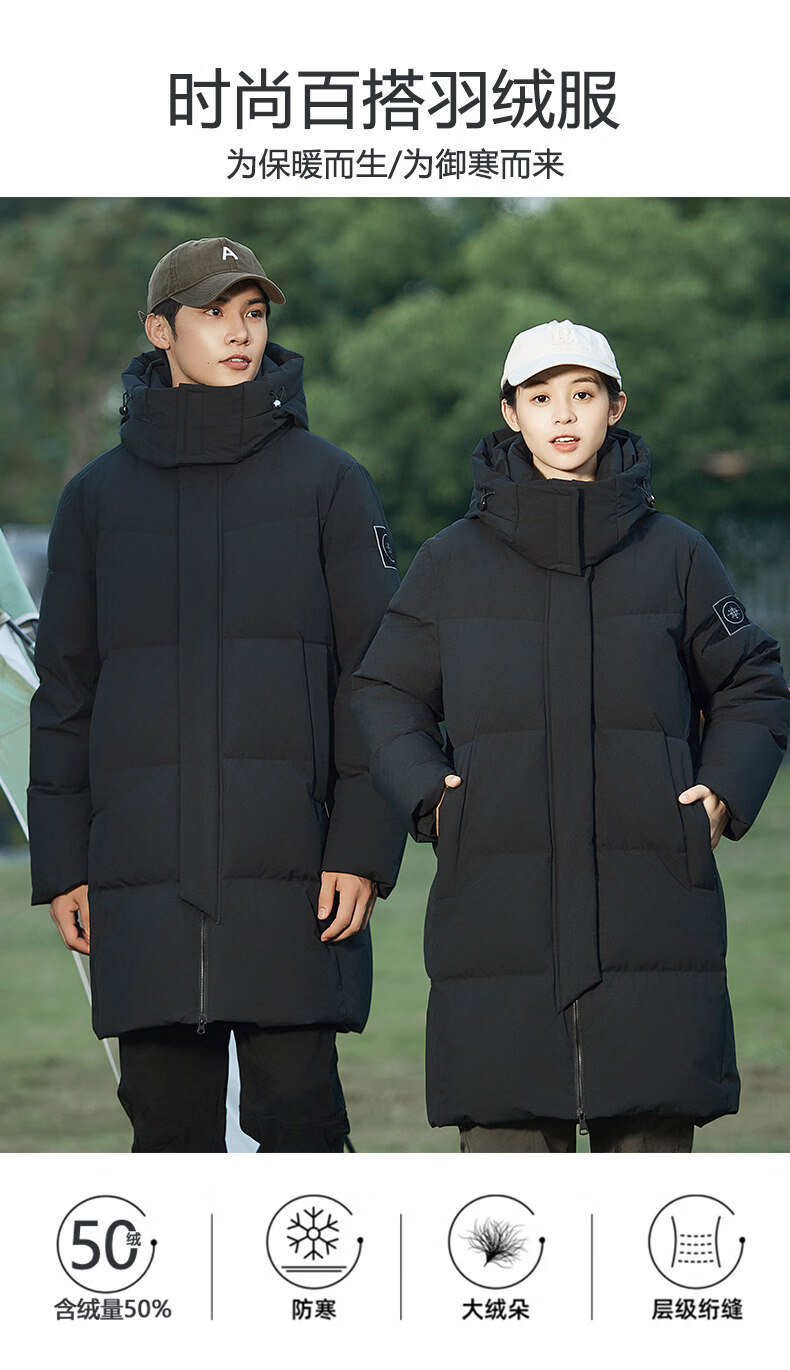 viishow羽绒服加厚中长款保暖加厚休闲时尚情侣90白鸭绒外套男士 黑色 M