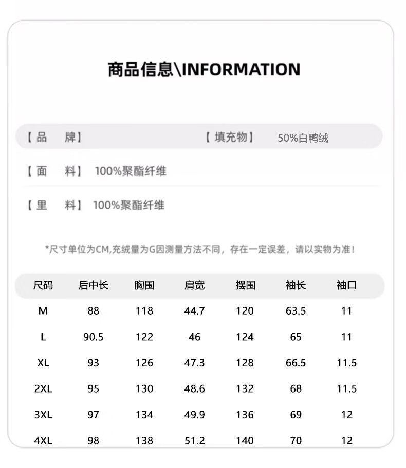 Size (cm) 42 44 46 48 50
