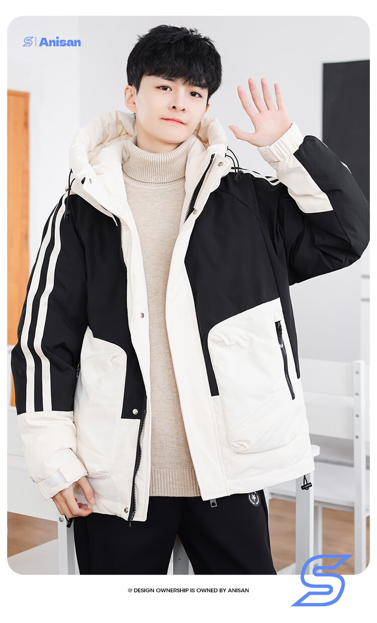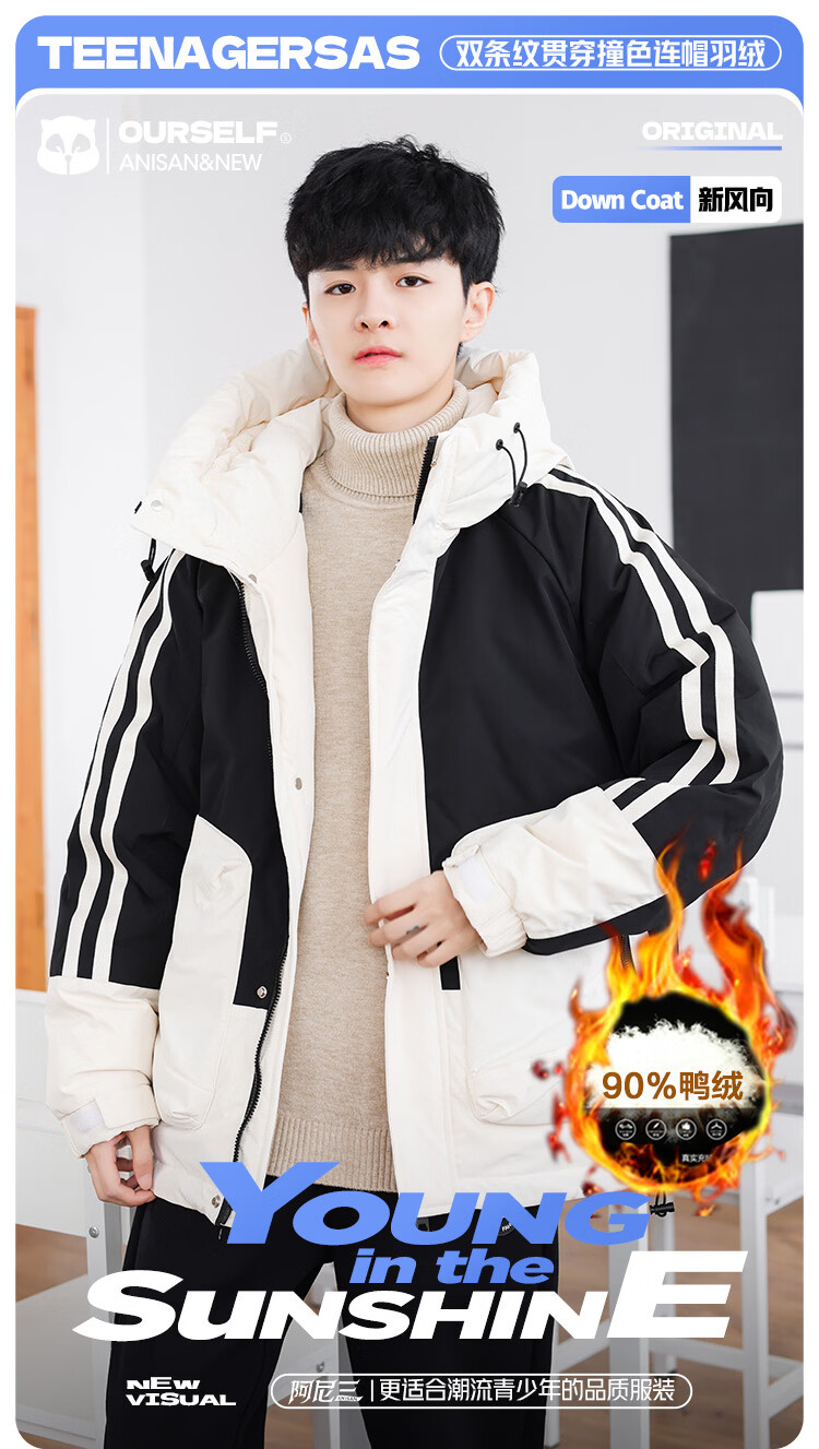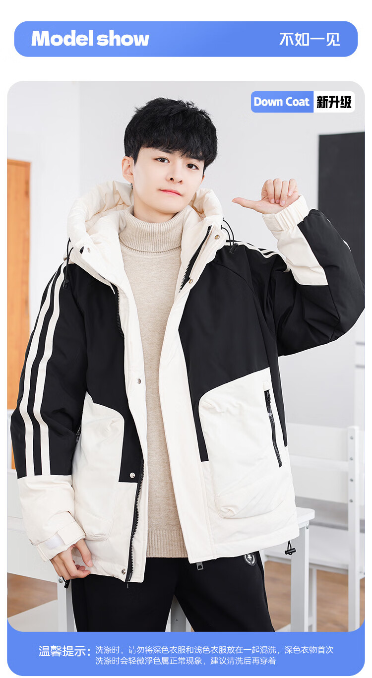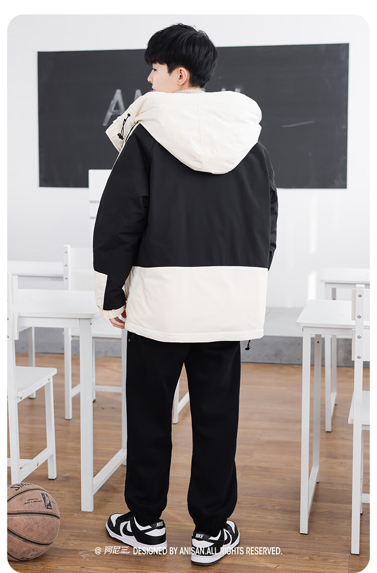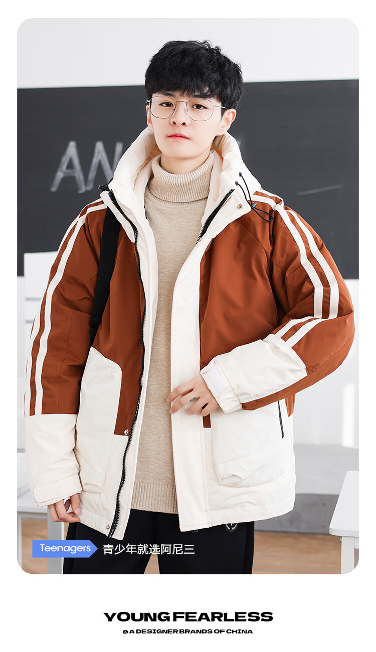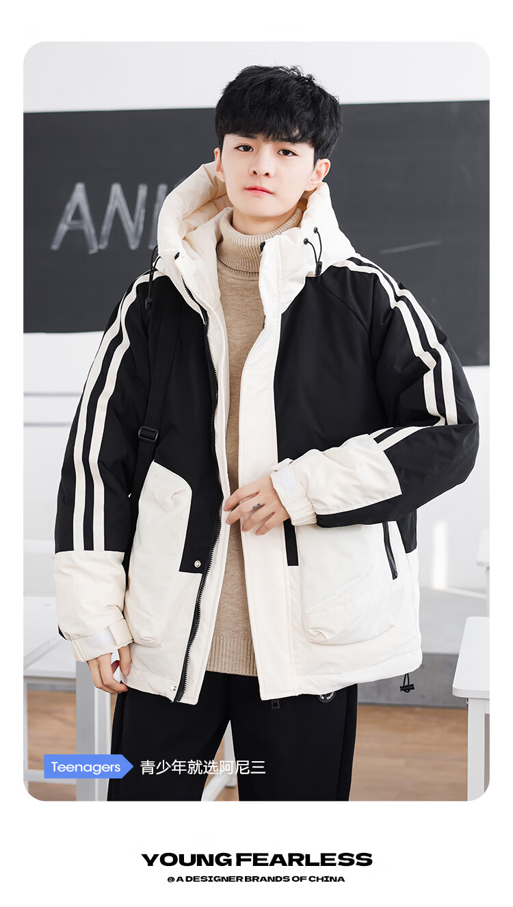 Arnie San Youth Winter Down Jacket Men's 2025 New Hooded Jacket Men's Fashionable and Handsome Junior High School and High School Students Black M