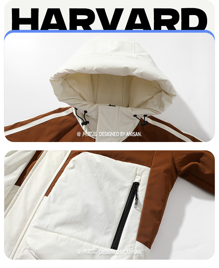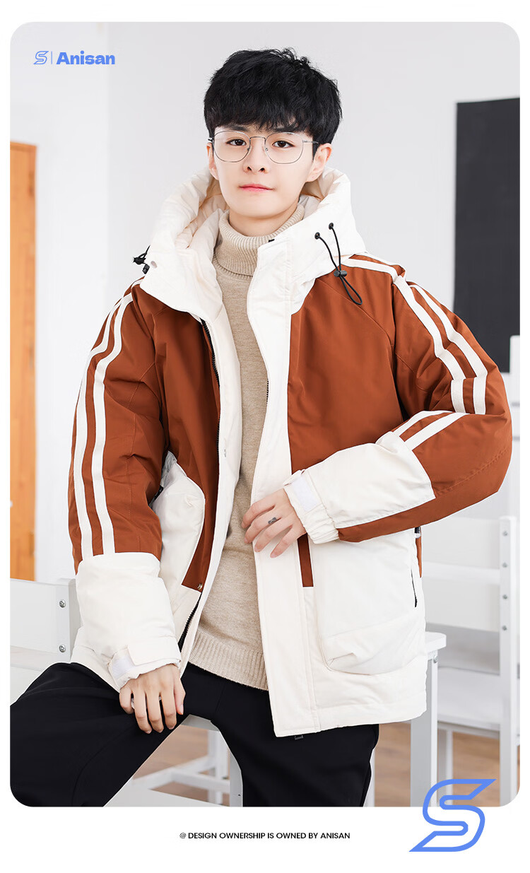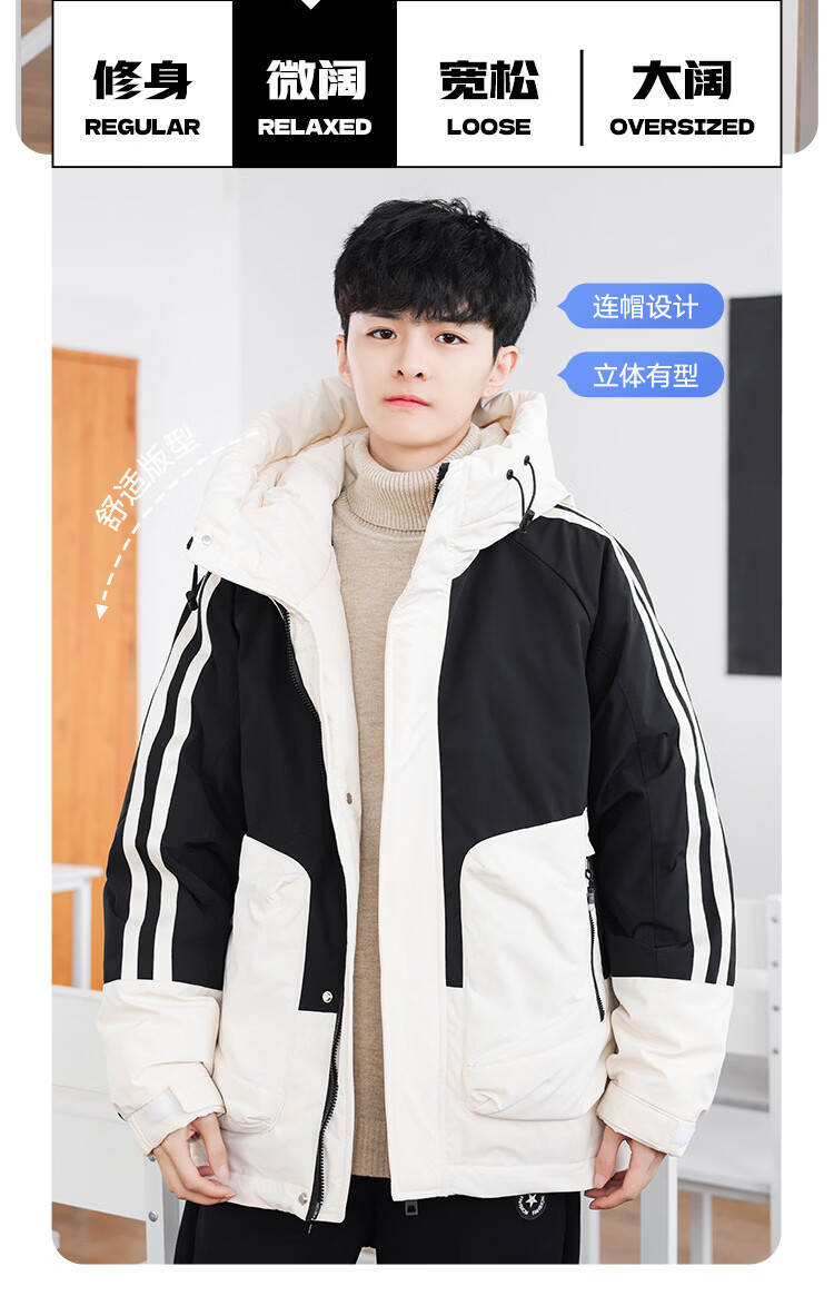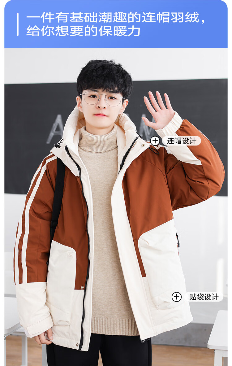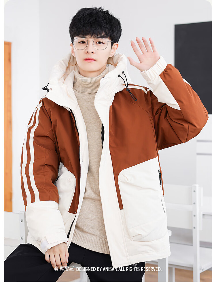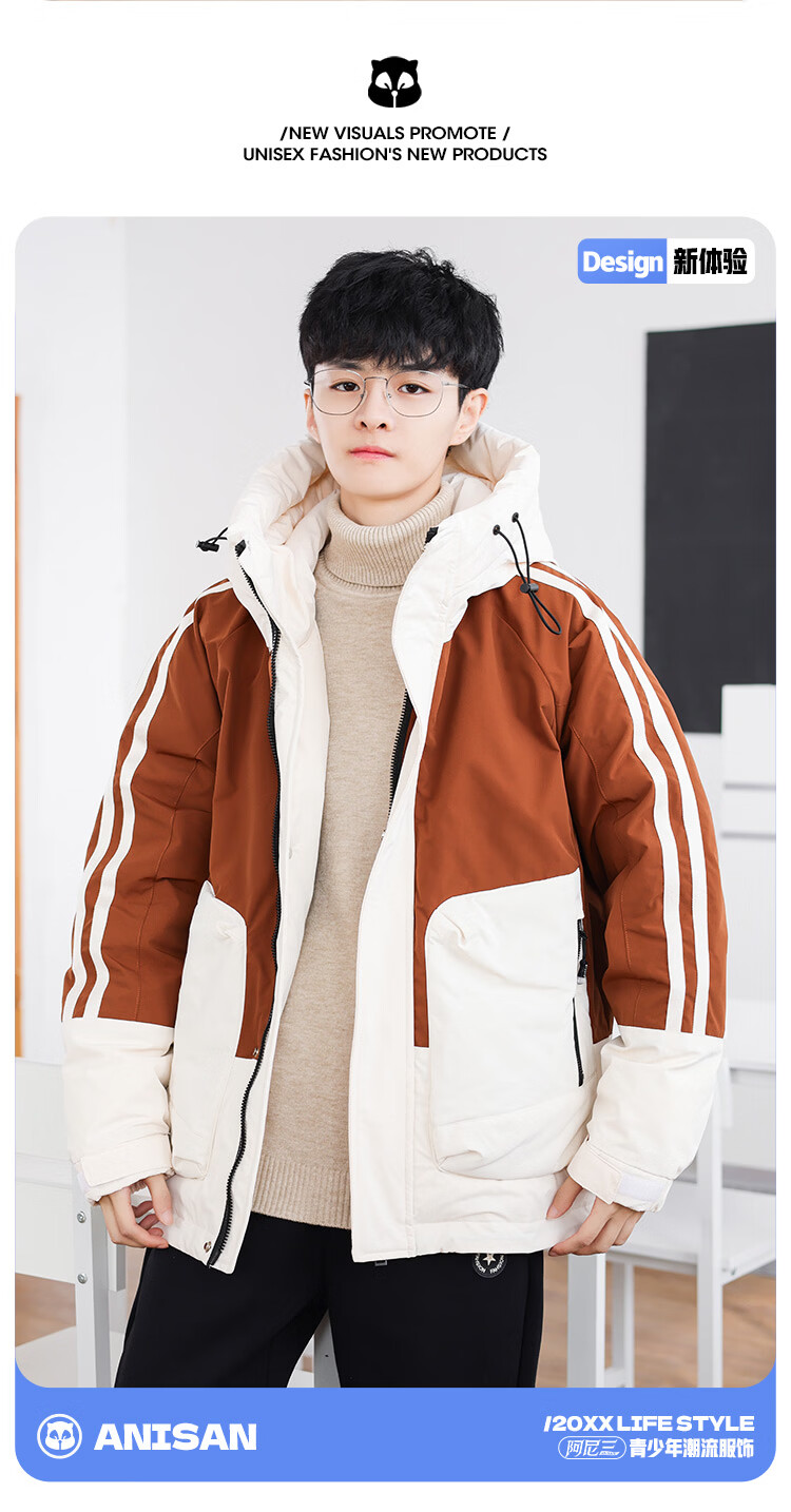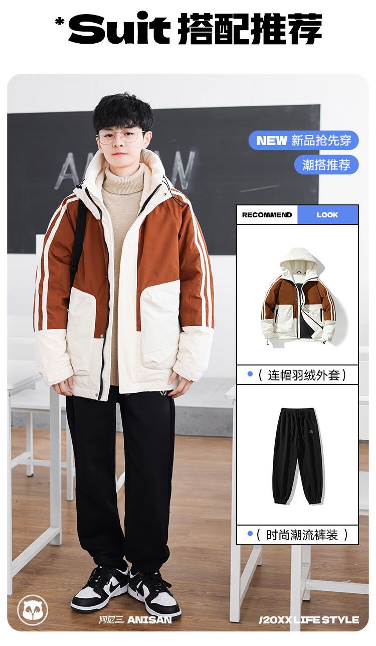 Arnie San Youth Winter Down Jacket Men's 2025 New Hooded Jacket Men's Fashionable and Handsome Junior High School and High School Students Black M