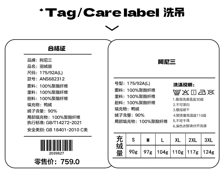 China (cm) 165 / 88-90 170 / 96-98 175 / 108-110 180 / 118-122 185 / 126-130