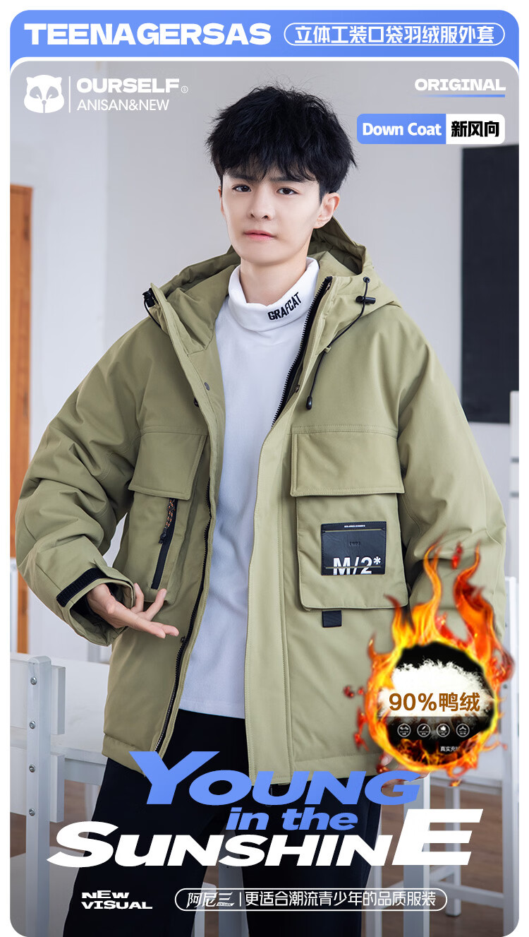 Молодежная спецодежда Arnie San, пуховик, мужская зима 2025, новинка, утолщенная, красивая, холодостойкая, для школьников младших классов, модная зимняя одежда, Pickle Green M