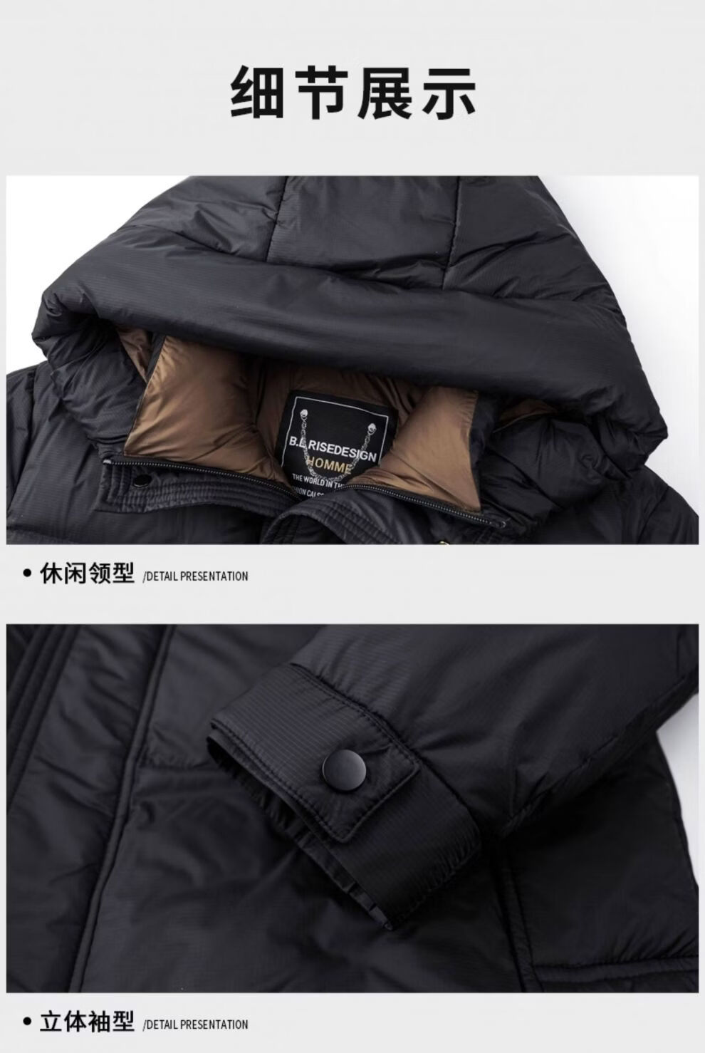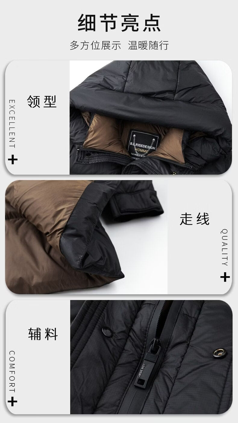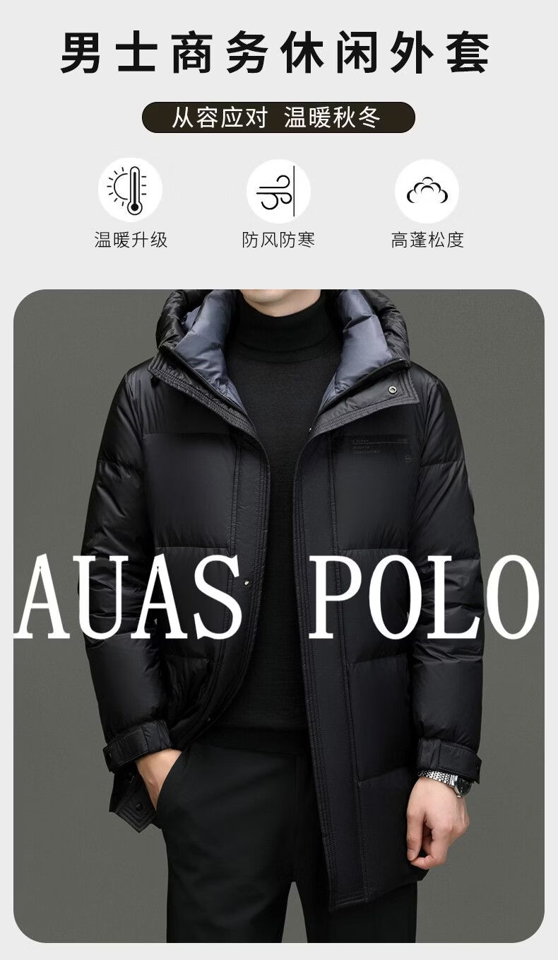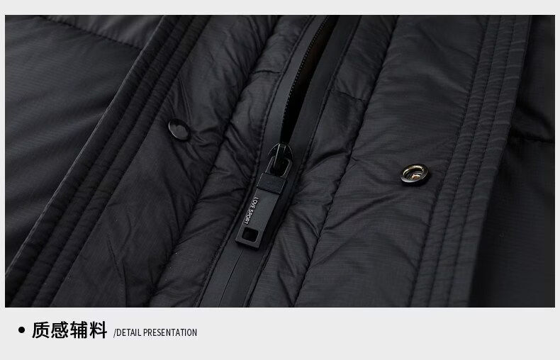 JEEP SPIRIT mid-length down jacket men's 2025 winter new thickened warm hooded duck down jacket men's winter wear blue black XL 135-150Jin Jin equals 0.5 kg