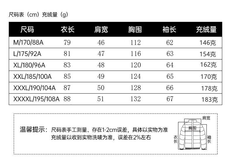 China (cm) 165 / 88-90 170 / 96-98 175 / 108-110 180 / 118-122 185 / 126-130