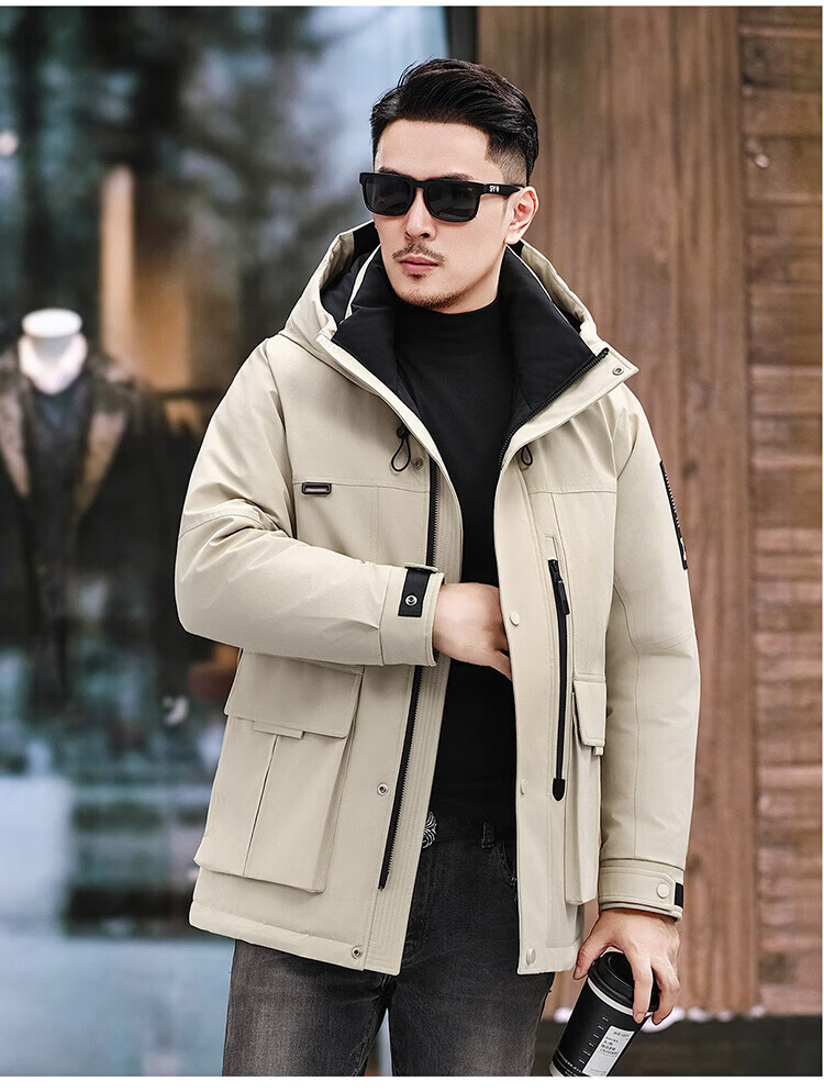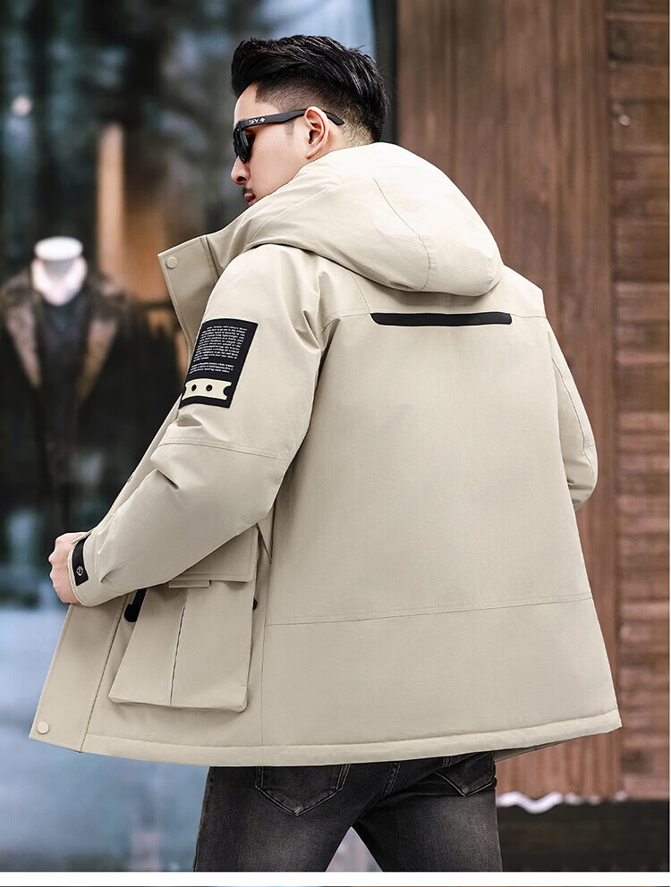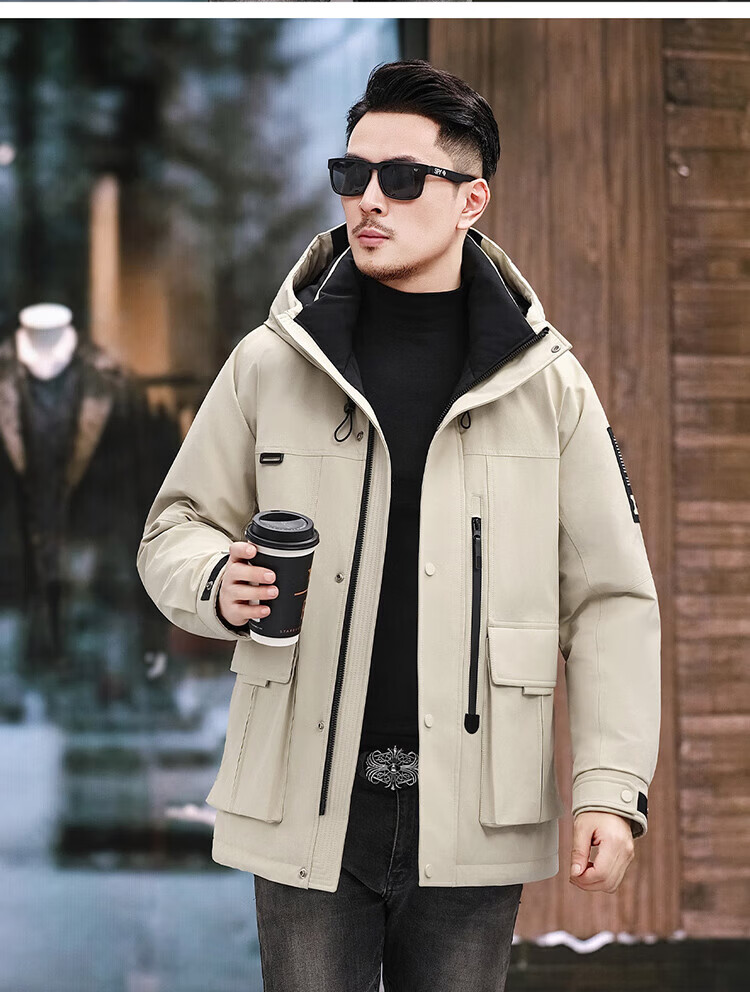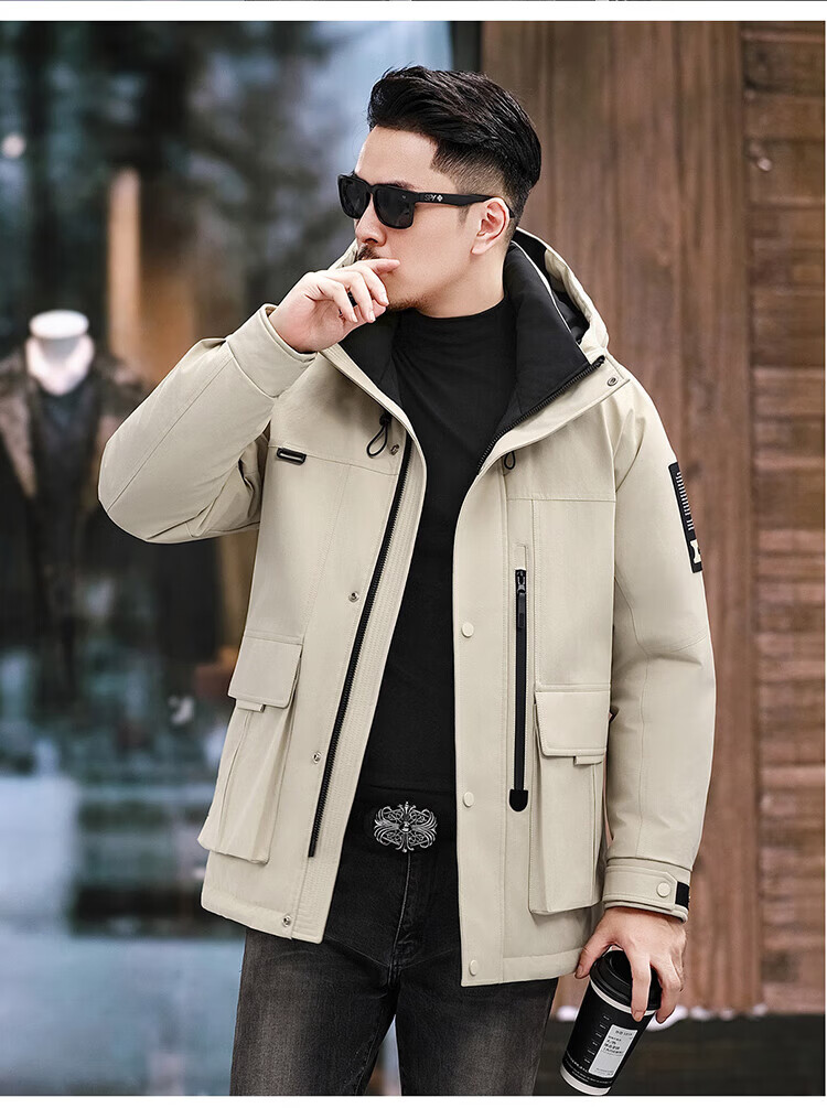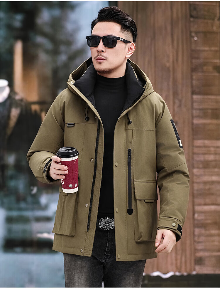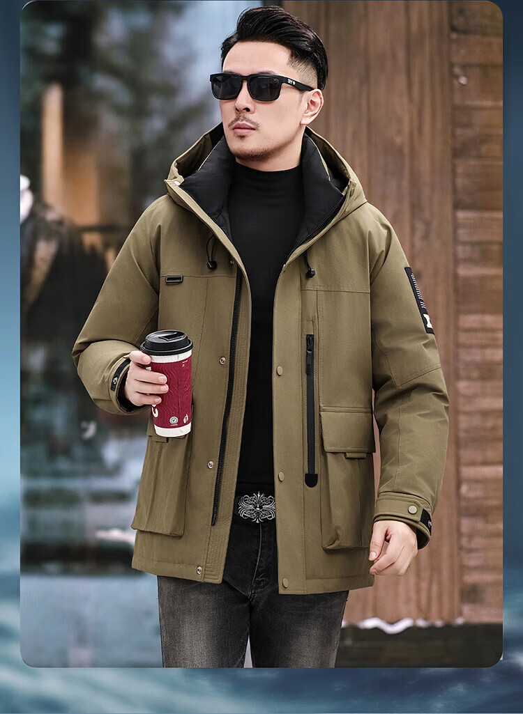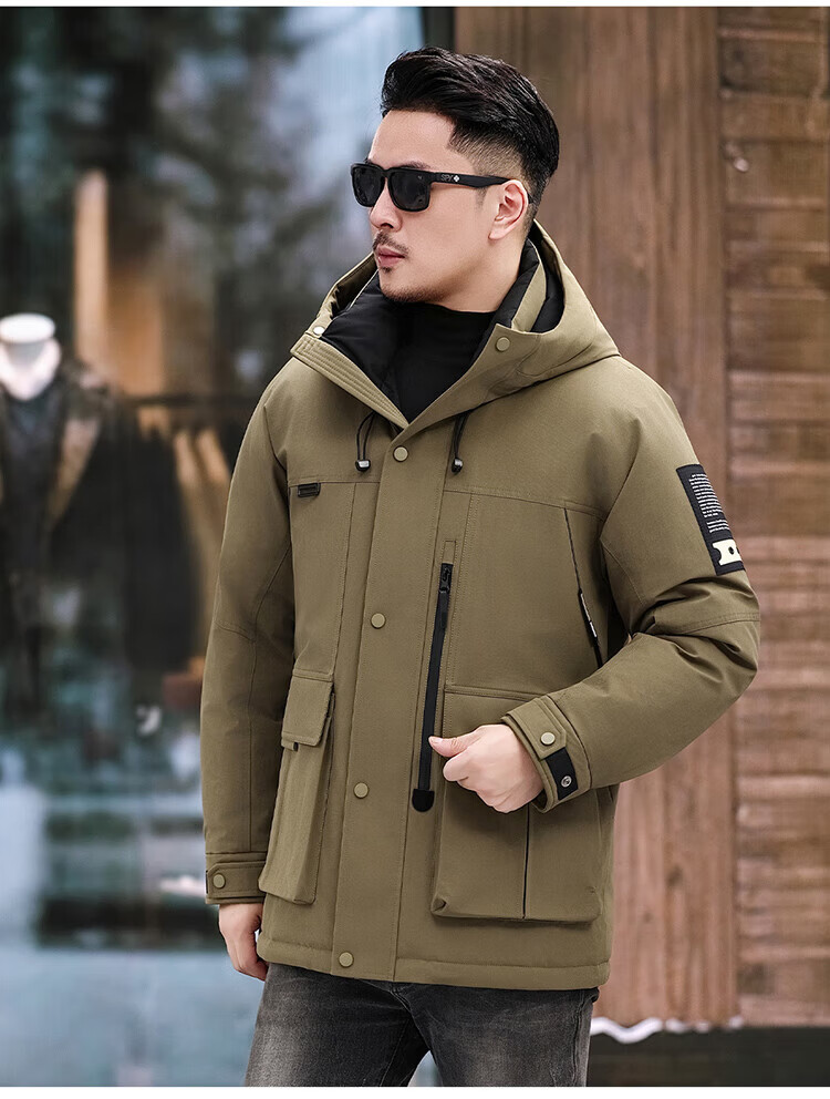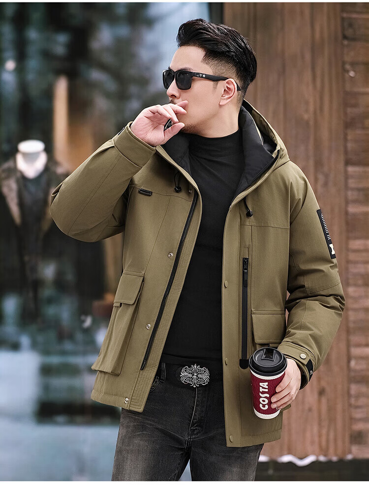 JEEP SPIRIT Jeep American Down Jacket Men's 2025 Winter New Fashionable Workwear for Young and Middle-aged Duck Down Cold Warm Jacket 9915 Khaki XL 180 (Suitable for weight 140-160Jin Jin equals 0.5 kg)