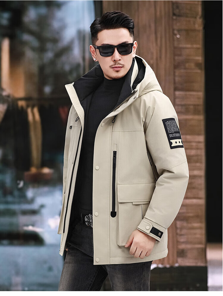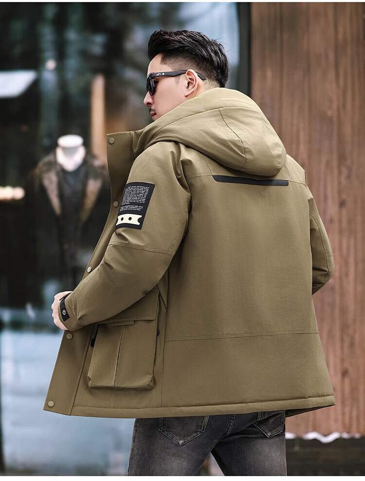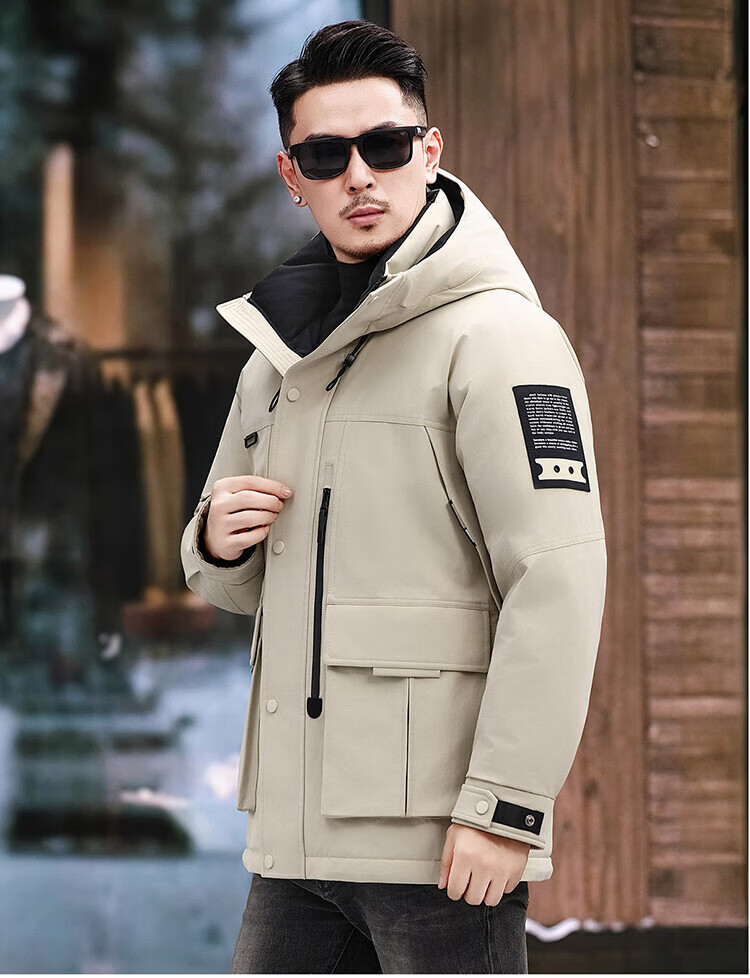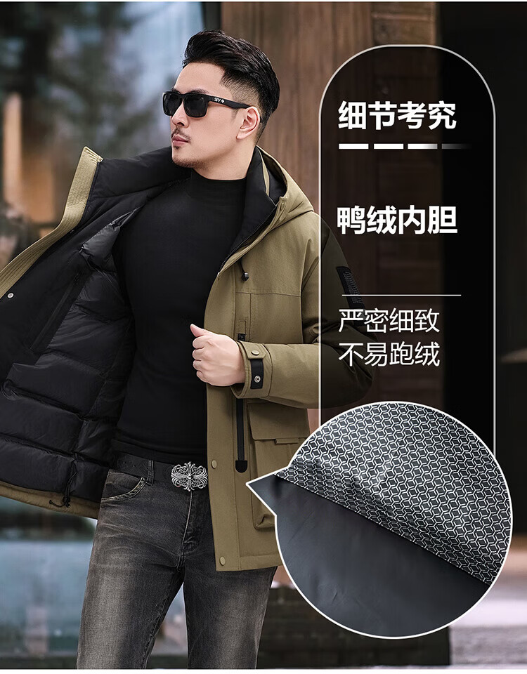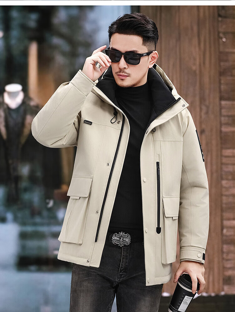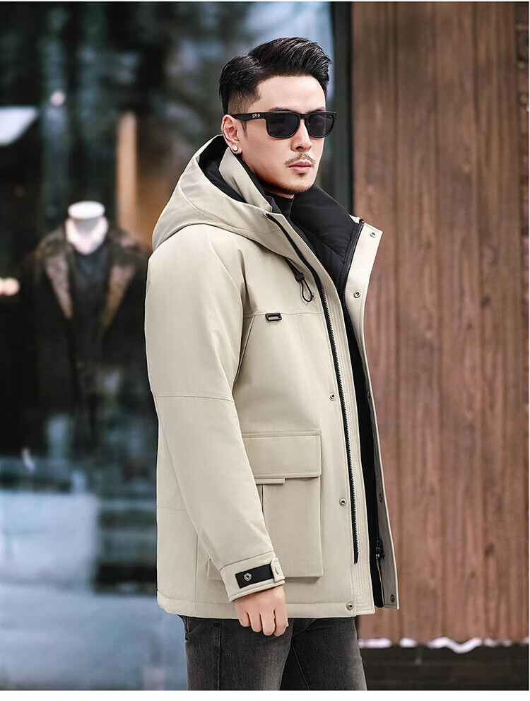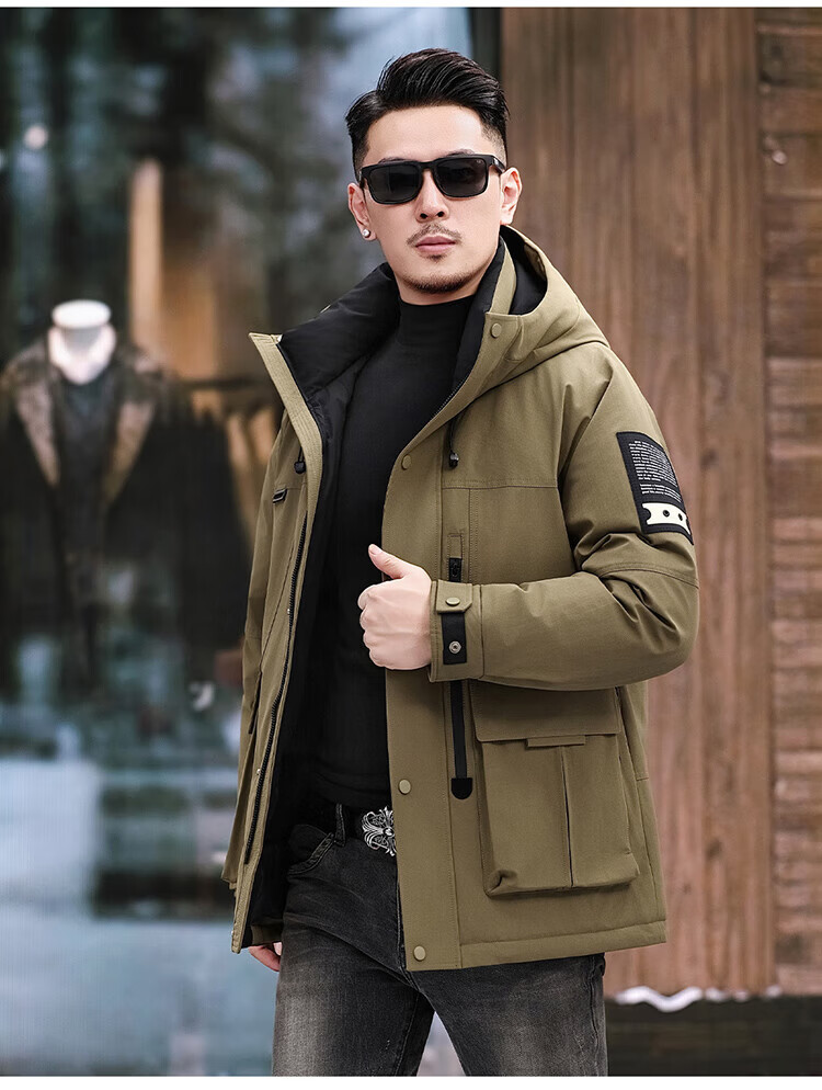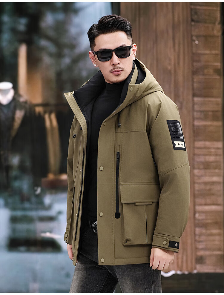 JEEP SPIRIT Jeep American Down Jacket Men's 2025 Winter New Fashionable Workwear for Young and Middle-aged Duck Down Cold Warm Jacket 9915 Khaki XL 180 (Suitable for weight 140-160Jin Jin equals 0.5 kg)