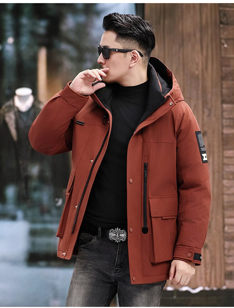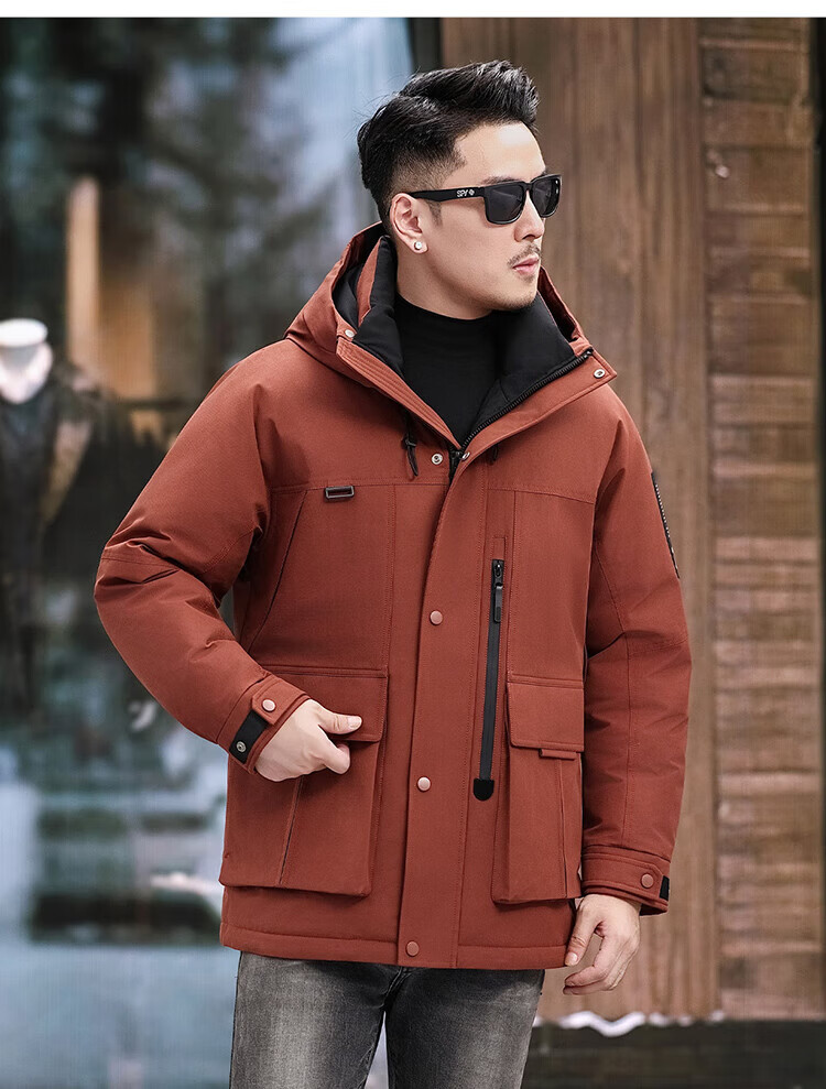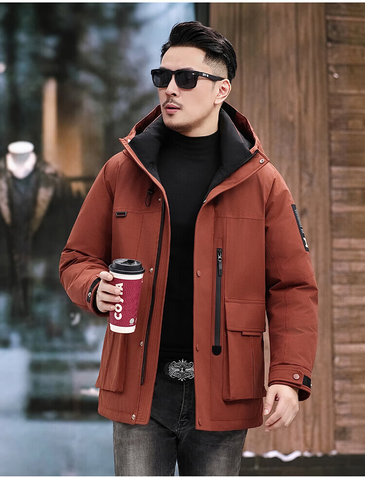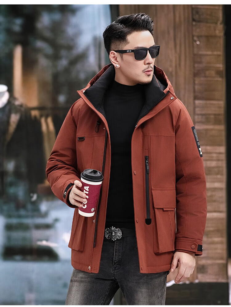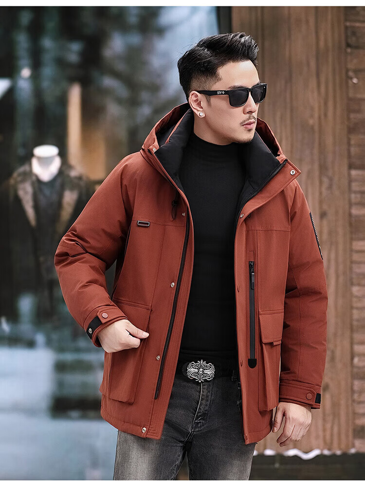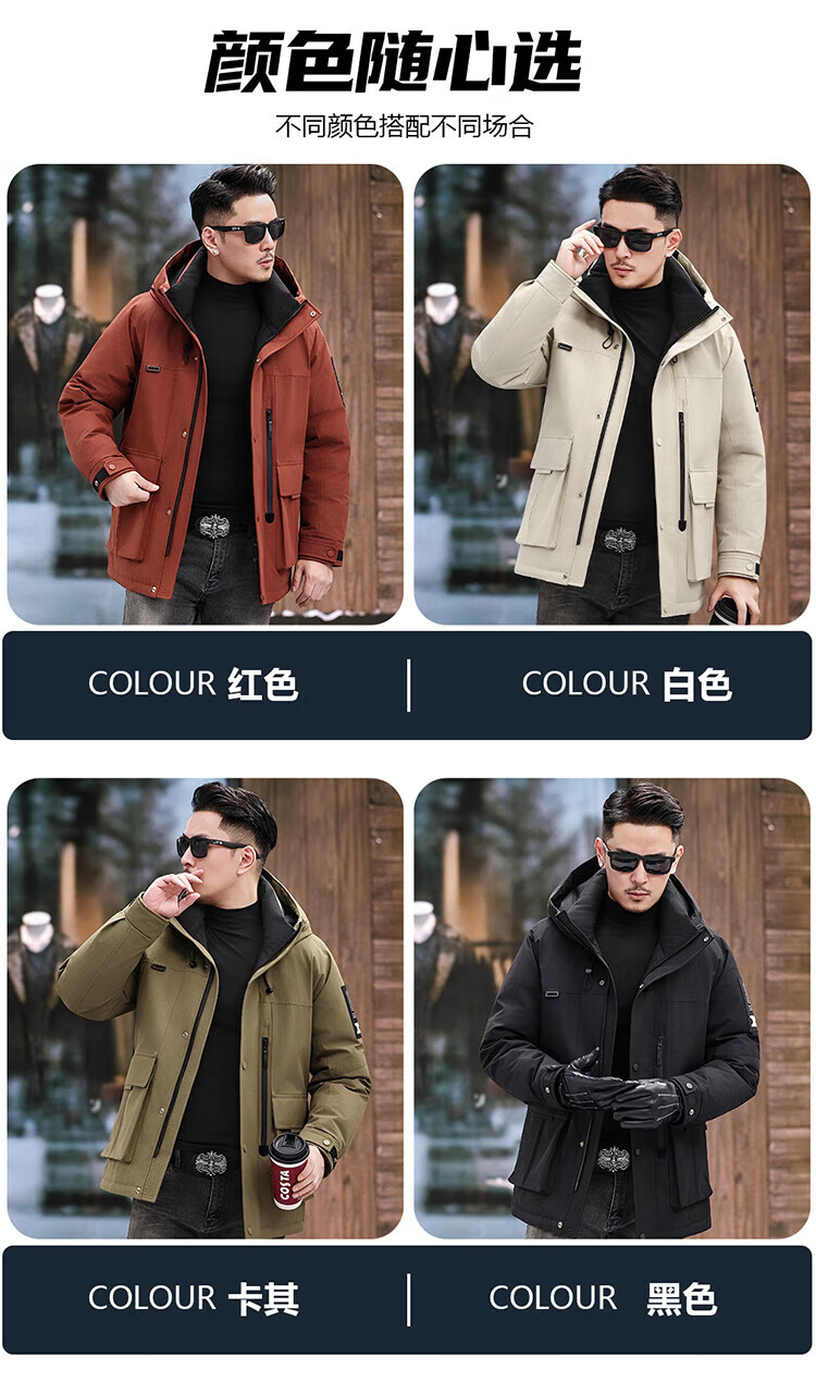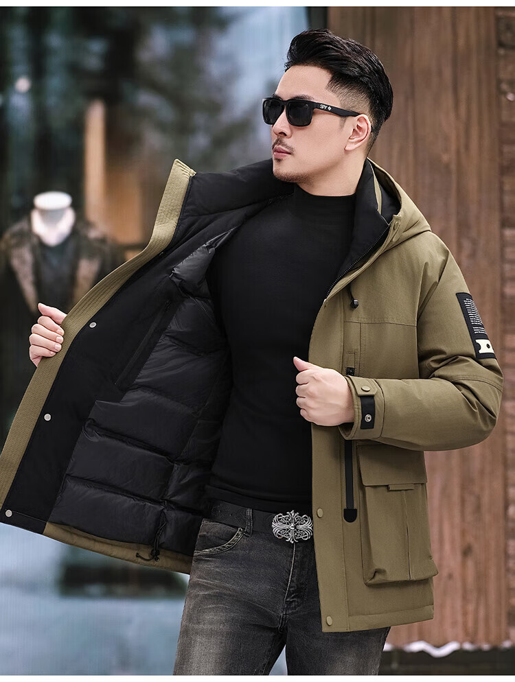 JEEP SPIRIT Jeep American Down Jacket Men's 2025 Winter New Fashionable Workwear for Young and Middle-aged Duck Down Cold Warm Jacket 9915 Khaki XL 180 (Suitable for weight 140-160Jin Jin equals 0.5 kg)