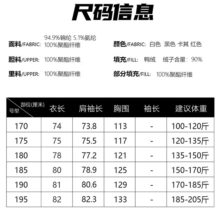 China (cm) 165 / 88-90 170 / 96-98 175 / 108-110 180 / 118-122 185 / 126-130