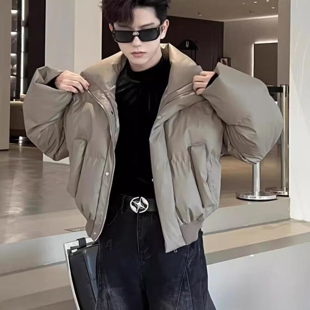 JEEP SPIRIT Jeep American, короткий пуховик из искусственной кожи с воротником-стойкой, мужской утепленный теплый пуховик, зимний, изнашиваемая поверхность, верблюжий, M 90--110Jin Jin, можно носить 0,5 кг.