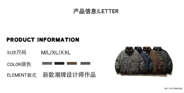 JEEP SPIRIT2026 Новый пуховик с воротником-стойкой, мужская свободная повседневная теплая куртка в японском стиле в стиле ретро, пара универсальных зимних темно-серых M-130Jin Jin весит 0,5 кг.