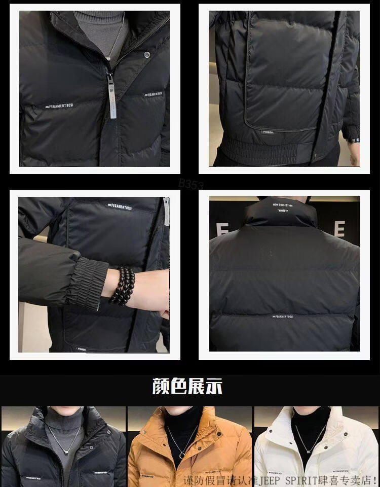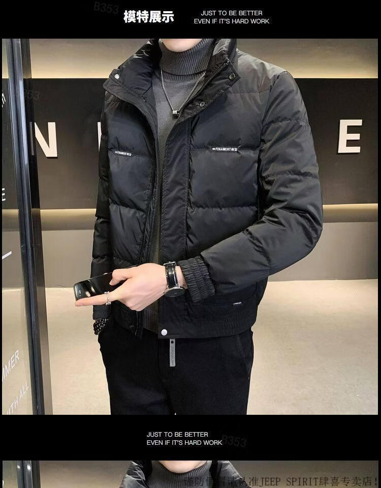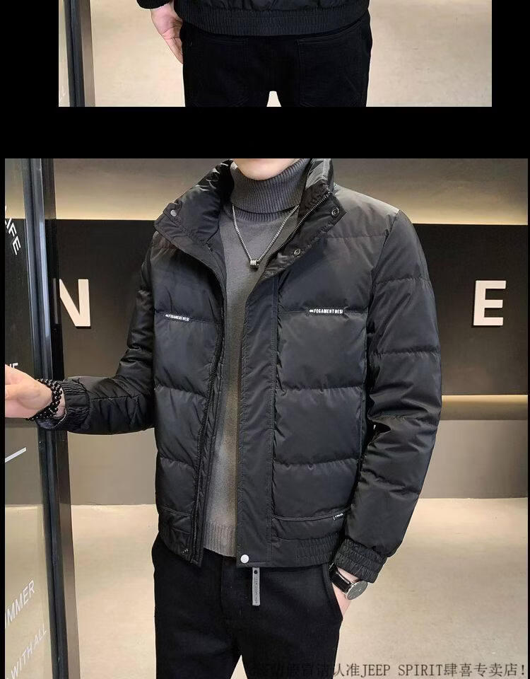 JEEP SPIRIT men's down jacket short style handsome winter light and warm 2025 new trendy slim solid color jacket black L 100-115Jin Jin is equal to 0.5 kg