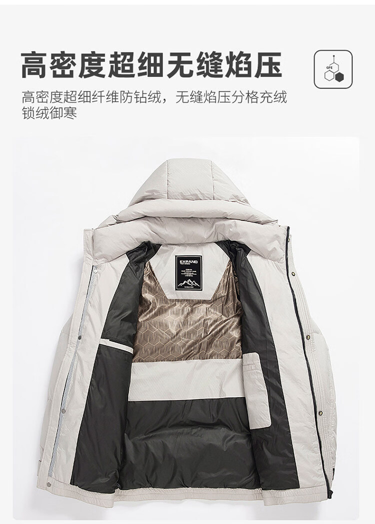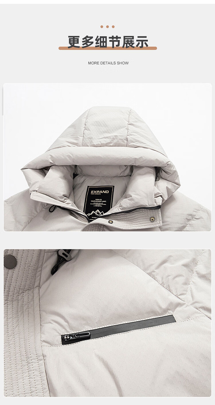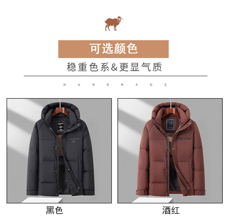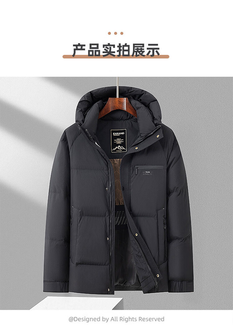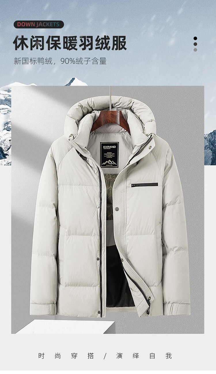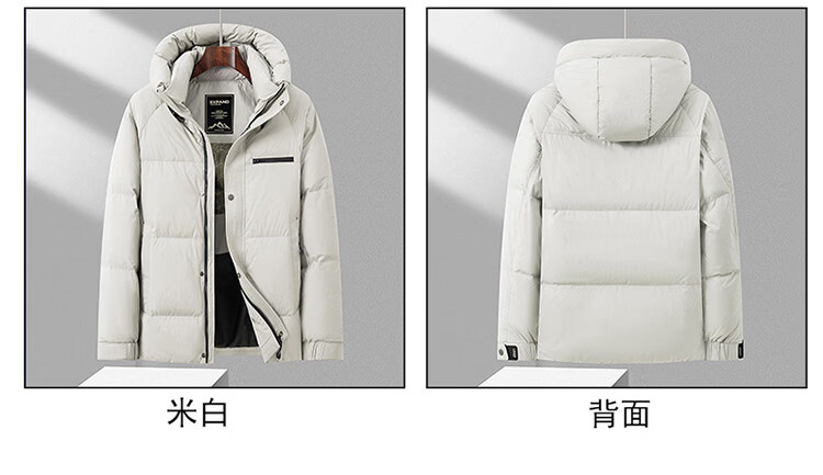 恒源祥冬季加厚连帽短款羽绒服男中年商务时尚鸭绒面包服防寒羽绒袄外套 米白色 M 170