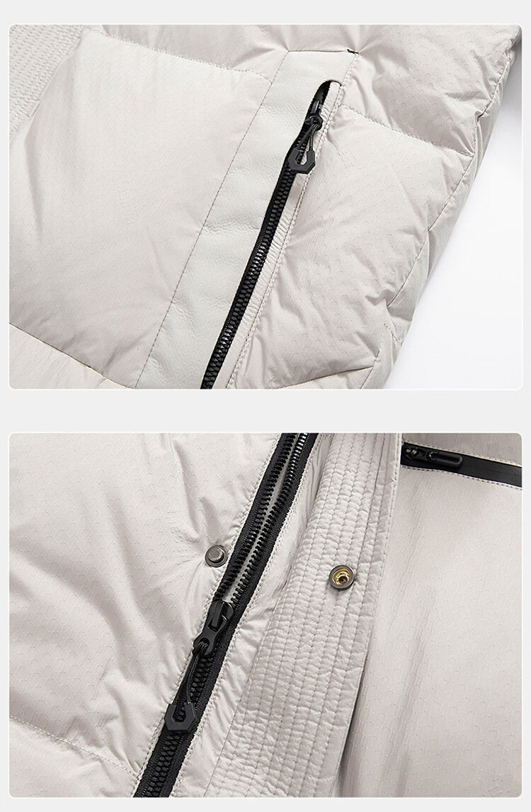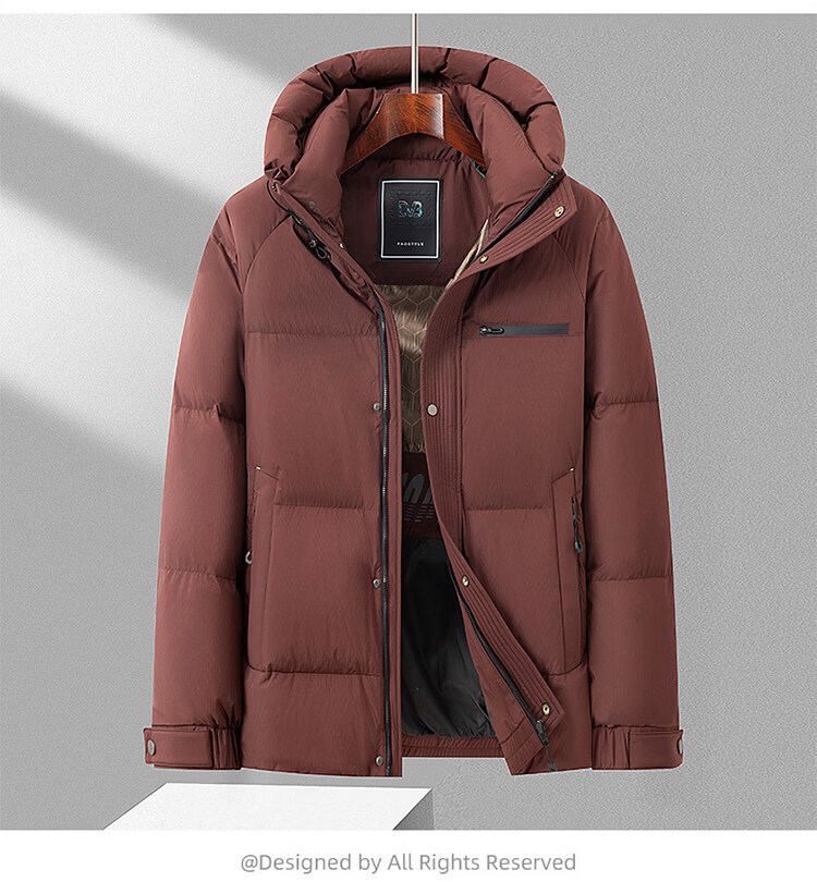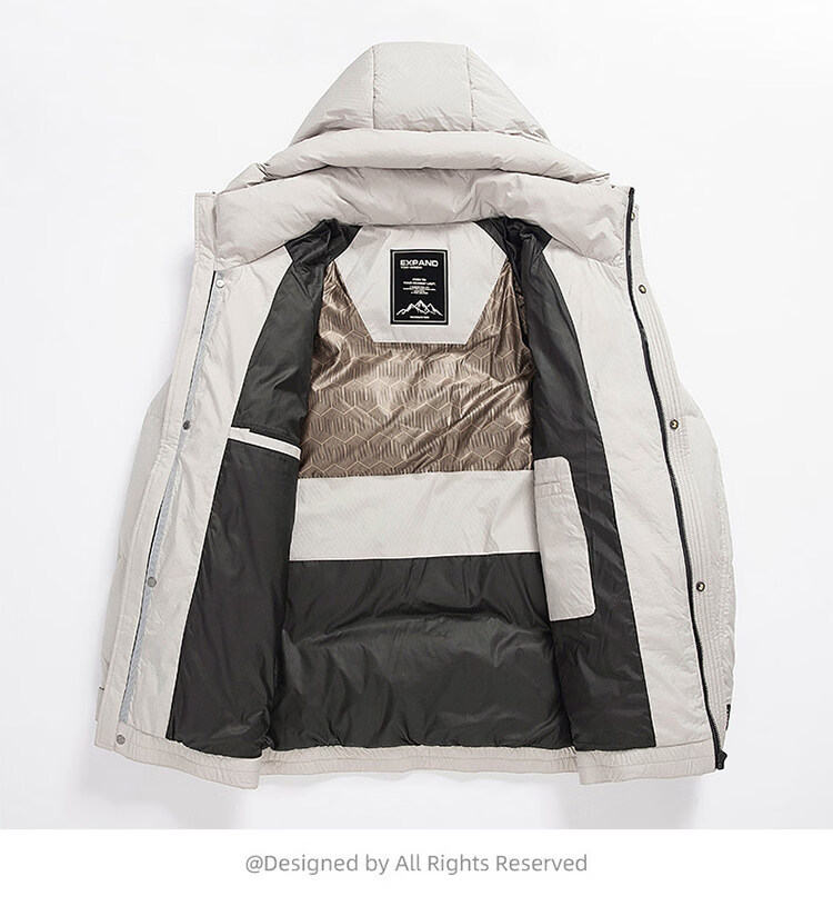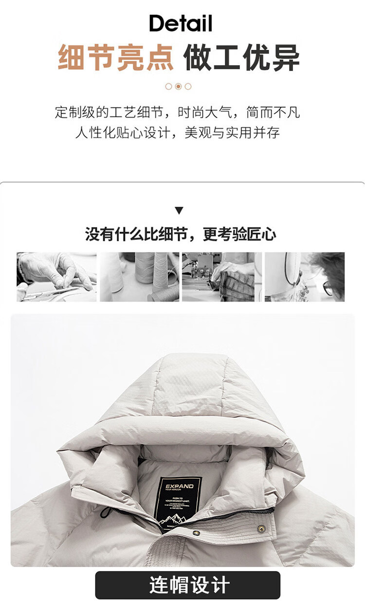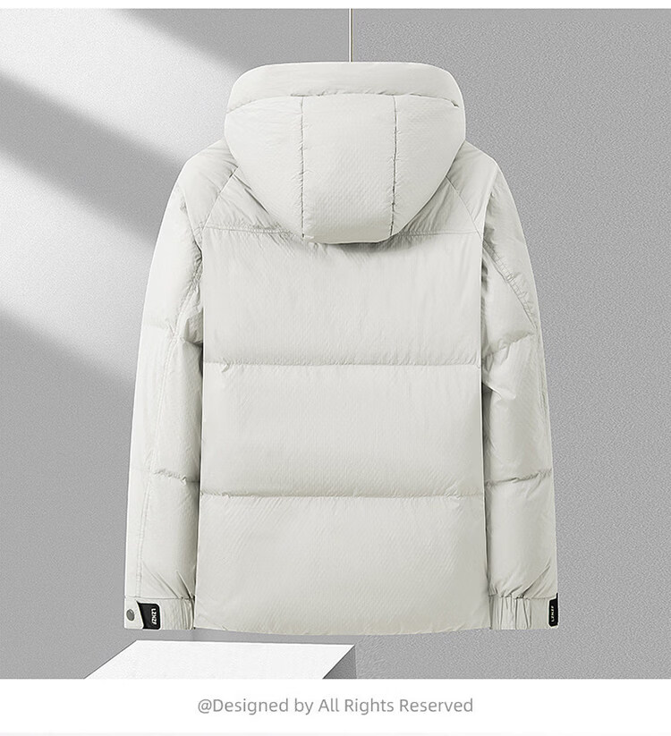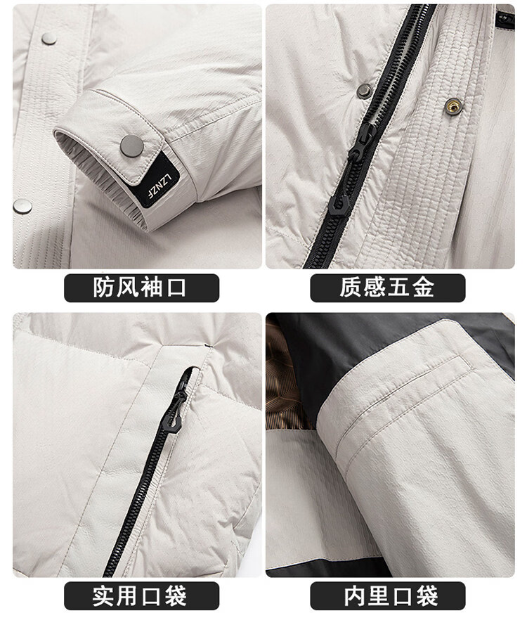恒源祥冬季加厚连帽短款羽绒服男中年商务时尚鸭绒面包服防寒羽绒袄外套 米白色 M 170