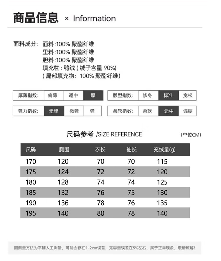 China (cm) 165 / 88-90 170 / 96-98 175 / 108-110 180 / 118-122 185 / 126-130