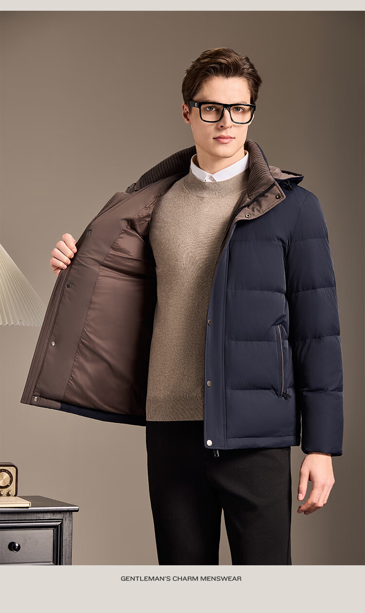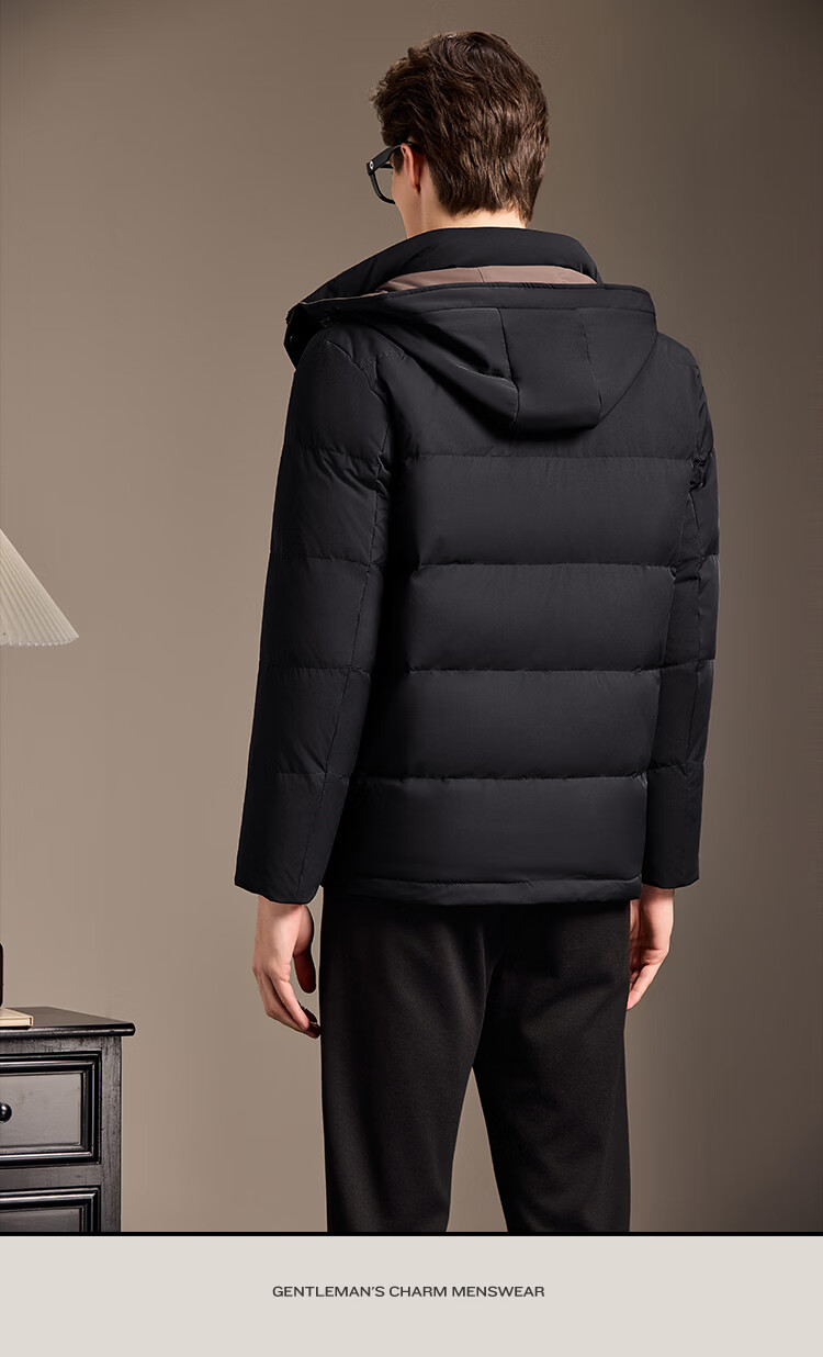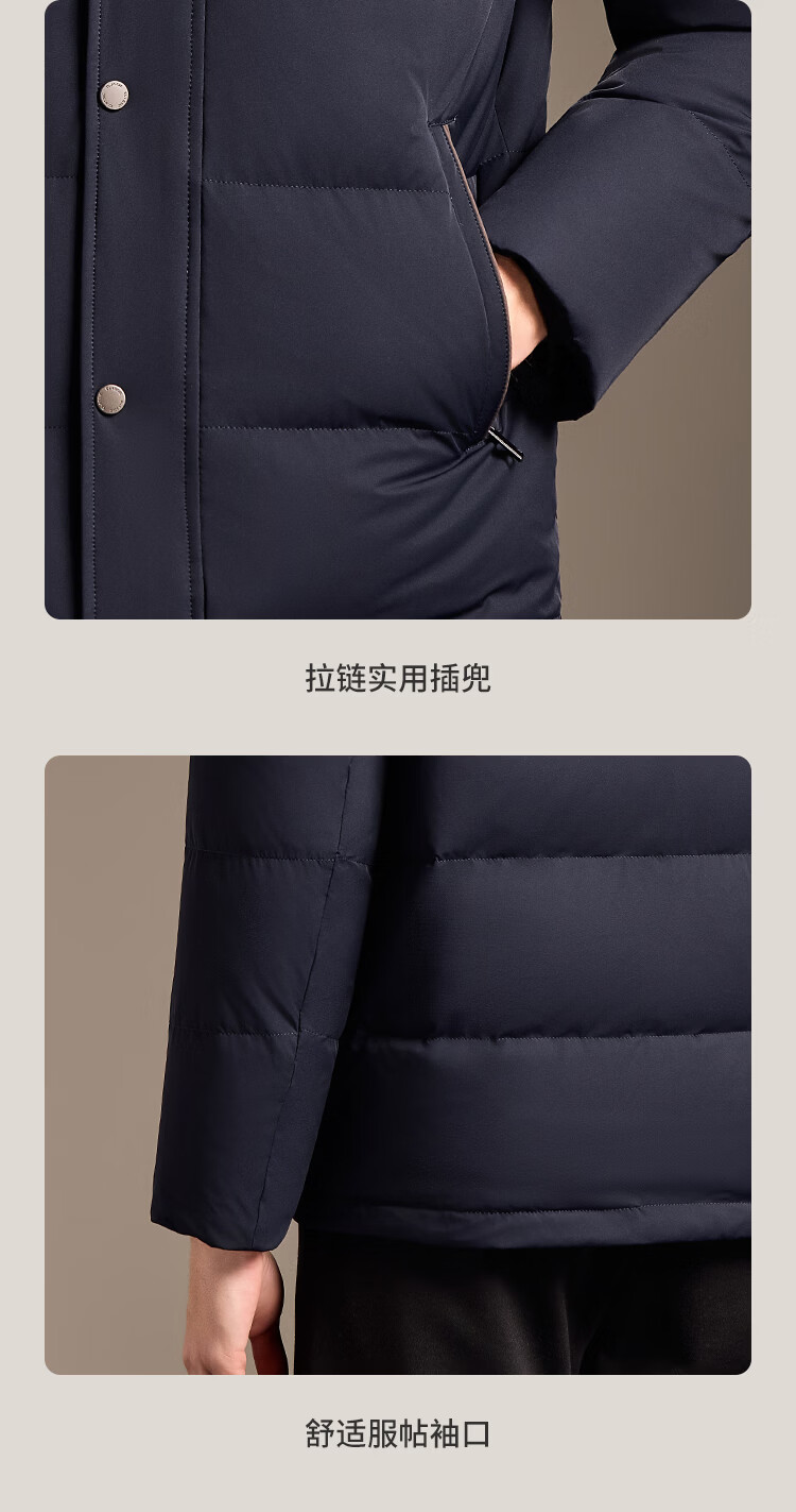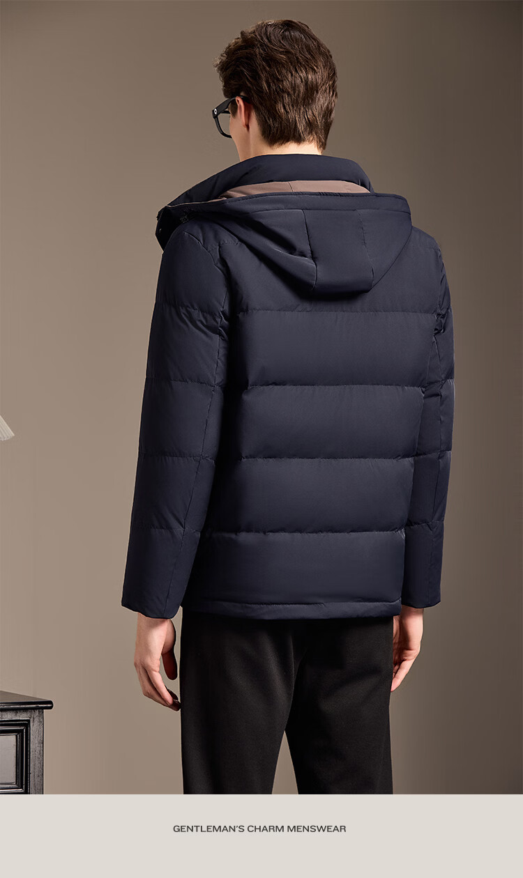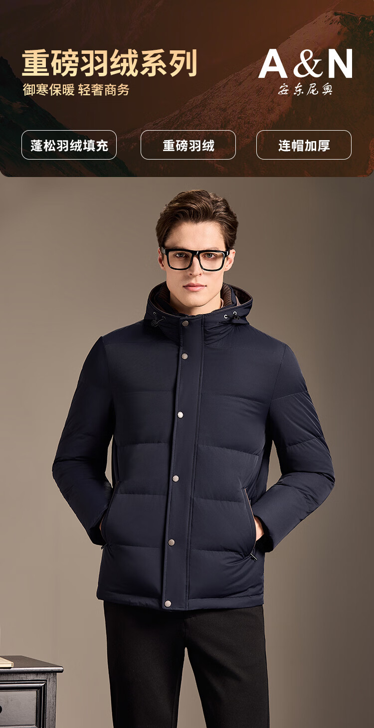 Antonio Heavy Down Light Luxury Business Hooded Down Jacket Men's Short 25 Winter Middle-aged Thickened Down Jacket Navy M/48 170/88A