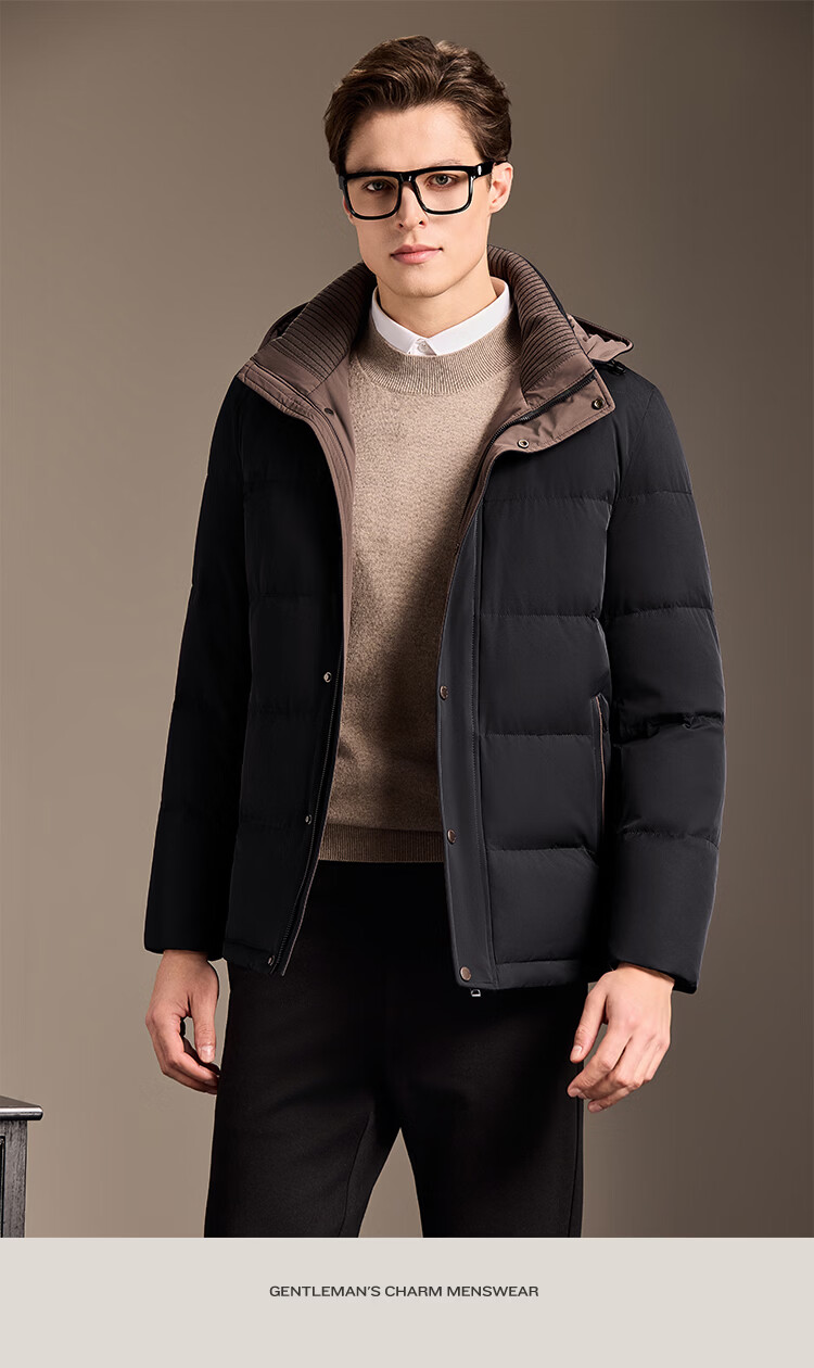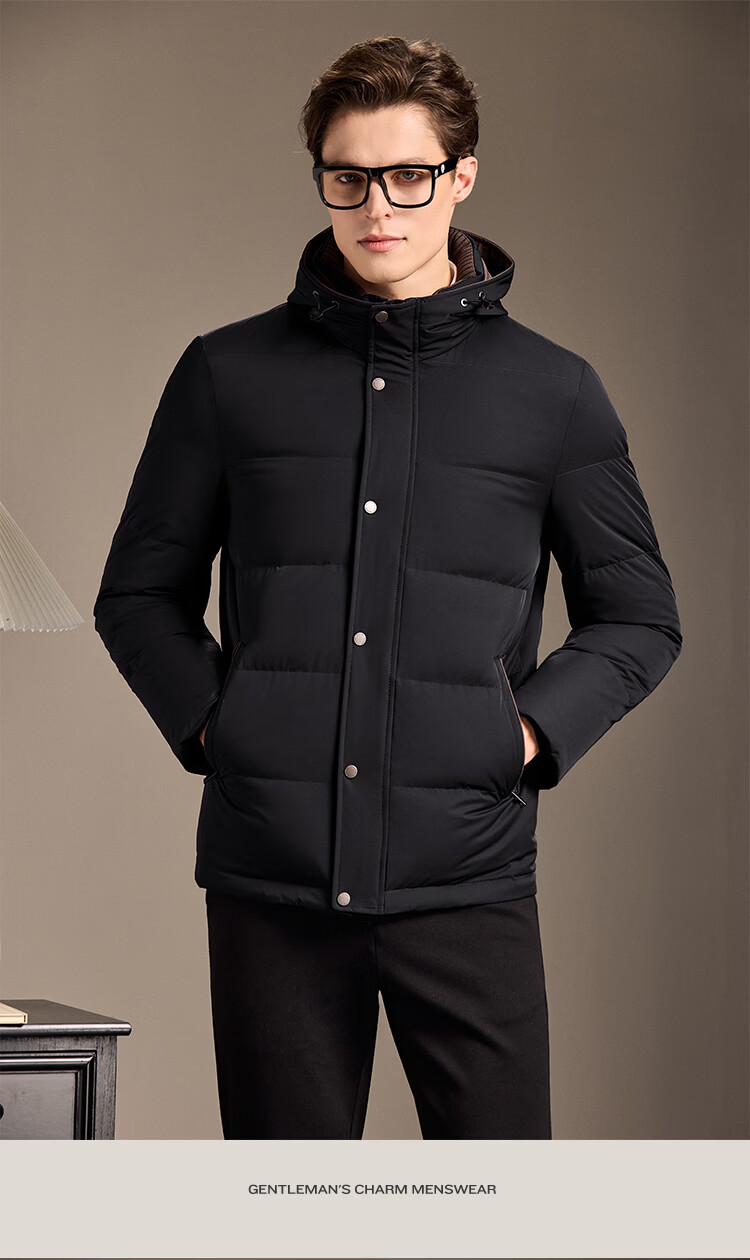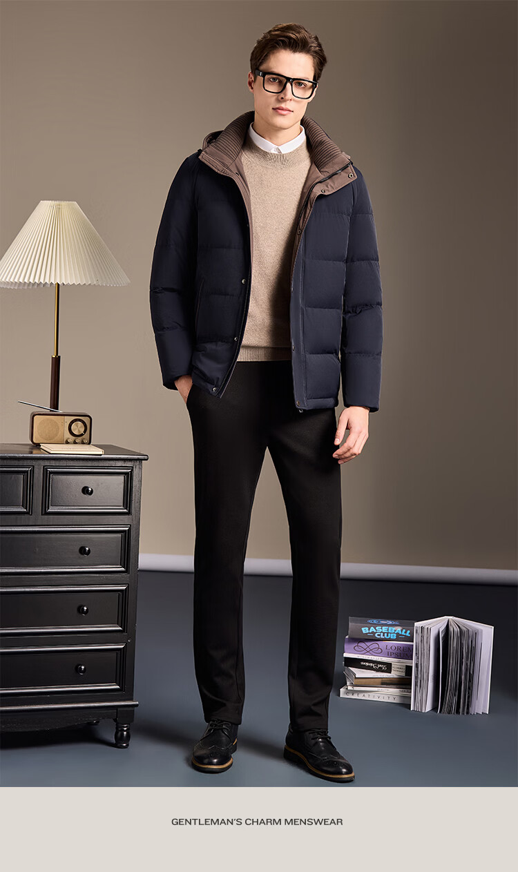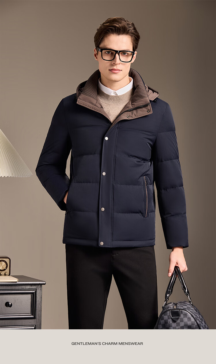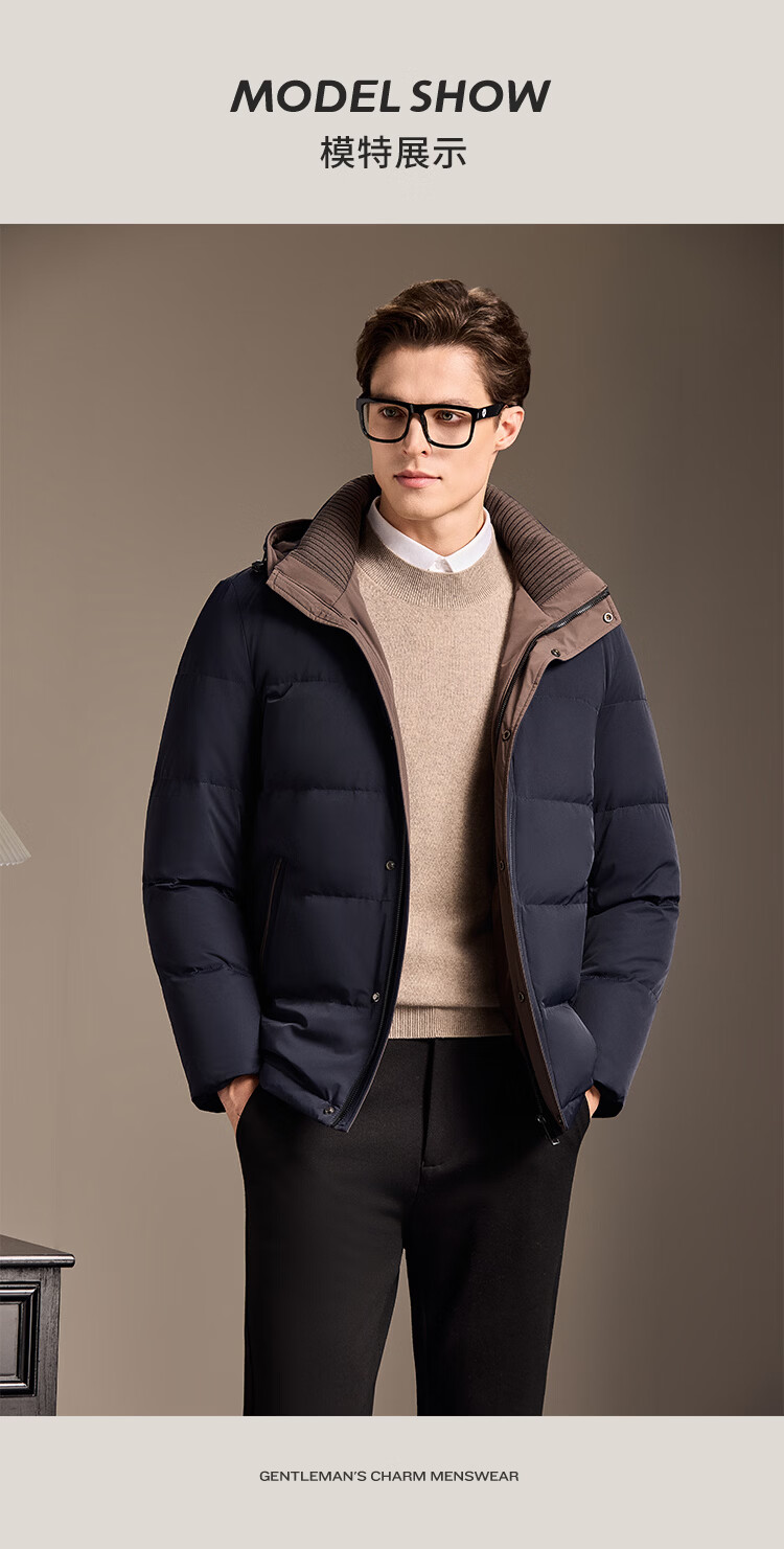 Antonio Heavy Down Light Luxury Business Hooded Down Jacket Men's Short 25 Winter Middle-aged Thickened Down Jacket Navy M/48 170/88A