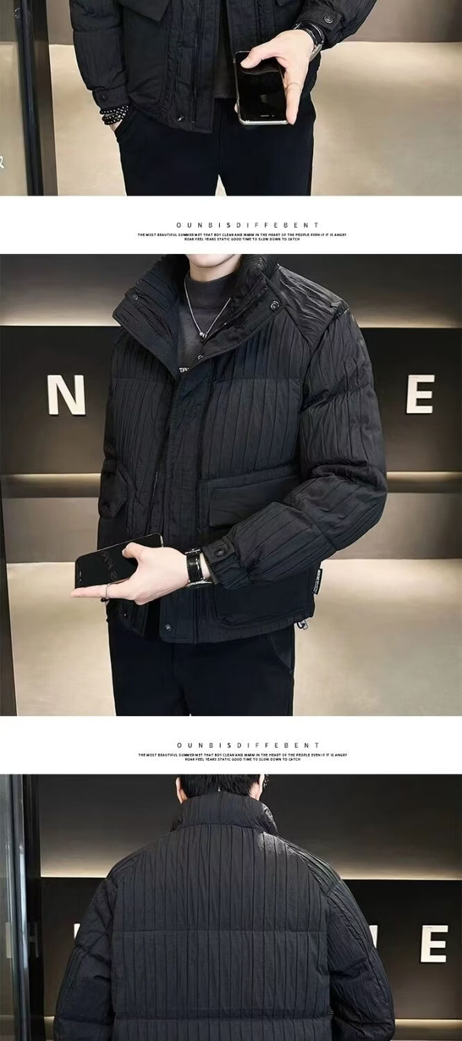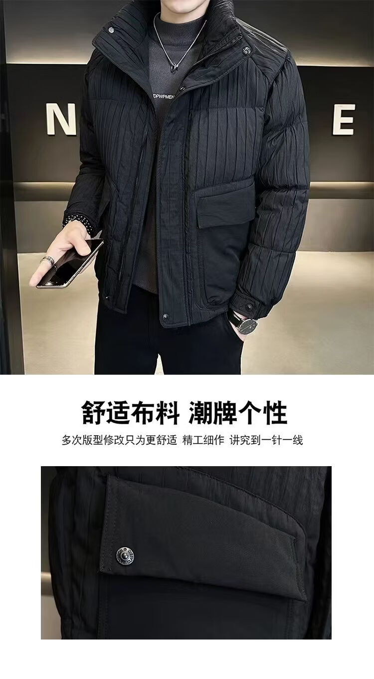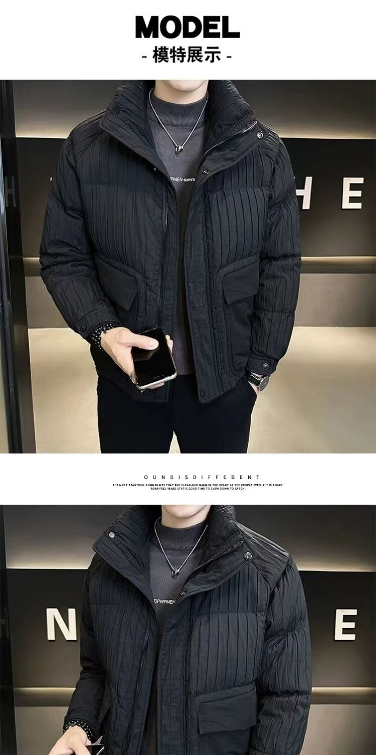Hengyuanxiang 2026 Stand Collar New Down Jacket Winter Lightweight Short Men's Jacket Thickened Winter Warmth Black L 115-125Jin Jin is equal to 0.5 kg