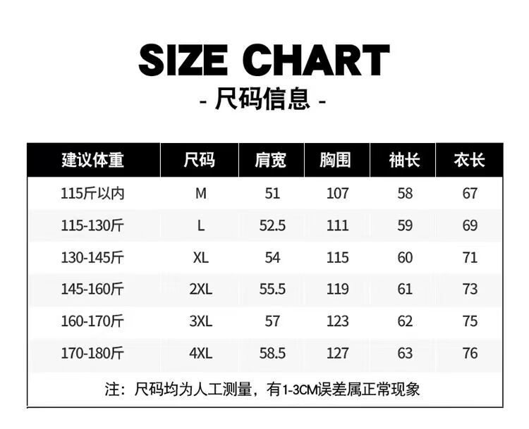China (cm) 165 / 88-90 170 / 96-98 175 / 108-110 180 / 118-122 185 / 126-130